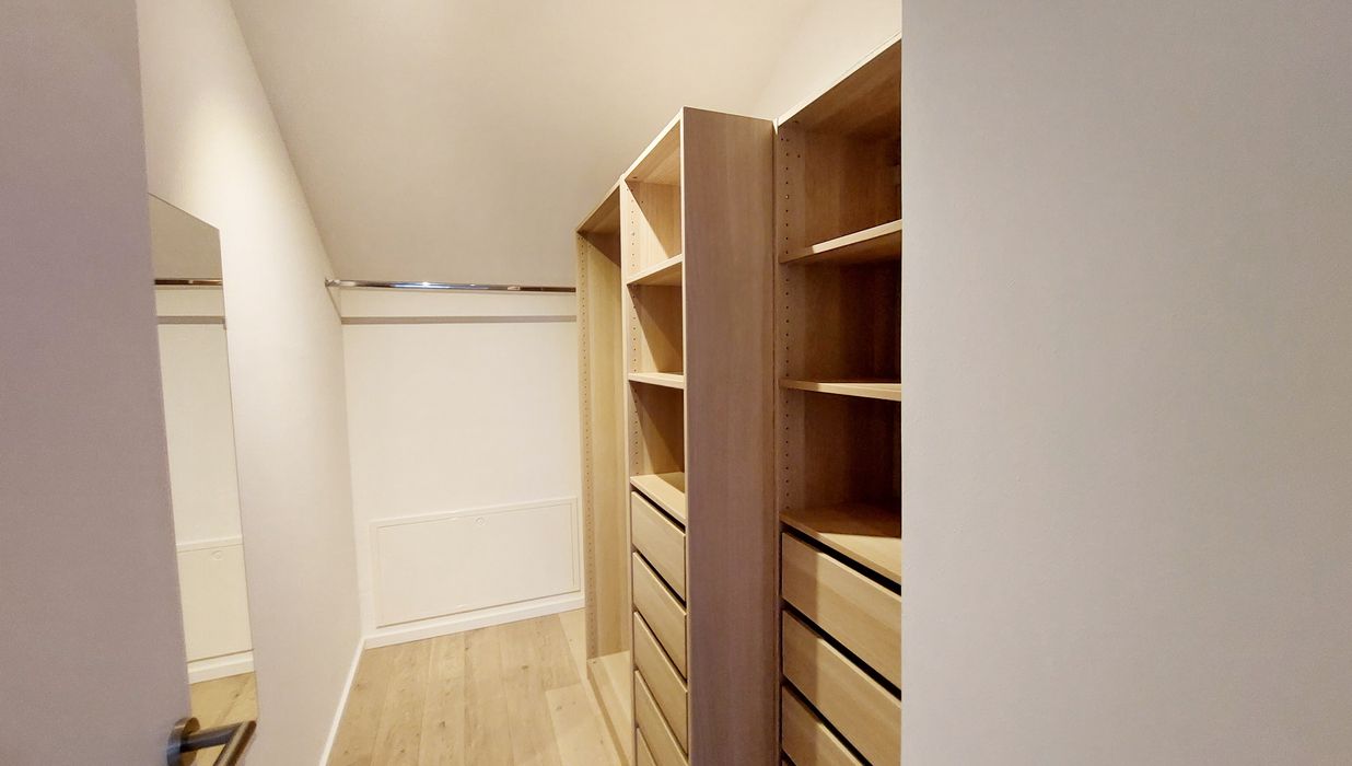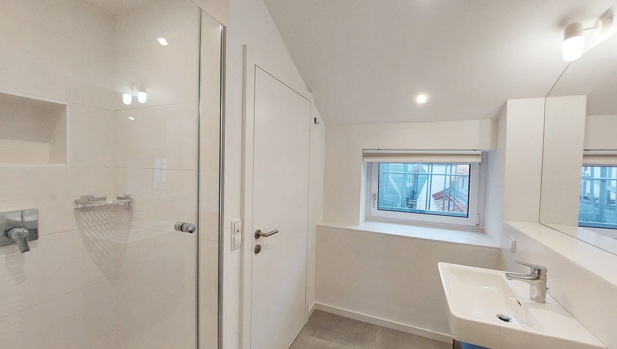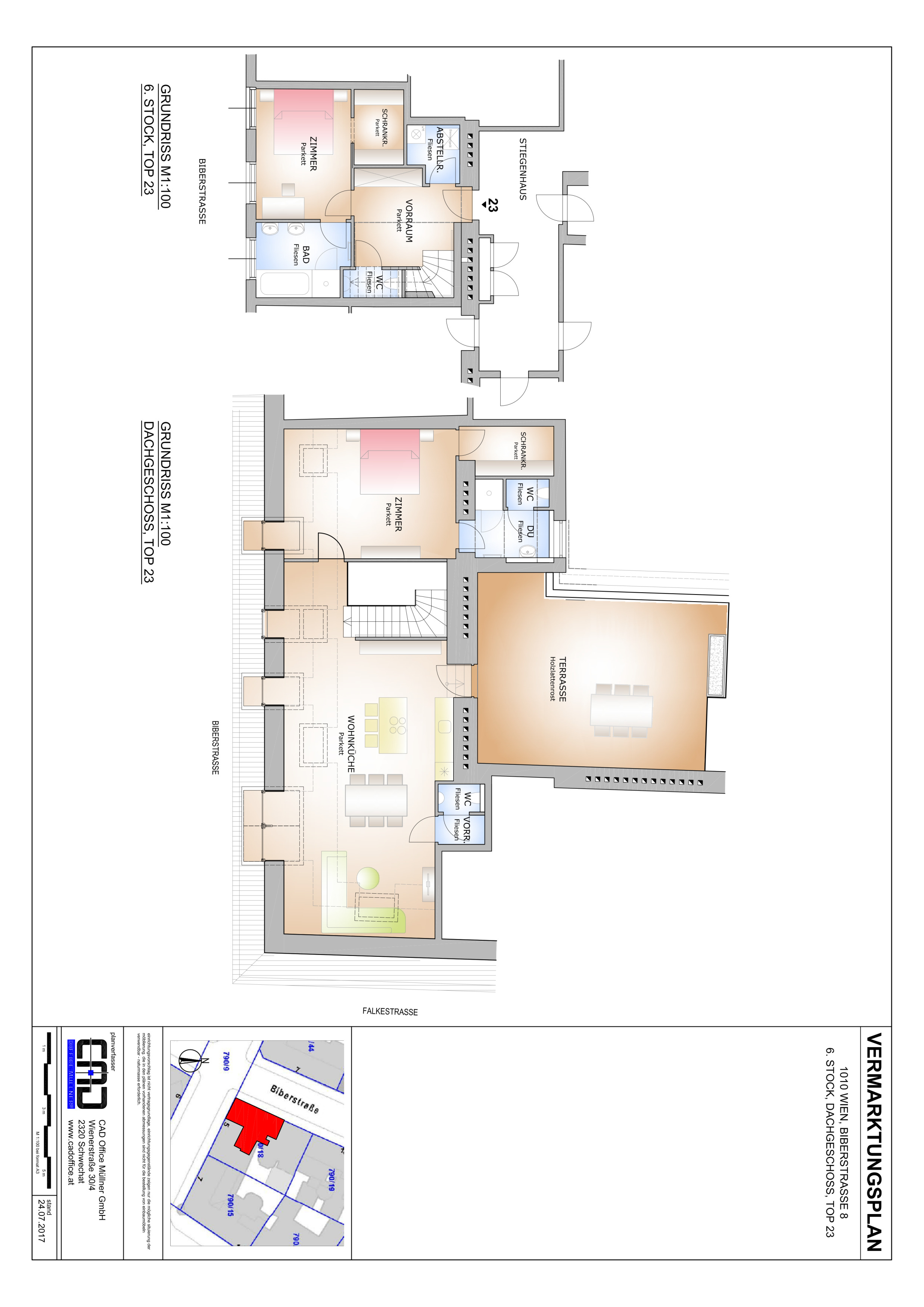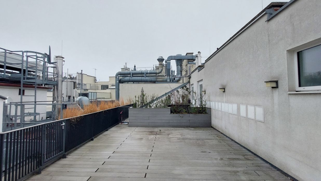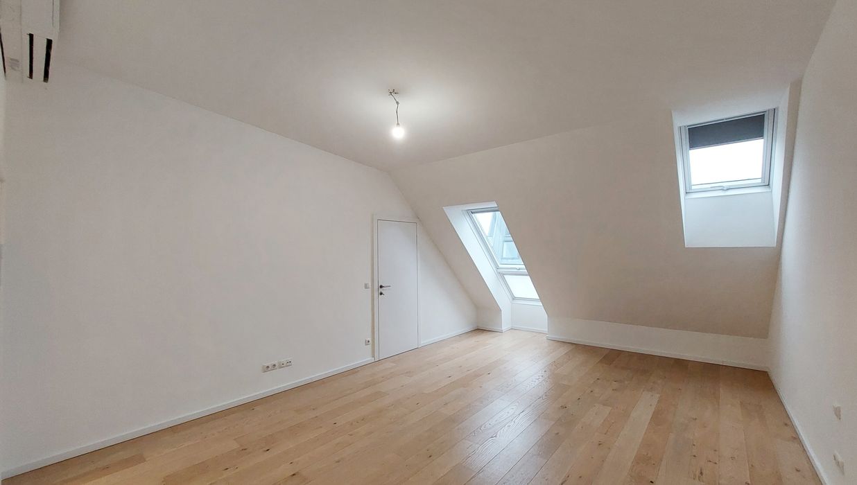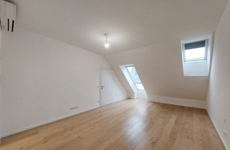Die Wohnung befindet sich in der 6. Etage und gliedert sich in eine großzügige Wohnküche mit eigenem separaten WC, eine vollausgestattete Einbauküche, zwei separat begehbare Schlafzimmer, wobei eines der beiden in dem höheren Geschoss liegt (beide davon mit Schrankraum), ein Badezimmer mit Doppelhandwaschbecken Dusche und Badewanne, sowie ein zweites Bad mit Dusche und abgetrennter Toilette. Zusätzlich ein weiters separates WC unter dem Stiegenaufgang zum oberen Geschoss, einen Abstellraum mit Waschmaschinenanschluss, sowie einen Vorraum. Die sonnige Terrasse umfasst eine großzügige mit Holzlattenrost überzogene Fläche und lädt zum gemütlichen Verweilen im Freien ein.