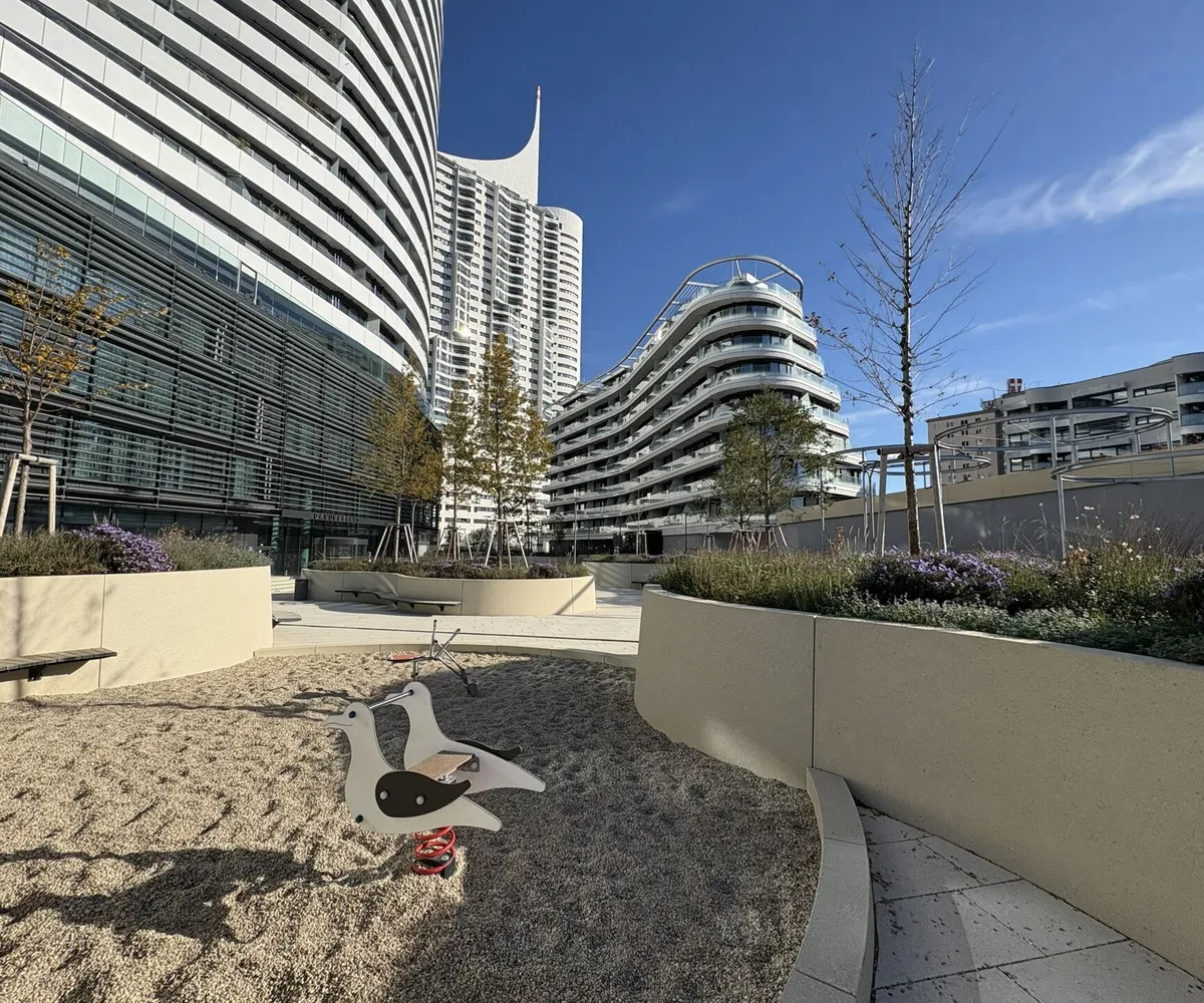 Die Lage an der Neuen Donau vereint Natur, Urbanität und internationale Atmosphäre.
