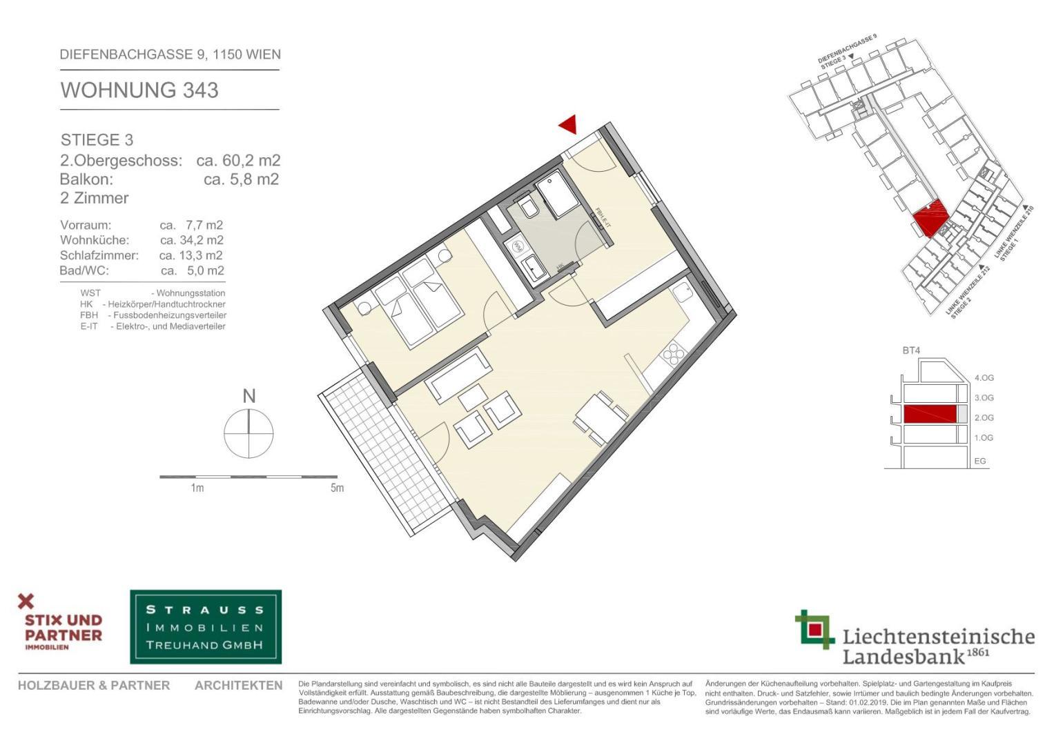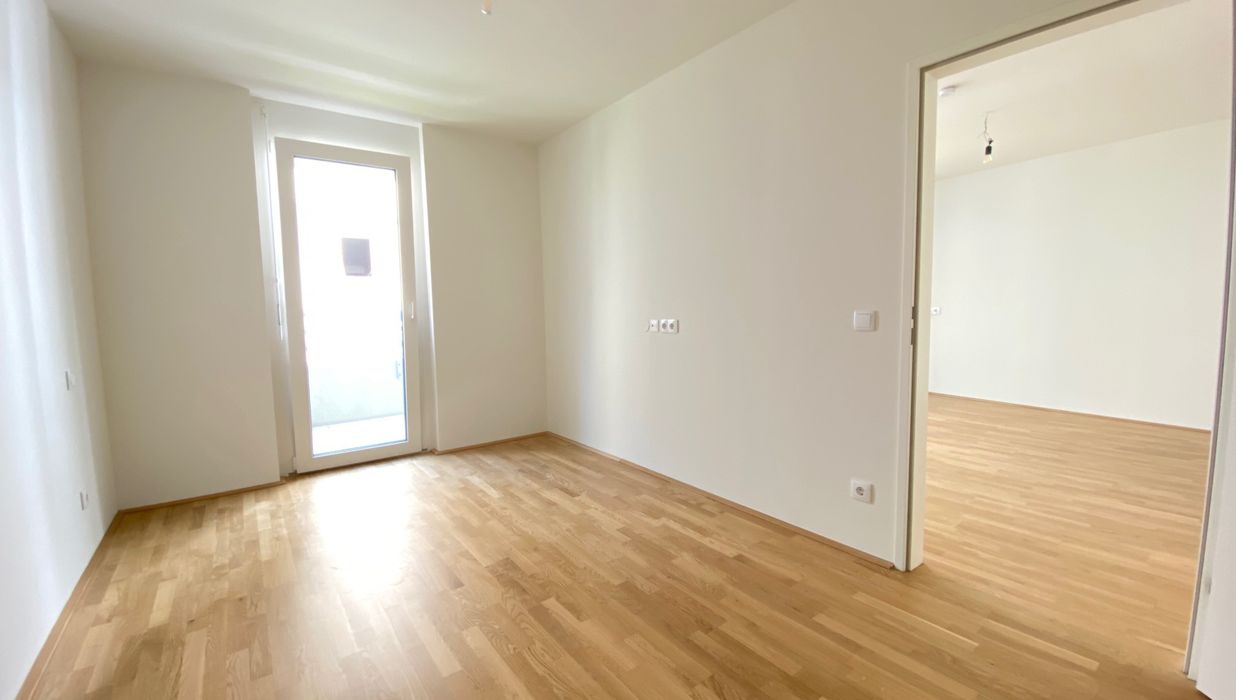 Die Wohnung selbst liegt im 2. Obergeschoss und verfügt über einen Wohnraum, ein Schlafzimmer, ein Badezimmer mit Dusche, Toilette und Waschmaschinenanschluss, sowie einen Vorraum. Der südwest-seitige Balkon rundet das Wohnerlebnis perfekt ab.
