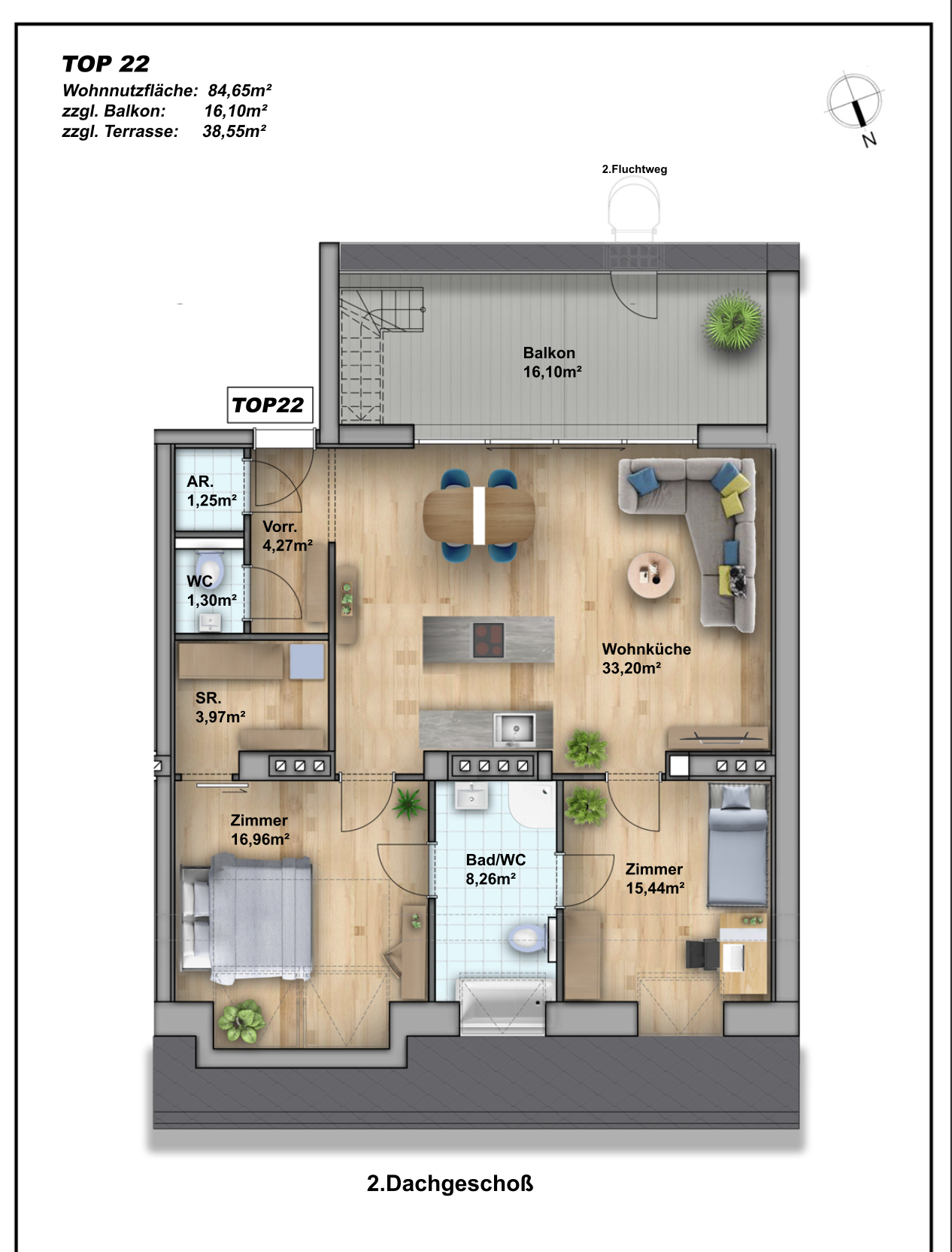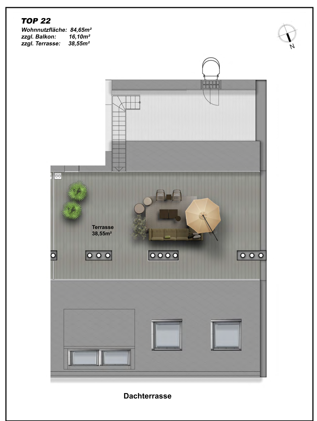 Nach Einreichung, würde es noch die Möglichkeite geben, auf dem Dach eine Dachterrasse herzustellen! Dies wäre mit zusätzlichen Kosten verbunden und sind nicht im Kaufpreis inkludiert.