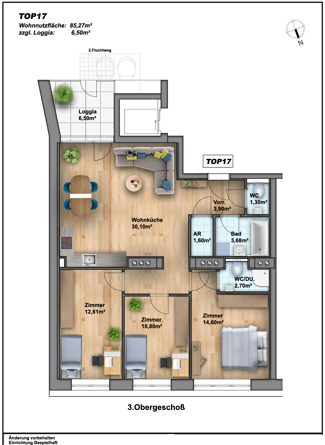 Auf einer Wohnfläche von ca. 85,3 m² erwartet Sie folgende Raumaufteilung: