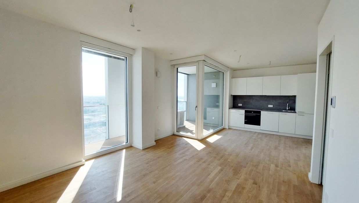 In einzigartiger Lage, direkt bei der U1-Station Kagran und vis-à-vis vom Donau Zentrum, entsteht ein exklusiver, ca. 155m hoher Wohnturm mit 45 Etagen. Die insgesamt 347 Mietwohnungen bieten einen vielfältigen Wohnungsmix: von smart geschnittenen 1,5-Zimmer-Apartments ab ca. 38 m² über komfortable 2-Zimmer-Wohnungen bis hin zu großzügigen 3- und 4-Zimmerwohnungen mit bis zu ca. 80 m².