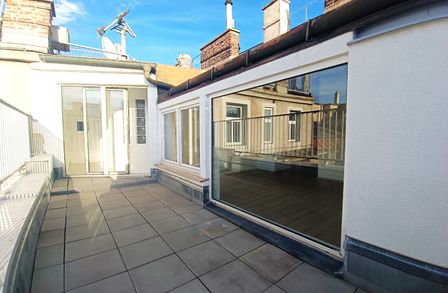In einer ruhigen Seitengasse in direkter Nähe zur U4 Friedensbrücke gelegen, erwartet Sie hier eine Dachgeschoss-Wohnung die mit Raumaufteilung, Lage und Größe überzeugt. Die Wohnung befindet sich im Dachgeschoss eines gepflegten Altbaus aus dem Jahr 1894 und verfügt über eine Terrasse mit ruhiger Ausrichtung in den Innenhof.