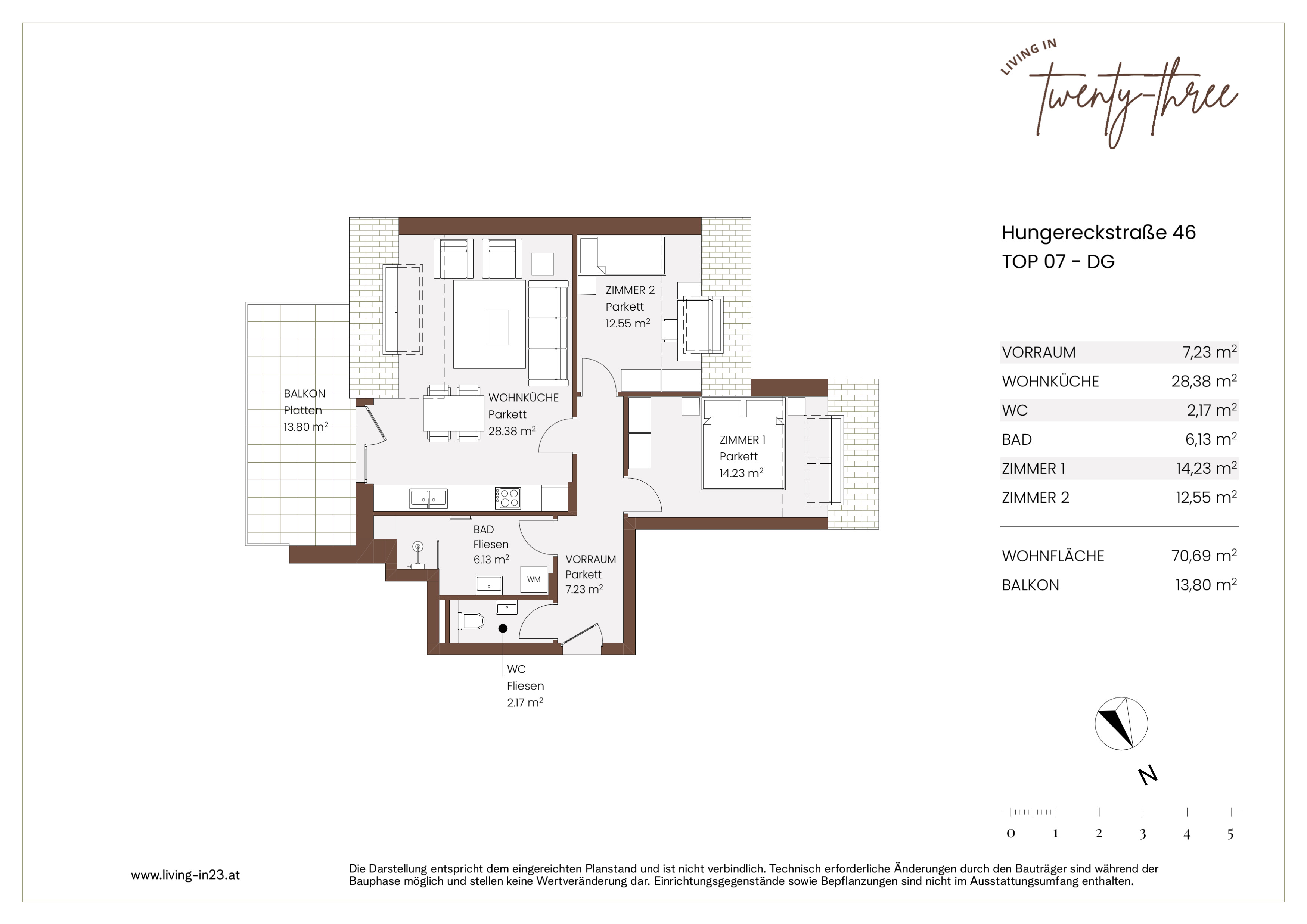 Ruhig gelegen und dennoch sehr gut angebunden: Mit der Badner Bahn rasch in die Innenstadt, Naherholung direkt vor der Tür. Die Nähe zur SCS, zu Schulen, Kindergärten und medizinischen Einrichtungen macht „Living in 23“ ideal für Familien und Berufstätige.