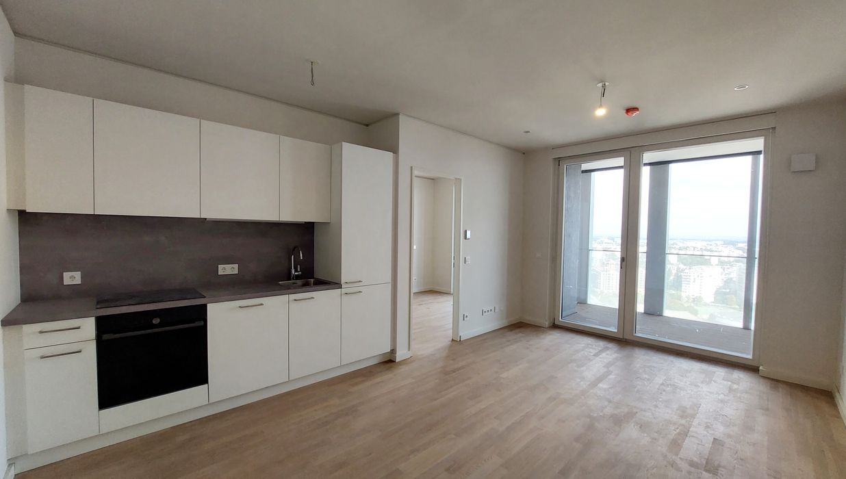 In einzigartiger Lage, direkt bei der U1-Station Kagran und vis-à-vis vom Donau Zentrum, entsteht ein exklusiver, ca. 155m hoher Wohnturm mit 45 Etagen. Die insgesamt 347 Mietwohnungen bieten einen vielfältigen Wohnungsmix: von smart geschnittenen 1,5-Zimmer-Apartments ab ca. 38 m² über komfortable 2-Zimmer-Wohnungen bis hin zu großzügigen 3- und 4-Zimmerwohnungen mit bis zu ca. 80 m².