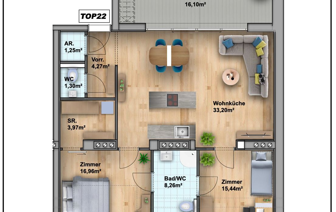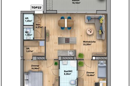 Auf einer Wohnfläche von ca. 84,7m² erwartet Sie folgende Raumaufteilung: