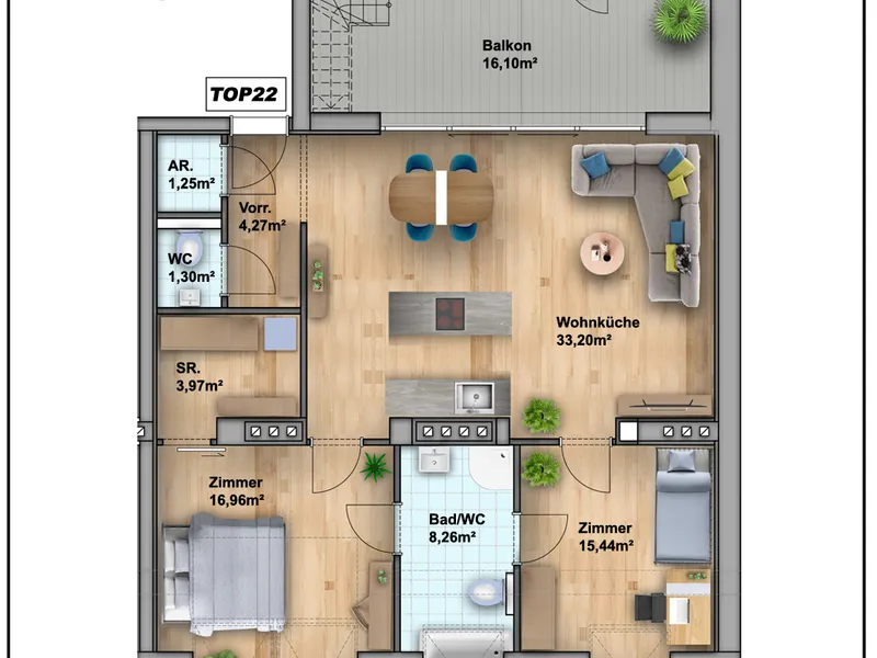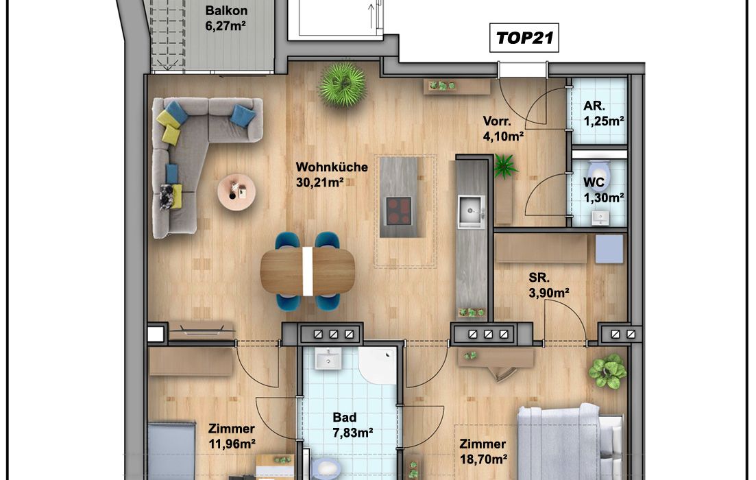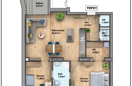 Auf einer Wohnfläche von ca. 83,2m² erwartet Sie folgende Raumaufteilung: