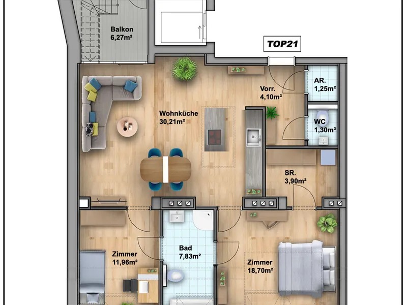 Auf einer Wohnfläche von ca. 83,2m² erwartet Sie folgende Raumaufteilung: