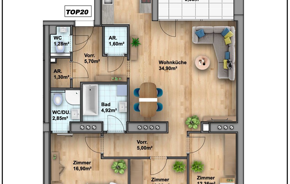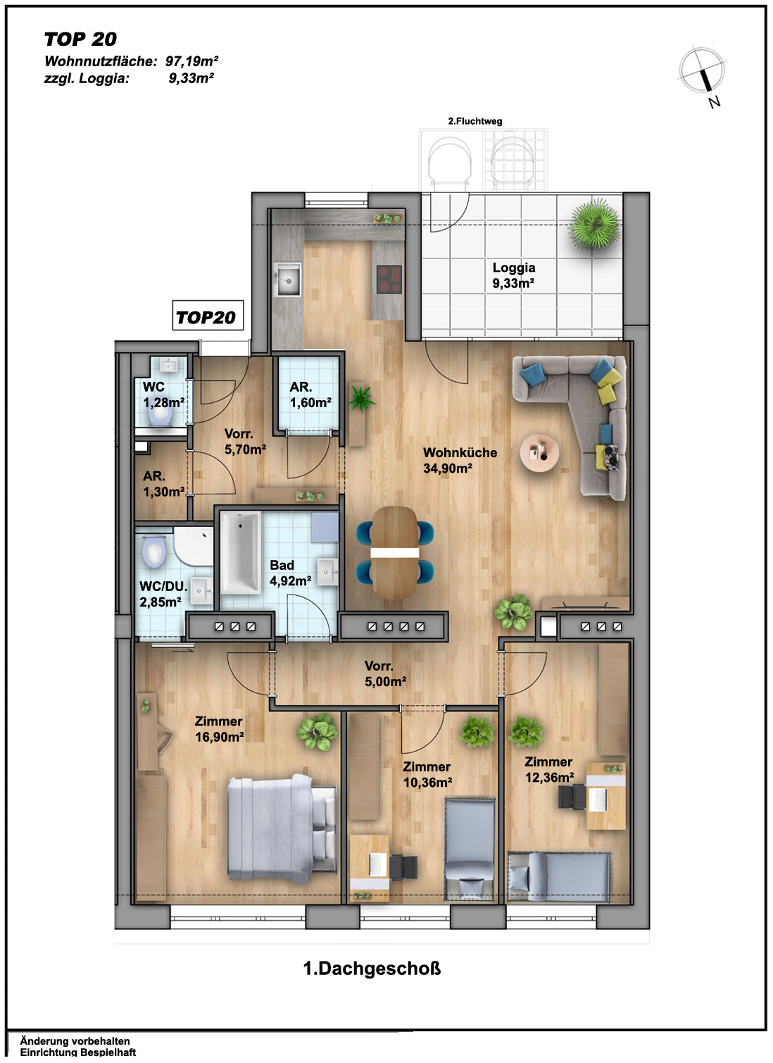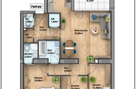 Auf einer Wohnfläche von ca. 97,2m² erwartet Sie folgende Raumaufteilung: