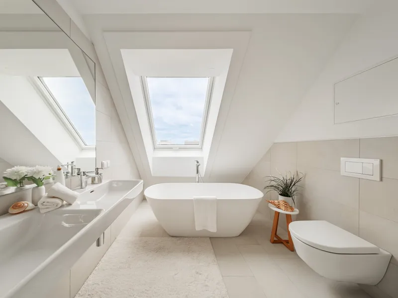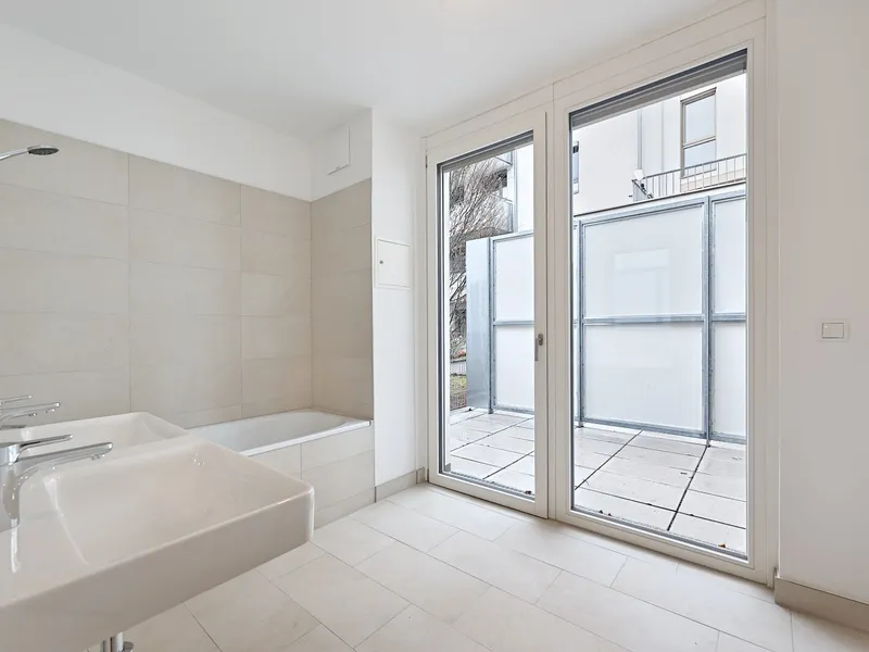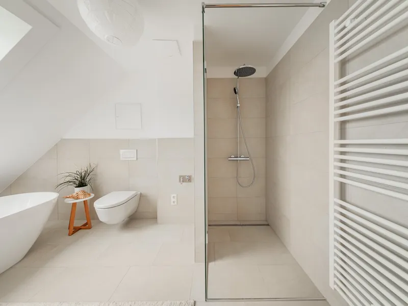 • Hochwertige Markenfliesen (30 × 60 cm) in den Bädern