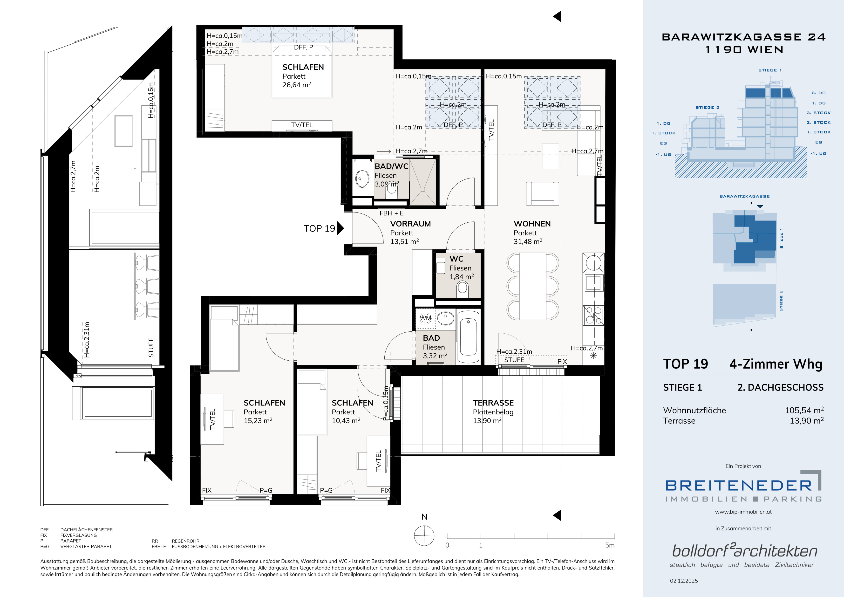 In zwei modernen Wohnhäusern entstehen insgesamt 26 hochwertig ausgestattete Wohnungen – jede mit privater Freifläche – sowie 13 PKW-Stellplätze. Die durchdachten Grundrisse und Größen sind genau auf die Bedürfnisse des Wiener Markt abgestimmt: von kompakten Einheiten für Singles und Paare bis zu großzügigen Wohnungen für Familien oder anspruchsvolle Mieter.