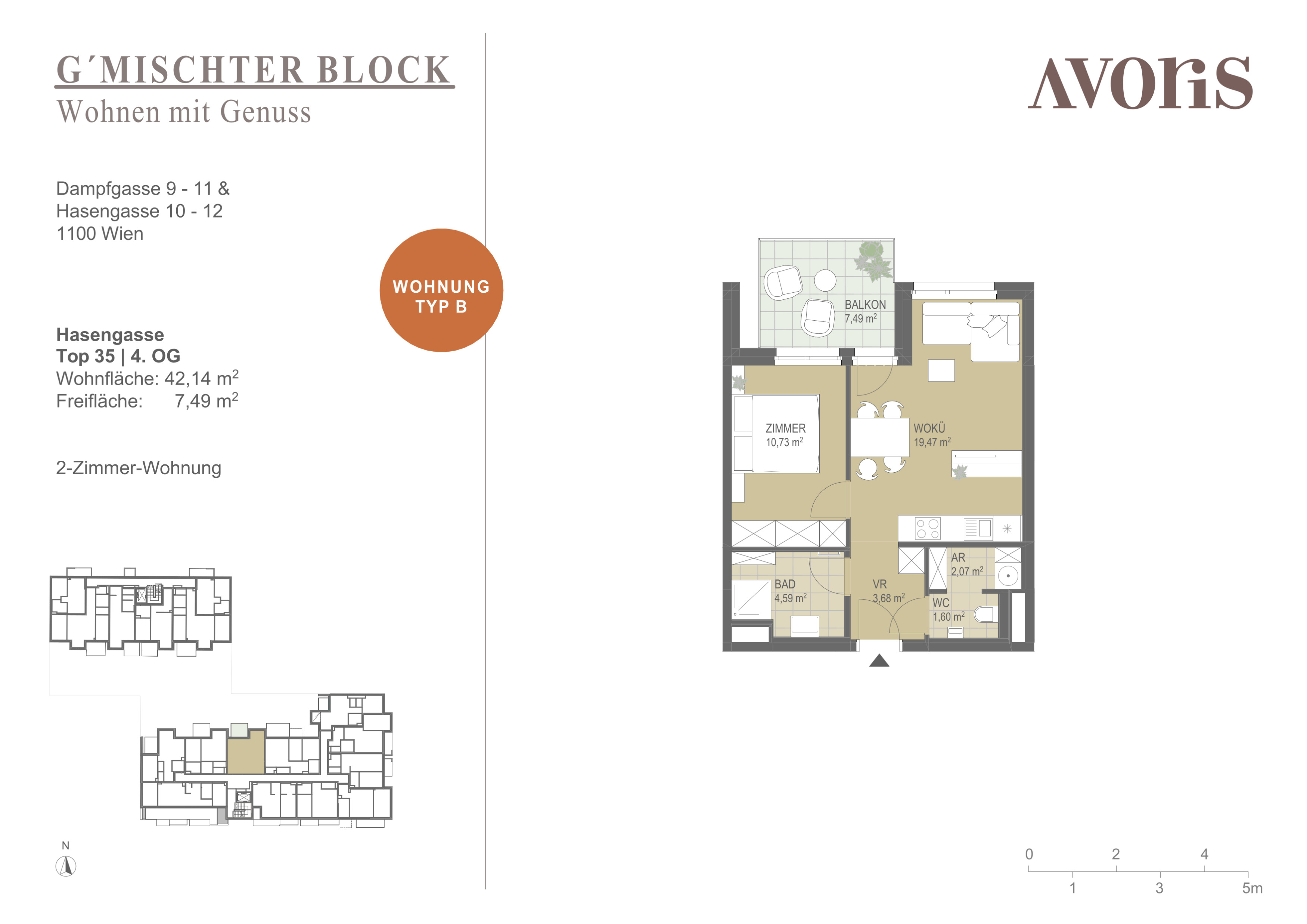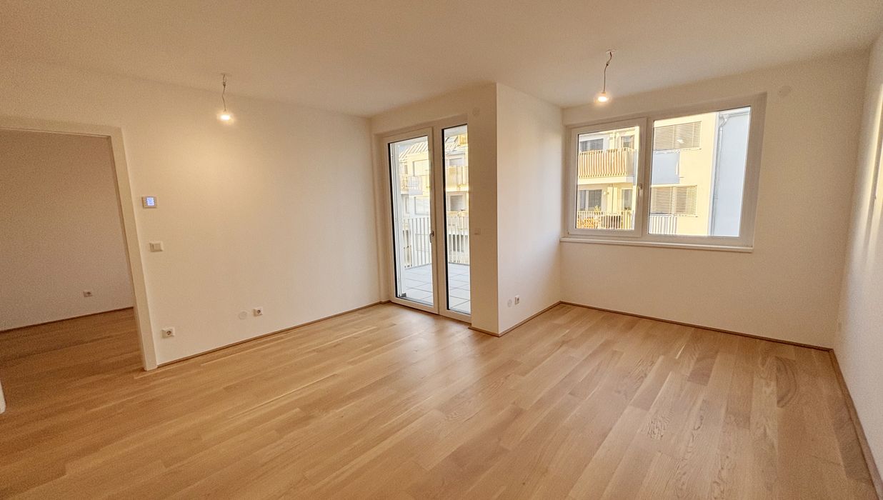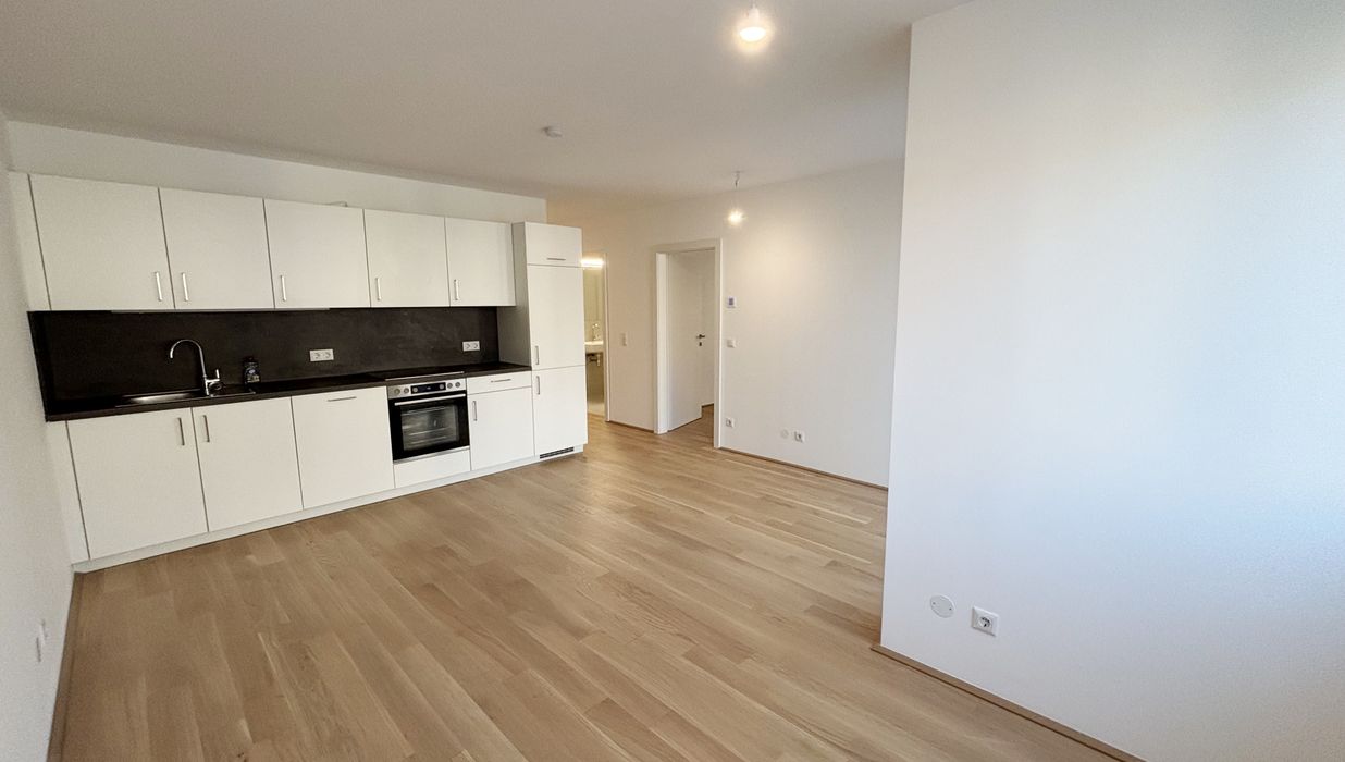 Zur Verfügung steht eine 2 Zimmer Wohnung welche sich im 4. Obergeschoss befindet. Die Wohnung gliedert sich in eine Wohnküche mit direktem Zugang auf den gemütlichen Balkon, ein getrennt begehbares Schlafzimmer, ein Badezimmer mit Dusche, eine separate Toilette inklusive Abstellraum mit Waschmaschinenanschluss und einen Vorraum.