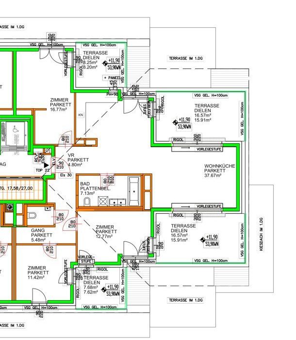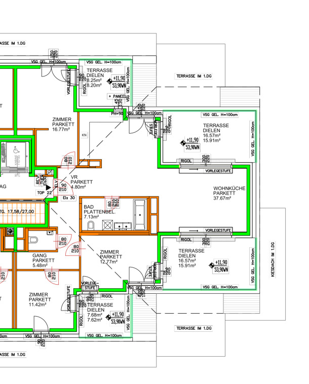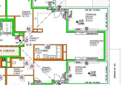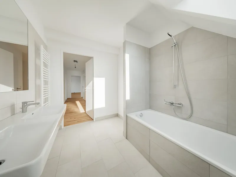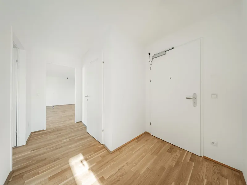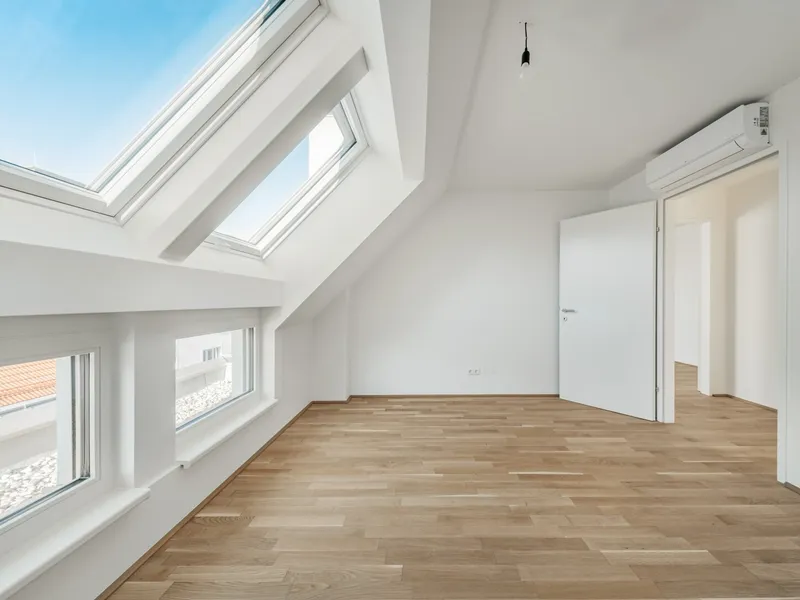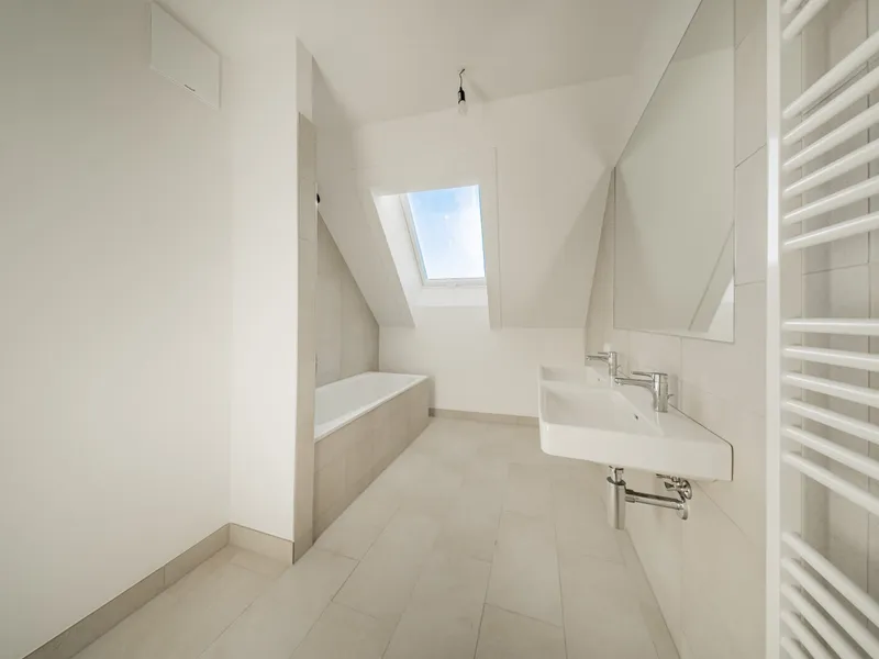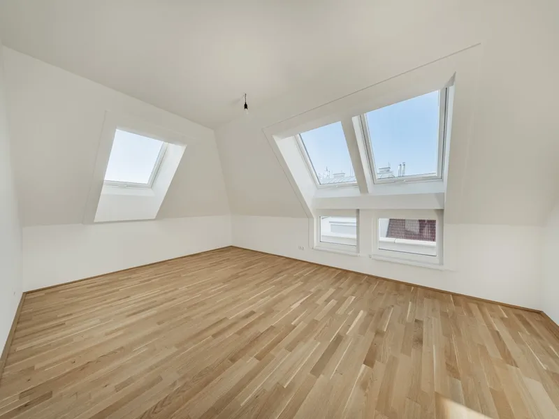 Die großzügige Wohnung selbst befindet sich im 1. Dachgeschoss, überzeugt durch ihre lichtdurchfluteten Räume, verfügt über eine großzügige, helle Wohnküche mit vollausgestatteter Einbauküche, drei ruhige separat begehbare Schlafzimmer, ein Badezimmer mit Dusche und Waschmaschinenanschluss und Doppelwaschbecken, ein separates WC sowie einen Vorraum. Die Terrassen mit zusammen 49 m² runden das Wohnerlebnis perfekt ab.