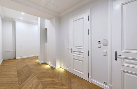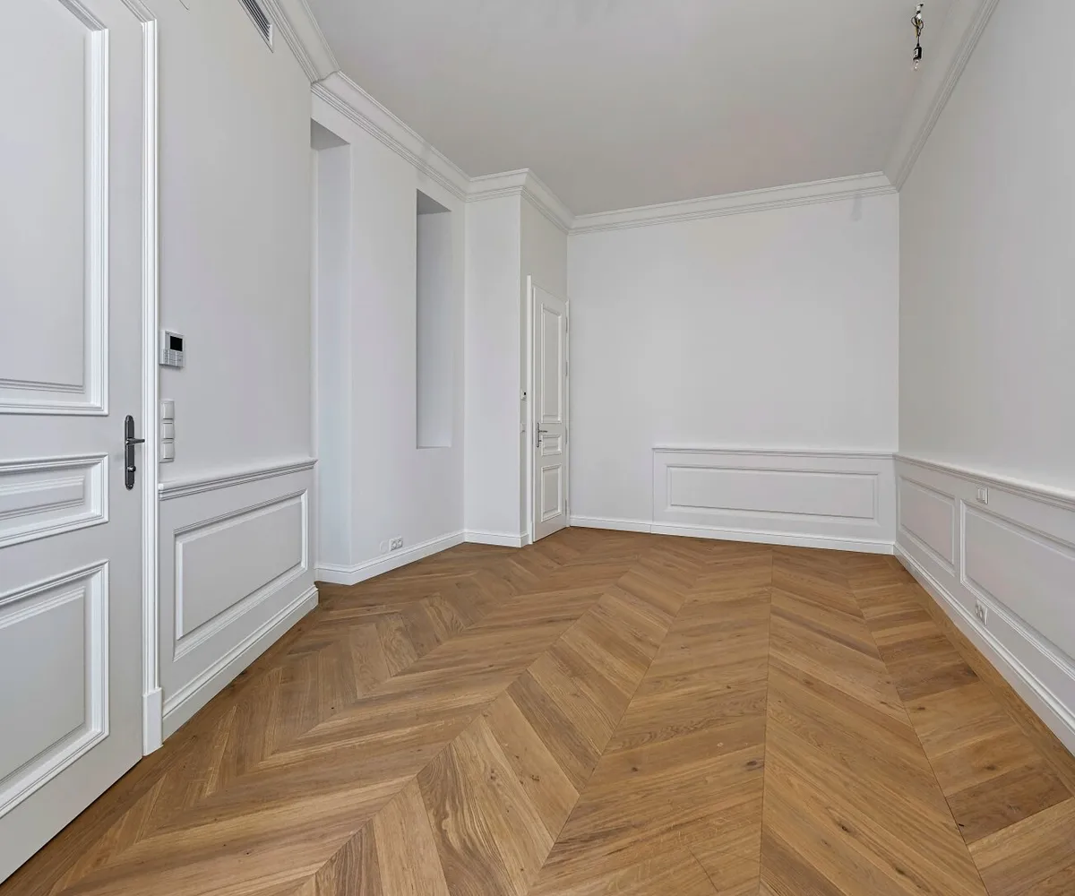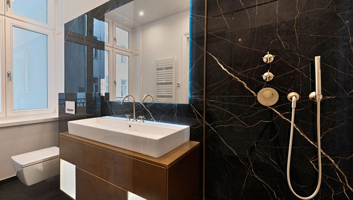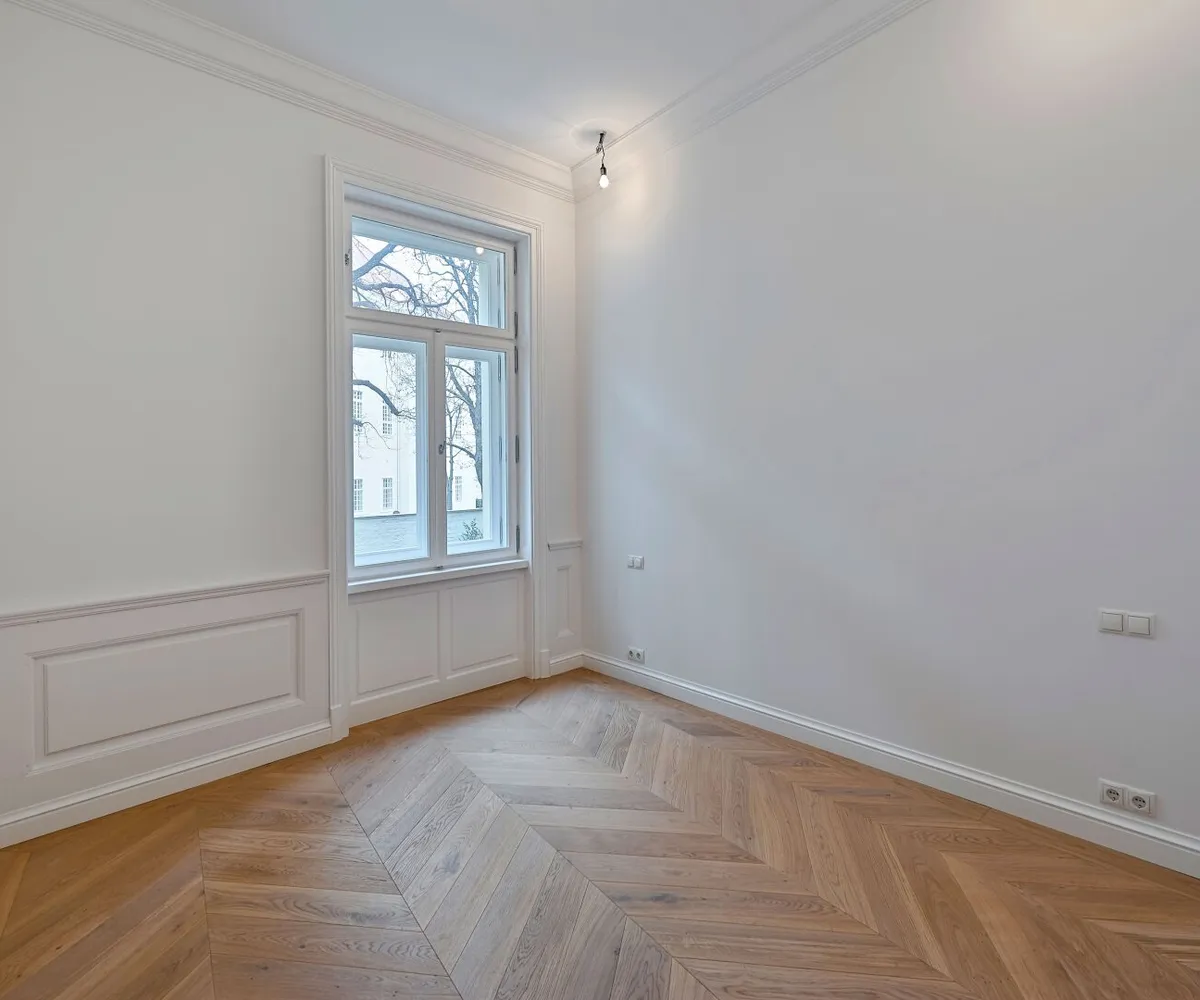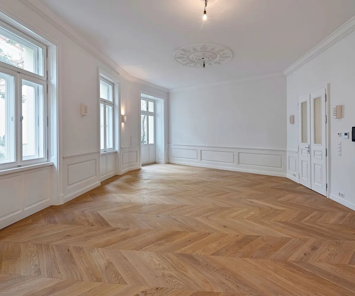 In jeder einzelnen Baumaßnahme ist das Erbe der alten Wiener Baukunst erhalten und zugleich wurde Raum für moderne Ansprüche geschaffen. Historische Elemente wie französisches Fischgrätparkett, prachtvolle Stuckleisten und traditionelle Kastenfenster wurden aufwändig restauriert und prägen das Flair des Jahrhundertwendehauses. Fußbodenheizung in allen Räumen sorgt auch in der kalten Jahreszeit für ein behagliches Zuhause. Die Bäder, eingebettet im historischen Ambiente, bieten ebenfalls exklusiven Standard – von freistehender Badewanne und Doppelwaschtischen bis zu großformatigem Feinsteinzeug in luxuriöser Marmoroptik.