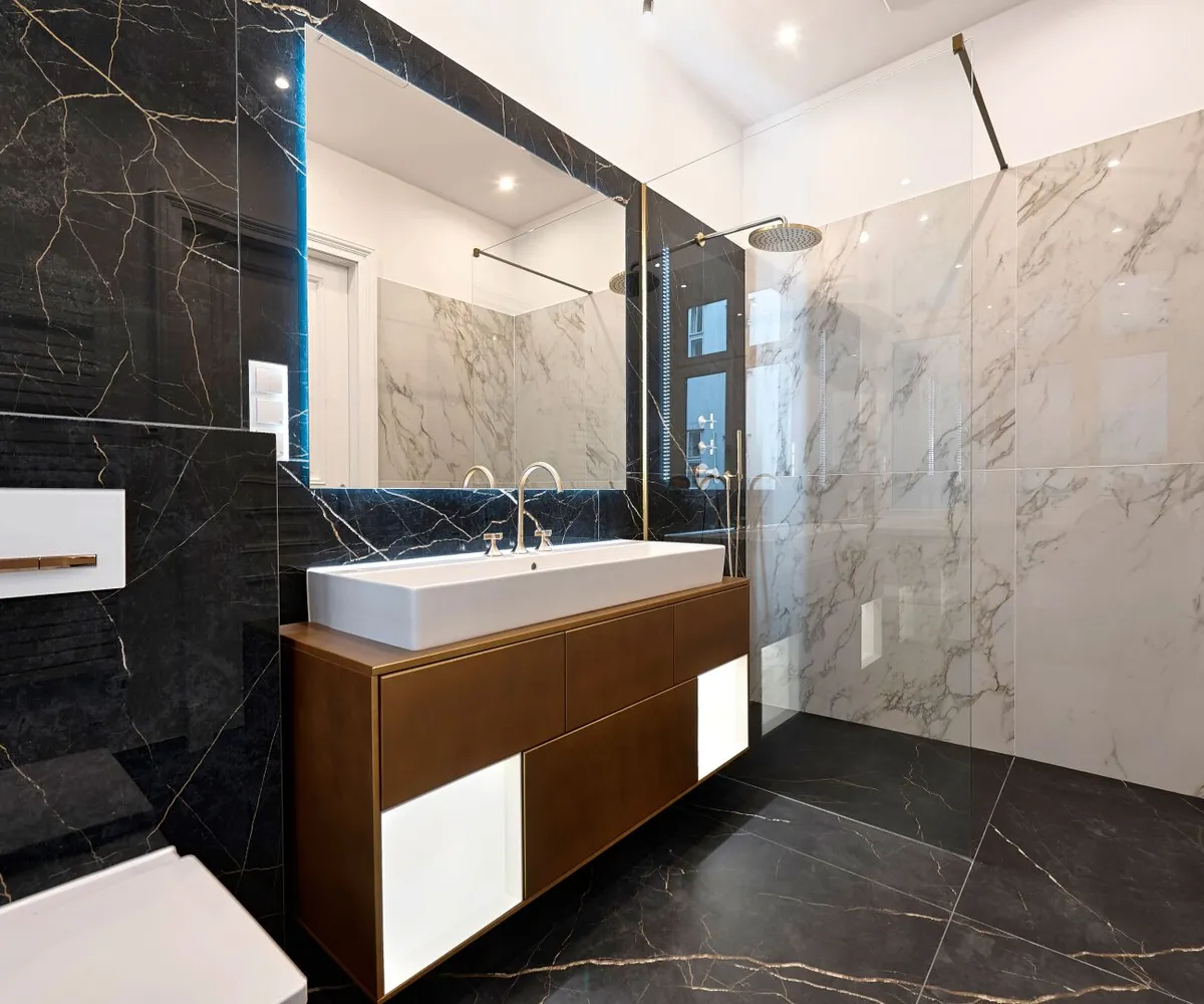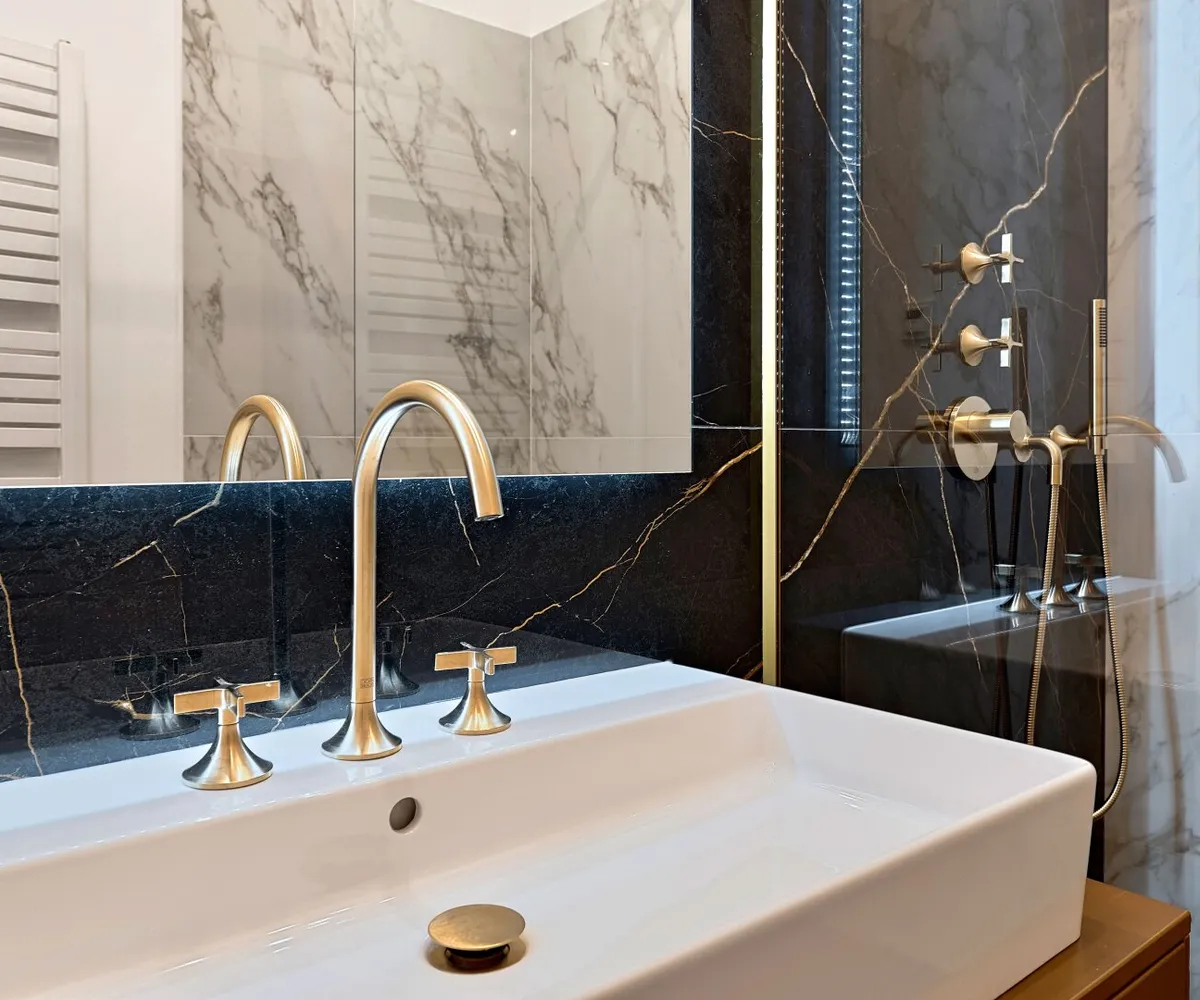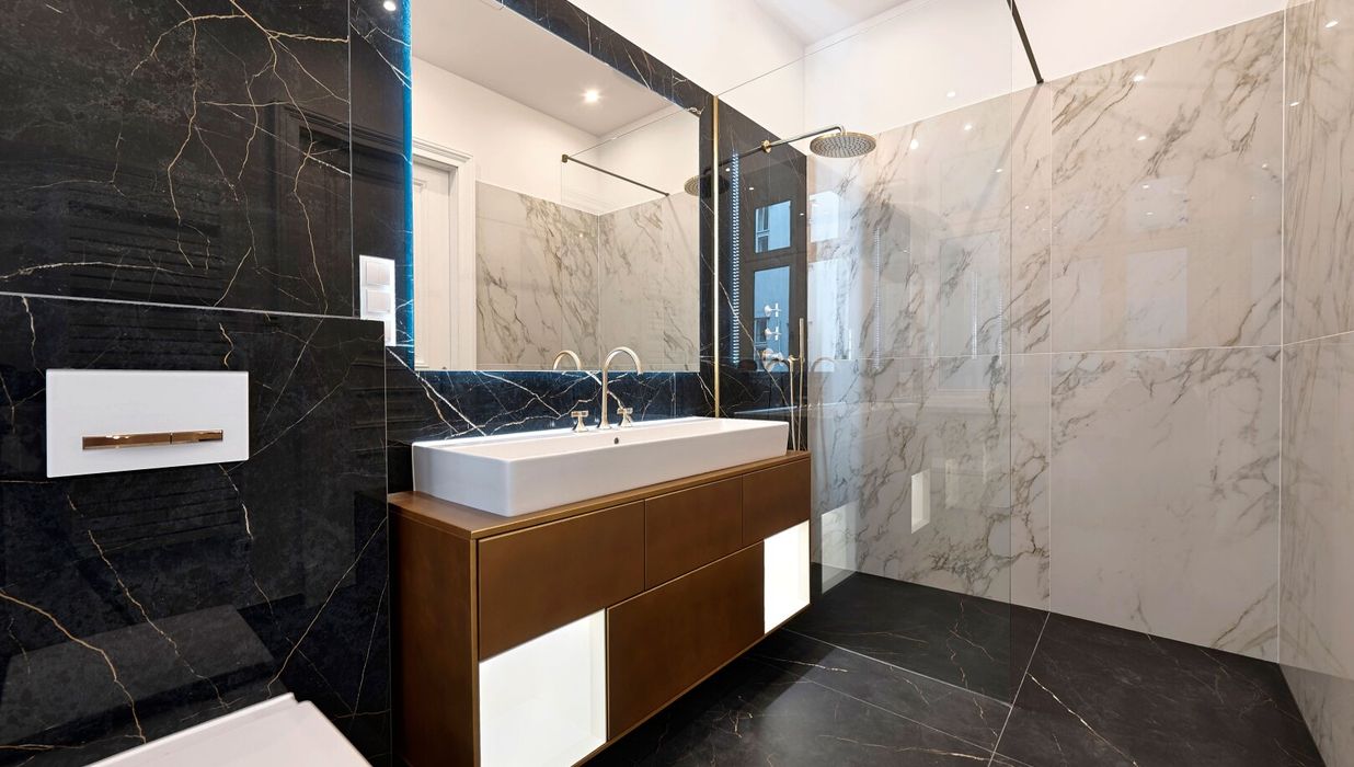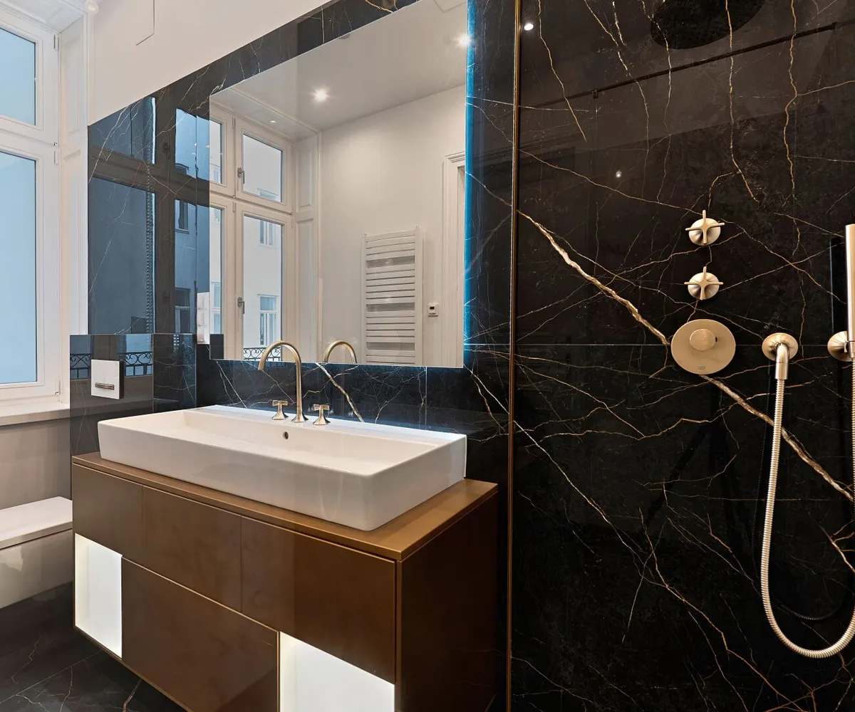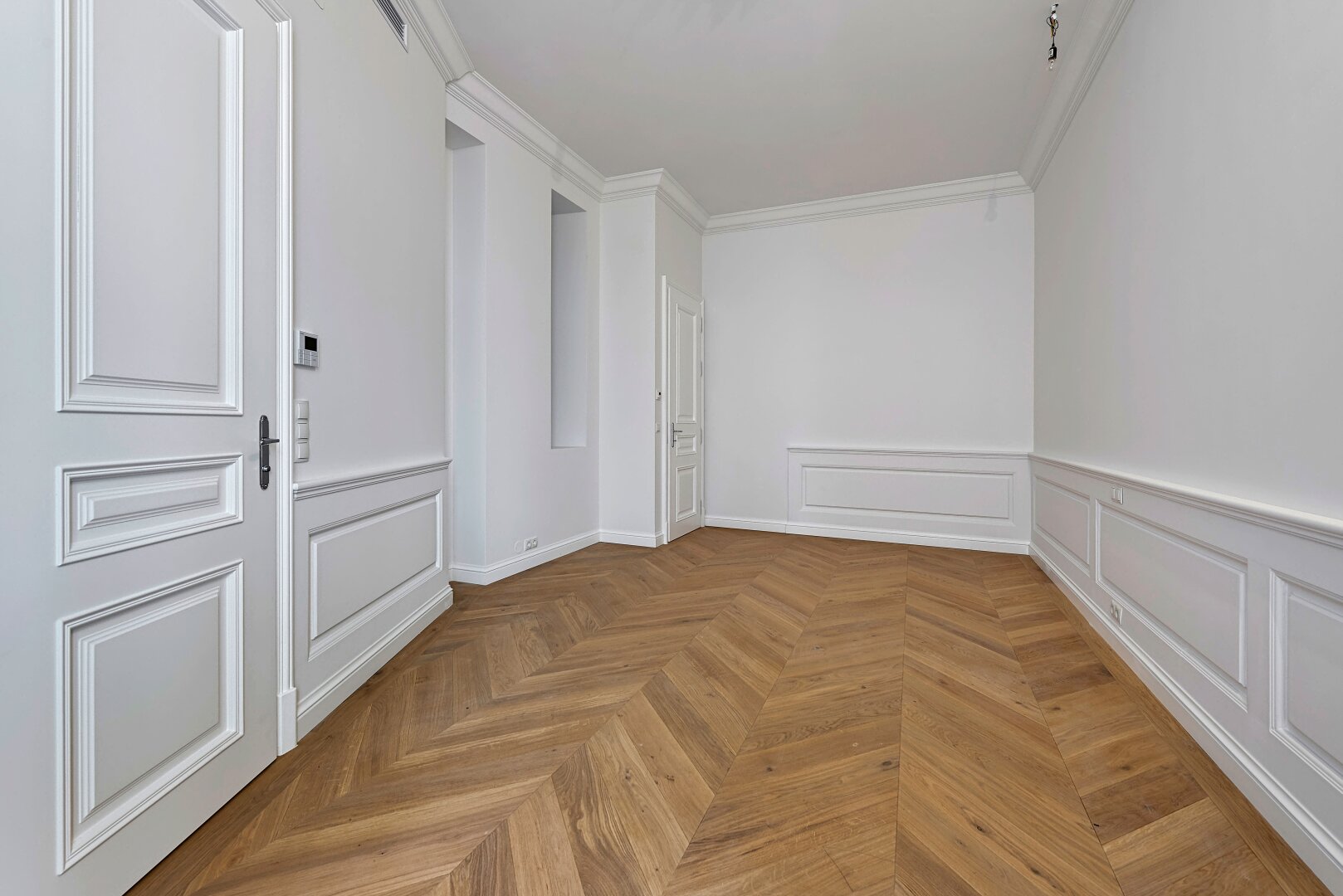 In jeder einzelnen Baumaßnahme ist das Erbe der alten Wiener Baukunst erhalten und zugleich wurde Raum für moderne Ansprüche geschaffen. Historische Elemente wie französisches Fischgrätparkett, prachtvolle Stuckleisten und traditionelle Kastenfenster wurden aufwändig restauriert und prägen das Flair des Jahrhundertwendehauses. Fußbodenheizung in allen Räumen sorgt auch in der kalten Jahreszeit für ein behagliches Zuhause. Die Bäder, eingebettet im historischen Ambiente, bieten ebenfalls exklusiven Standard – von freistehender Badewanne und Doppelwaschtischen bis zu großformatigem Feinsteinzeug in luxuriöser Marmoroptik.