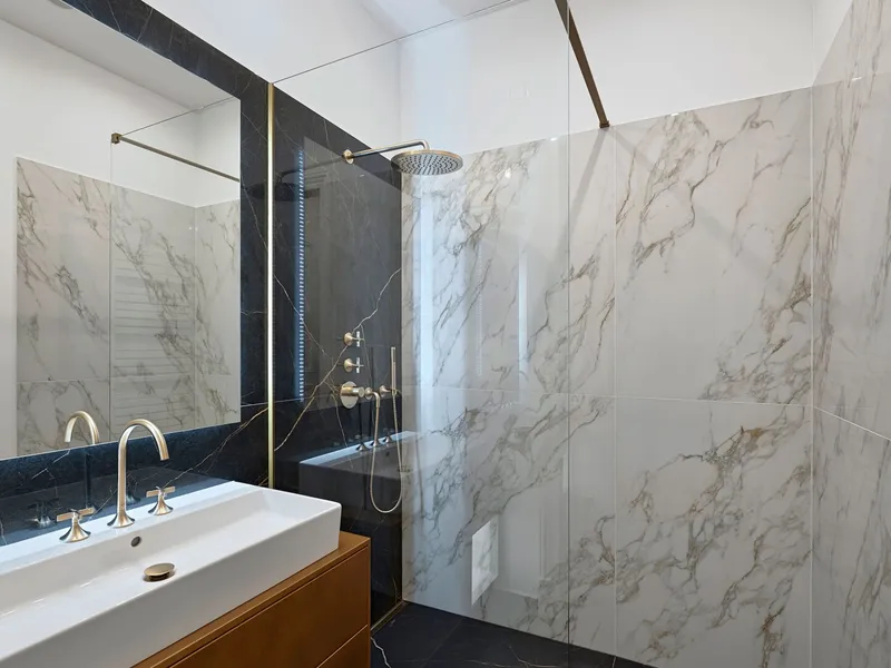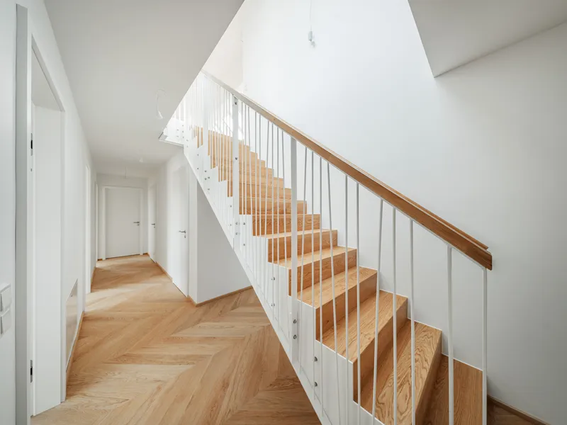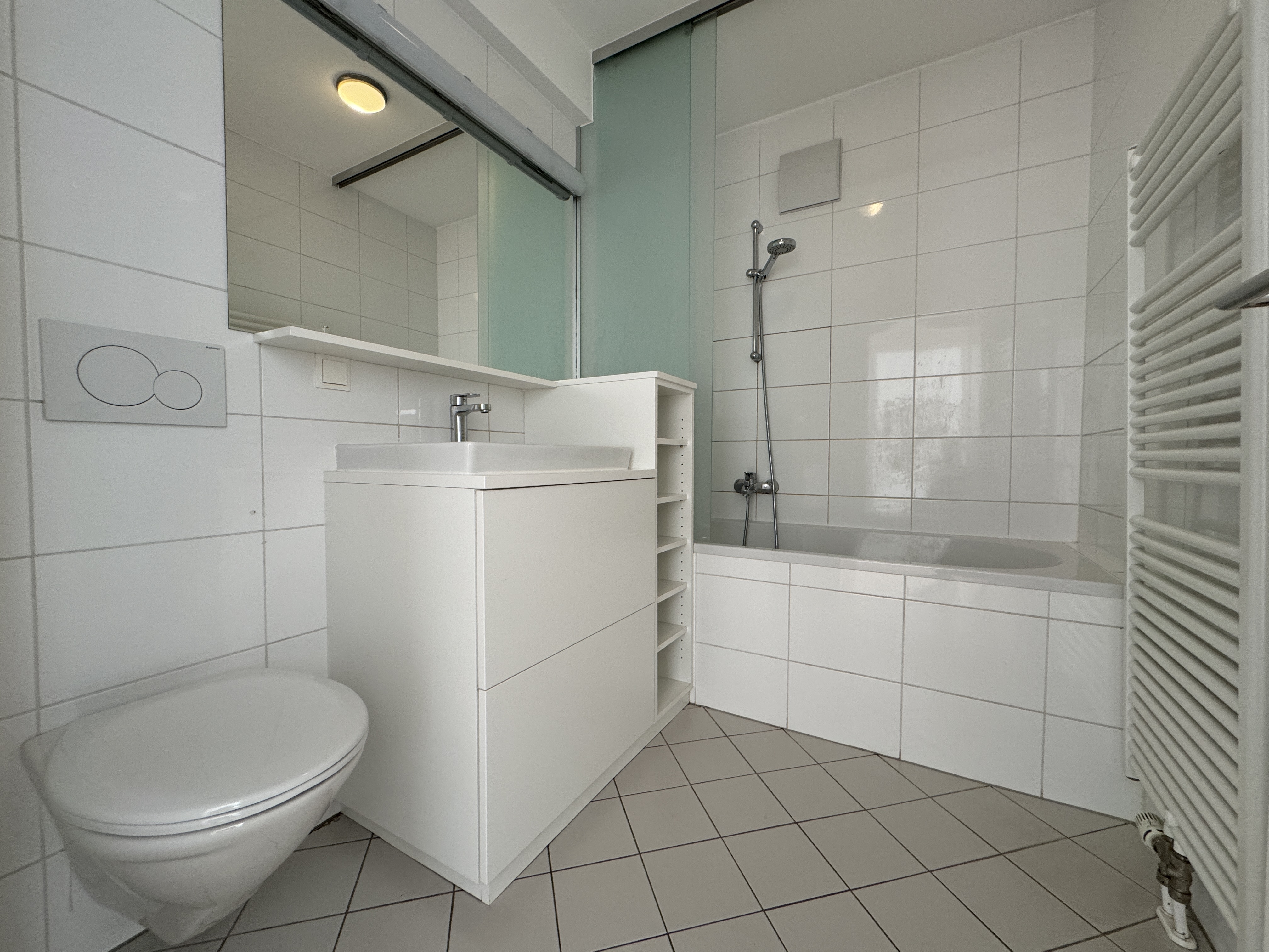Die Wohnung ist mit hochwertigem Parkettboden sowie die Sanitärräume mit großflächigen Fliesen ausgestattet. Die Einbauküche bietet Stauraum und Arbeitsfläche für Hobbyköche.