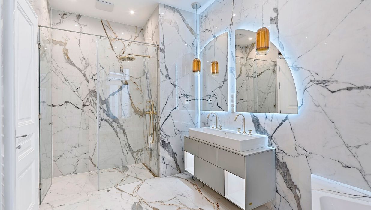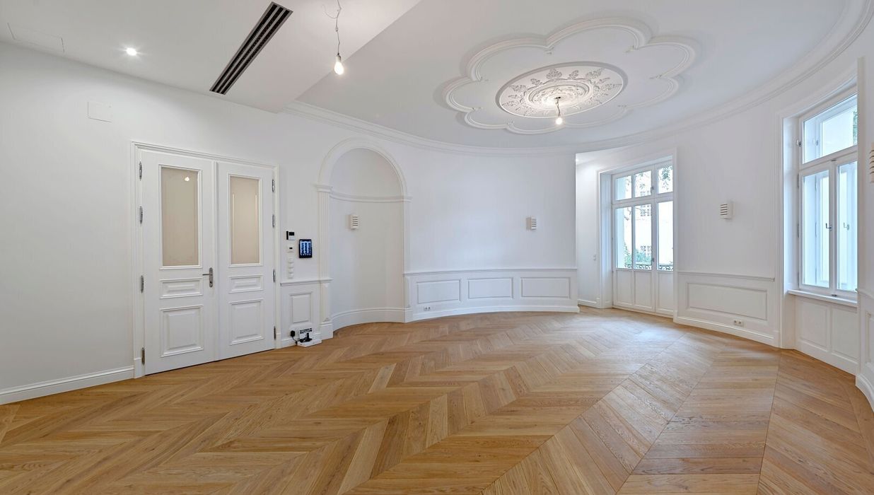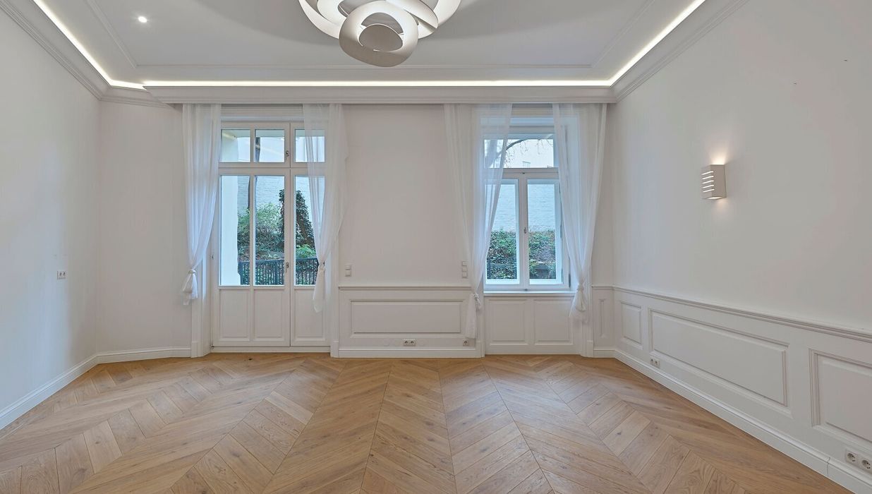 In jeder einzelnen Baumaßnahme ist das Erbe der alten Wiener Baukunst erhalten und zugleich wurde Raum für moderne Ansprüche geschaffen. Historische Elemente wie französisches Fischgrätparkett, prachtvolle Stuckleisten und traditionelle Kastenfenster wurden aufwändig restauriert und prägen das Flair des Jahrhundertwendehauses. Fußbodenheizung in allen Räumen sorgt auch in der kalten Jahreszeit für ein behagliches Zuhause. Die Bäder, eingebettet im historischen Ambiente, bieten ebenfalls exklusiven Standard – von freistehender Badewanne und Doppelwaschtischen bis zu großformatigem Feinsteinzeug in luxuriöser Marmoroptik.