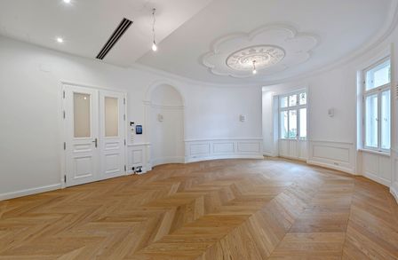An der repräsentativen Adresse am Widerhoferplatz 1 bieten exklusive Eigentumswohnungen begehrte Domizile für stilbewusste Kosmopoliten. Unter Erhalt der architektonischen Details werden die historischen Räumlichkeiten mit Größen von 104 bis 256 m² und 3 bis 6 Zimmern vollständig saniert und in ihrer ganzen Schönheit wiederhergestellt. Balkone, Terrassen und ein Garten mit idyllischem Grünblick erweitern das kostbare Stück Wiener Architekturgeschichte. Angenehm ruhig und doch mitten im pulsierenden Leben beeindruckt das stattliche Gründerzeithaus mit einer einzigartigen Atmosphäre.