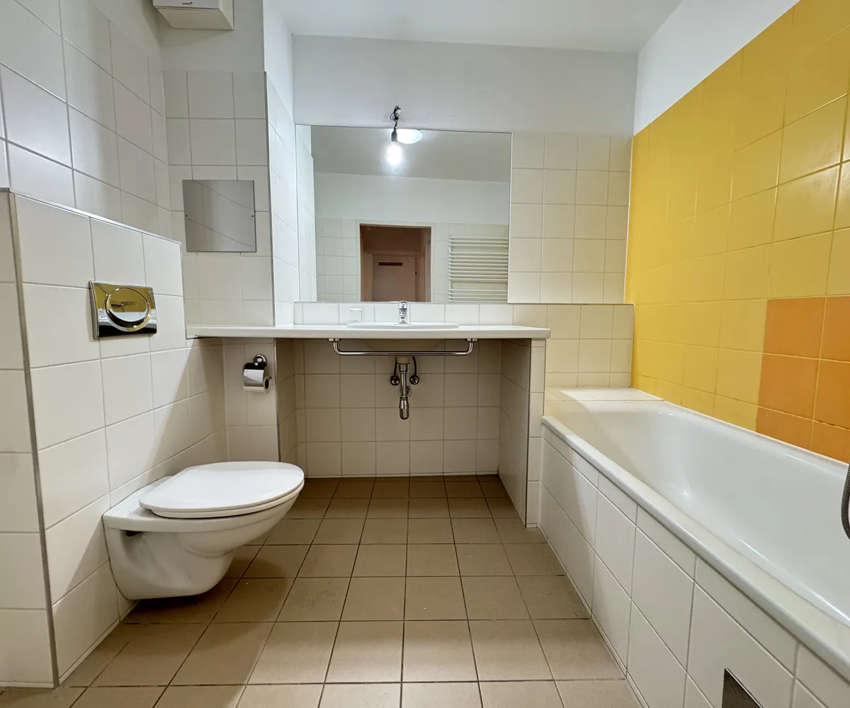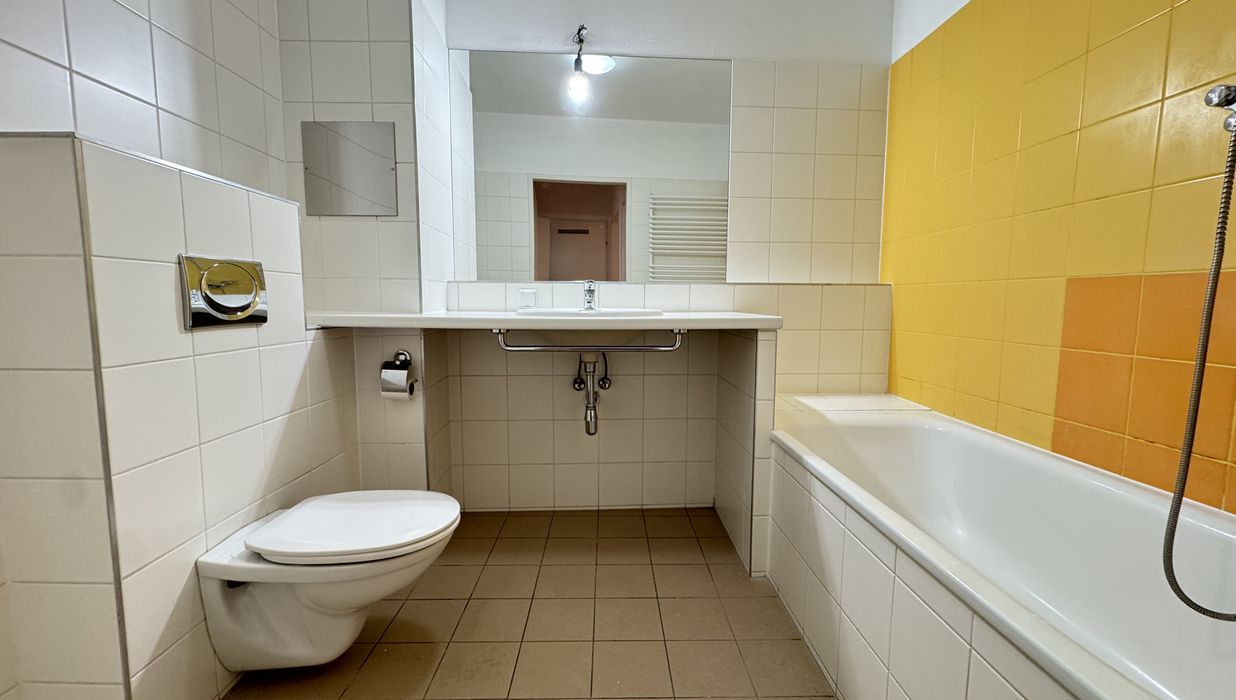 Die offene Wohnküche ist mit einer modernen Einbauküche ausgestattet und bietet Ihnen genügend Platz, um Ihre Kochkünste auszuleben. Fliesen und Parkett verleihen der Wohnung eine stilvolle Note und sorgen für ein angenehmes Wohnklima. Das Badezimmer mit Badewanne lädt dazu ein, nach einem langen Tag zu entspannen und neue Energie zu tanken.