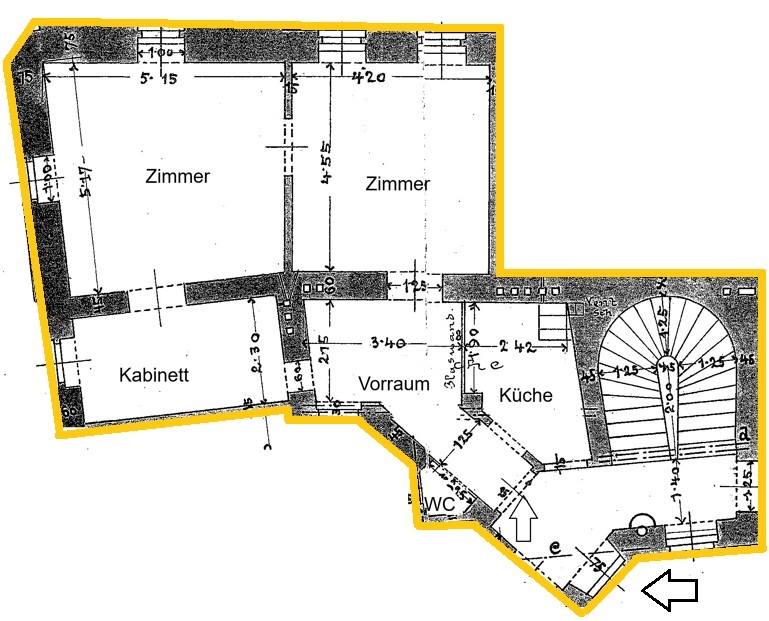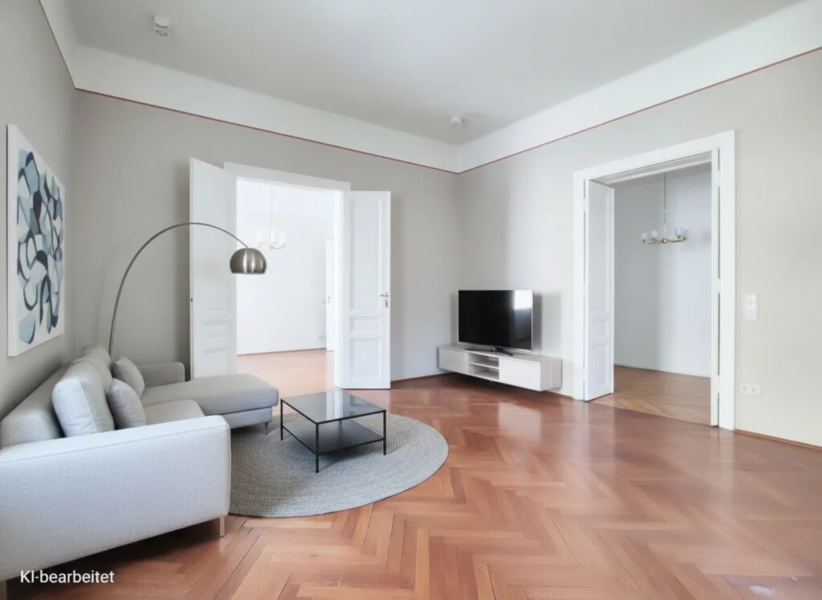 Die Wohnung liegt im 2. Liftstock eines gepflegten Altbaus aus dem Jahr 1887. Der Grundriss bietet Potenzial für eigene Gestaltungsideen in einem klassischen Ambiente.