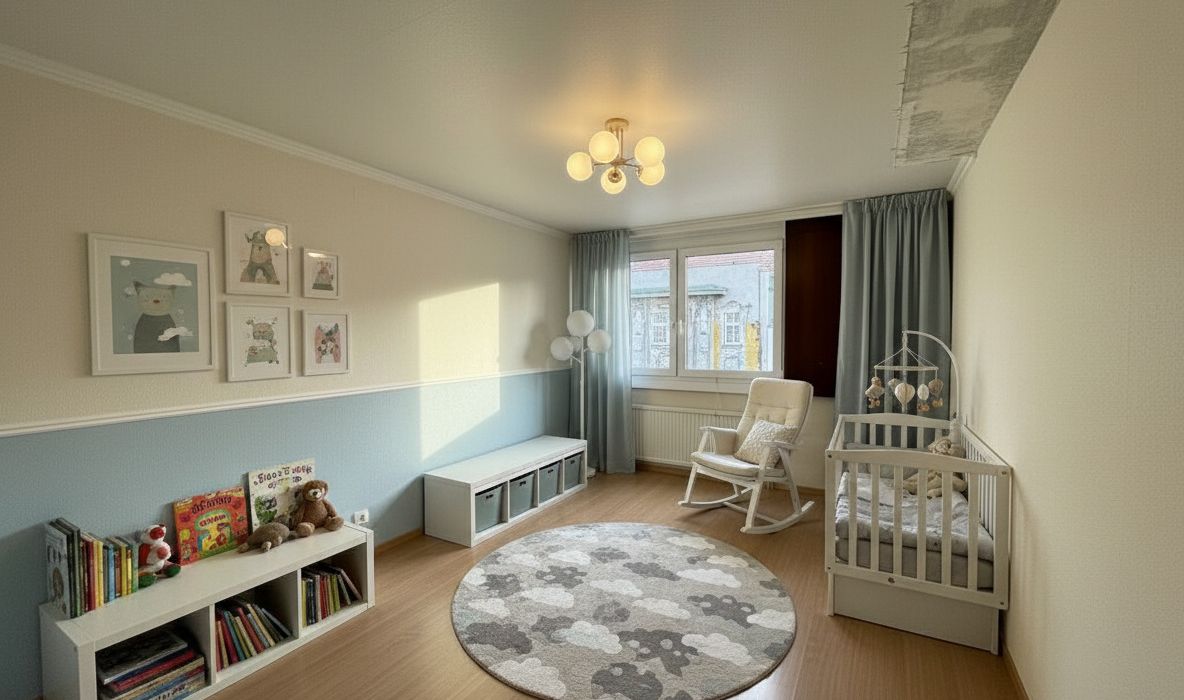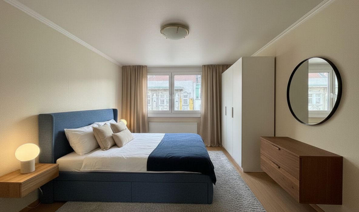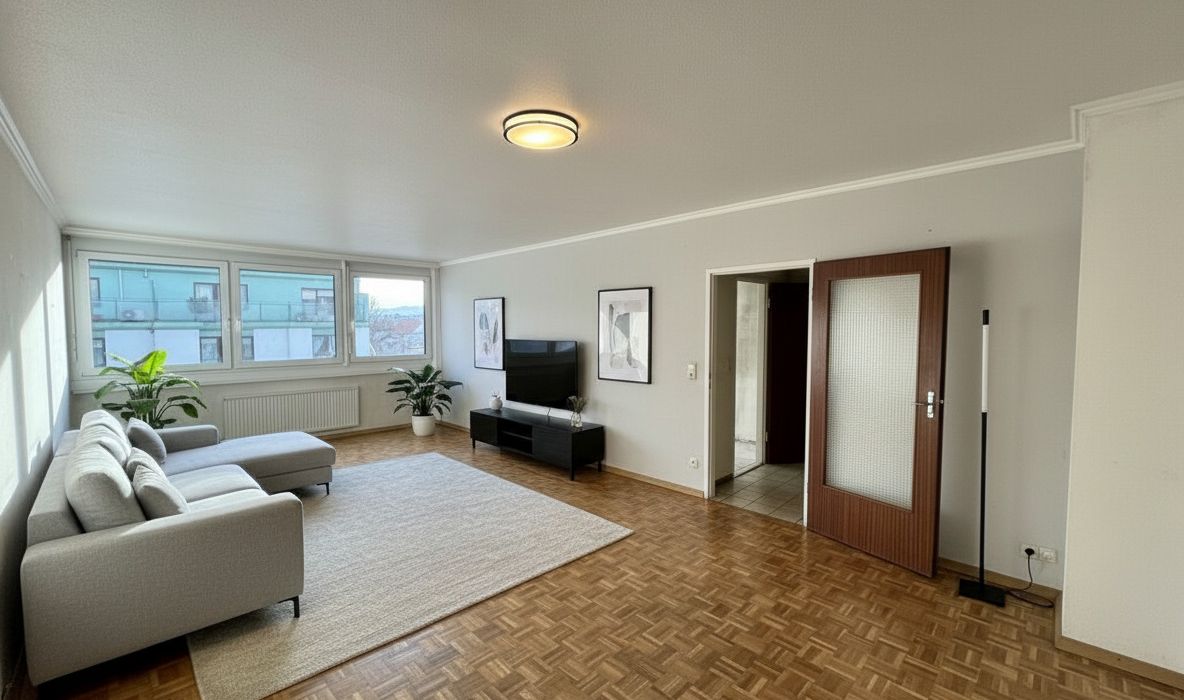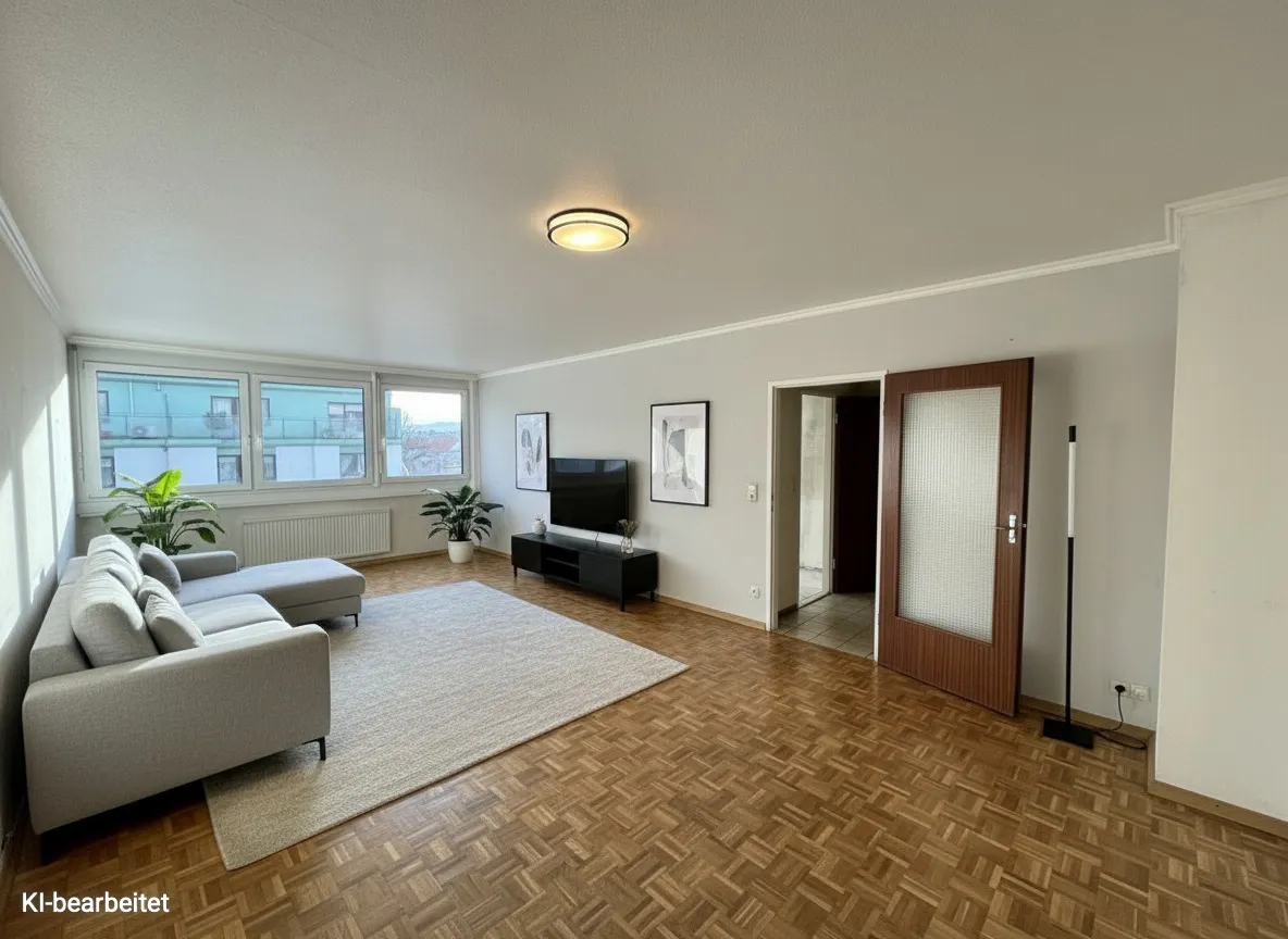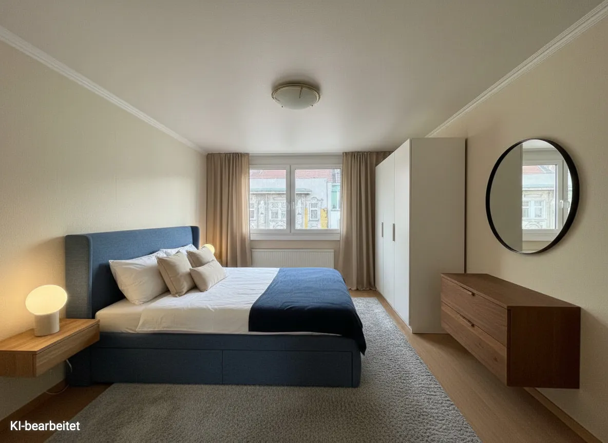 Die dargestellten möblierten Räume sind KI-generierte Visualisierungen und dienen lediglich der Veranschaulichung möglicher Einrichtungskonzepte . Die Möblierung und Sanierung ist nicht im Kaufpreis enthalten .