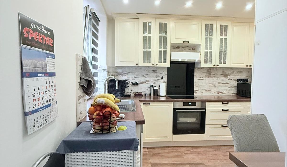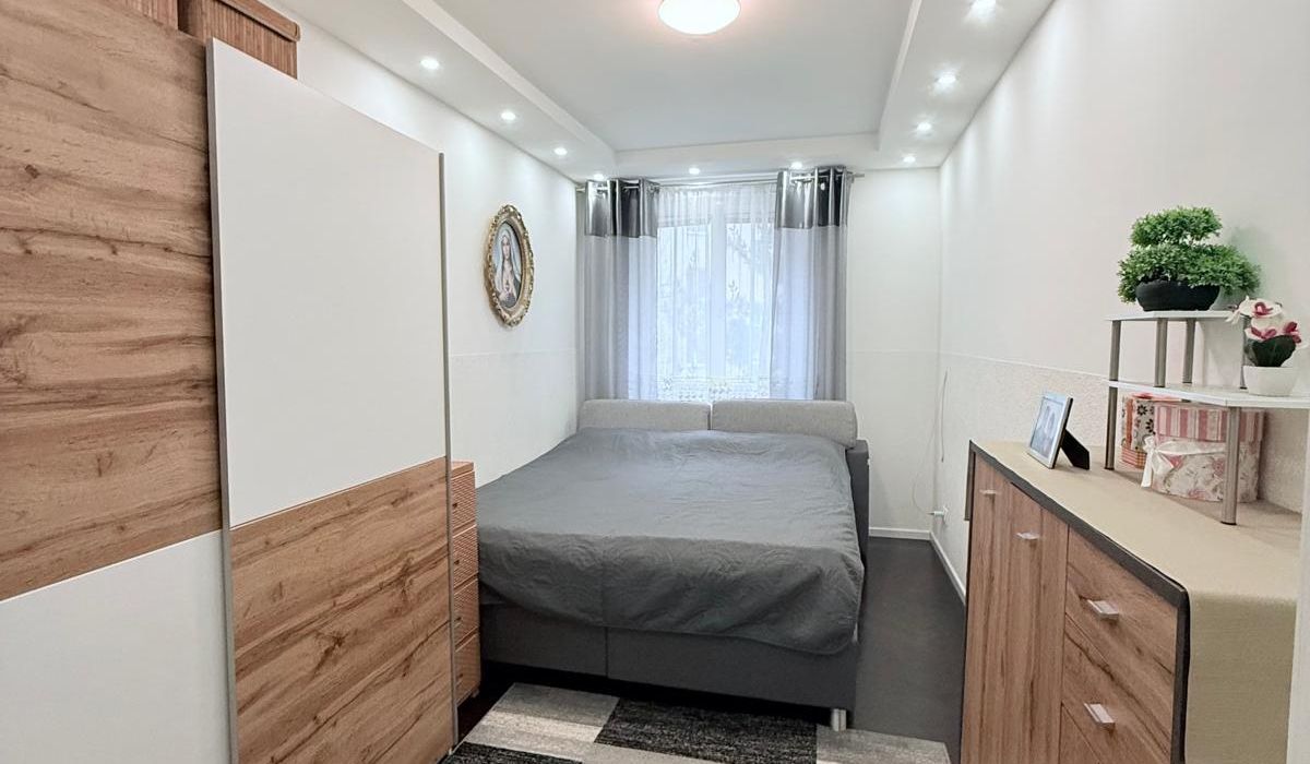 Die Räumlichkeiten gliedern sich in Vorzimmer, Wohnzimmer, 2 Schlafzimmer, Küche mit Zugang zum Badezimmer und eine separate Toilette.