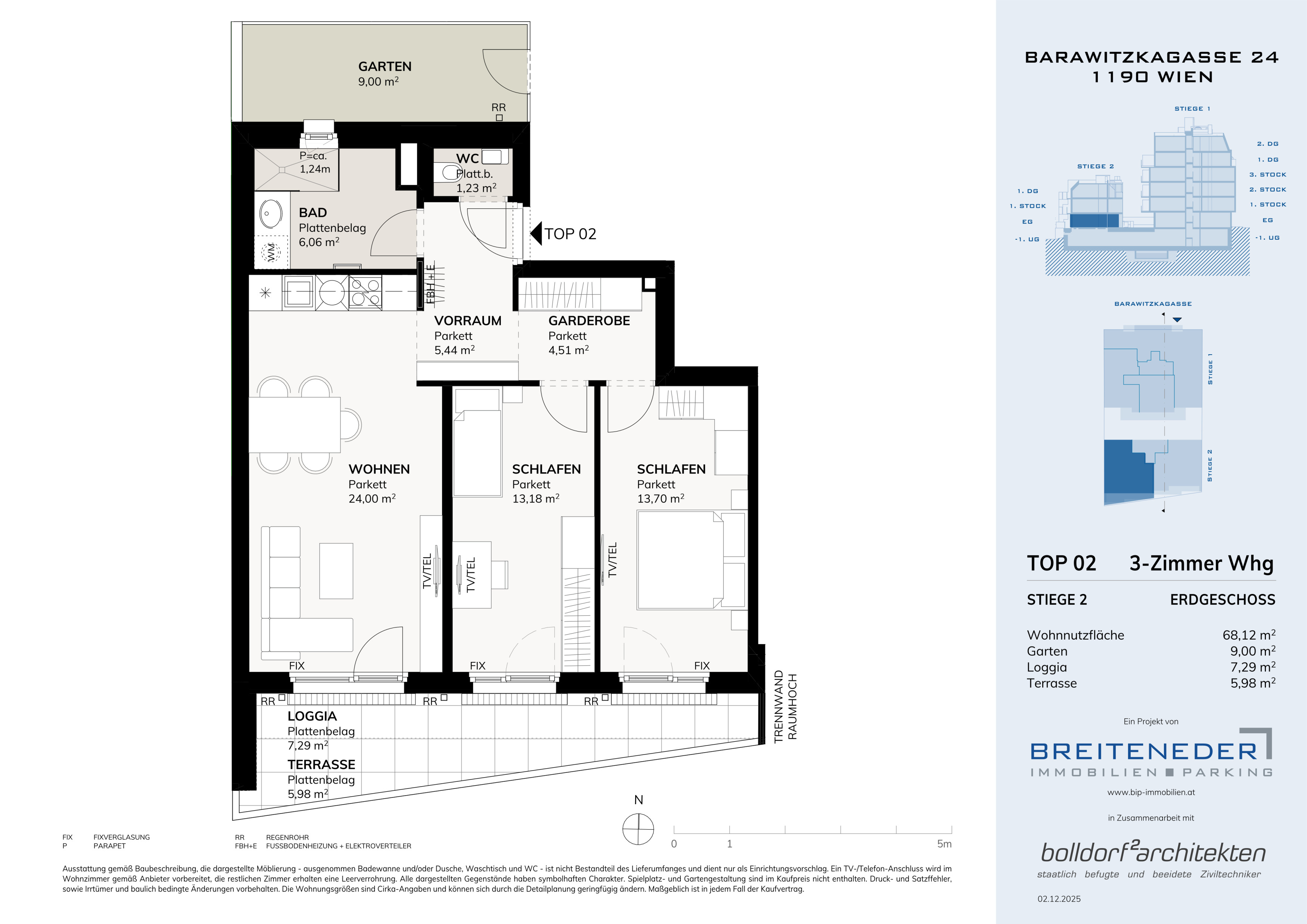In zwei modernen Wohnhäusern entstehen insgesamt 26 hochwertig ausgestattete Wohnungen – jede mit privater Freifläche – sowie 13 PKW-Stellplätze. Die durchdachten Grundrisse und Größen sind genau auf die Bedürfnisse des Wiener Markt abgestimmt: von kompakten Einheiten für Singles und Paare bis zu großzügigen Wohnungen für Familien oder anspruchsvolle Mieter.