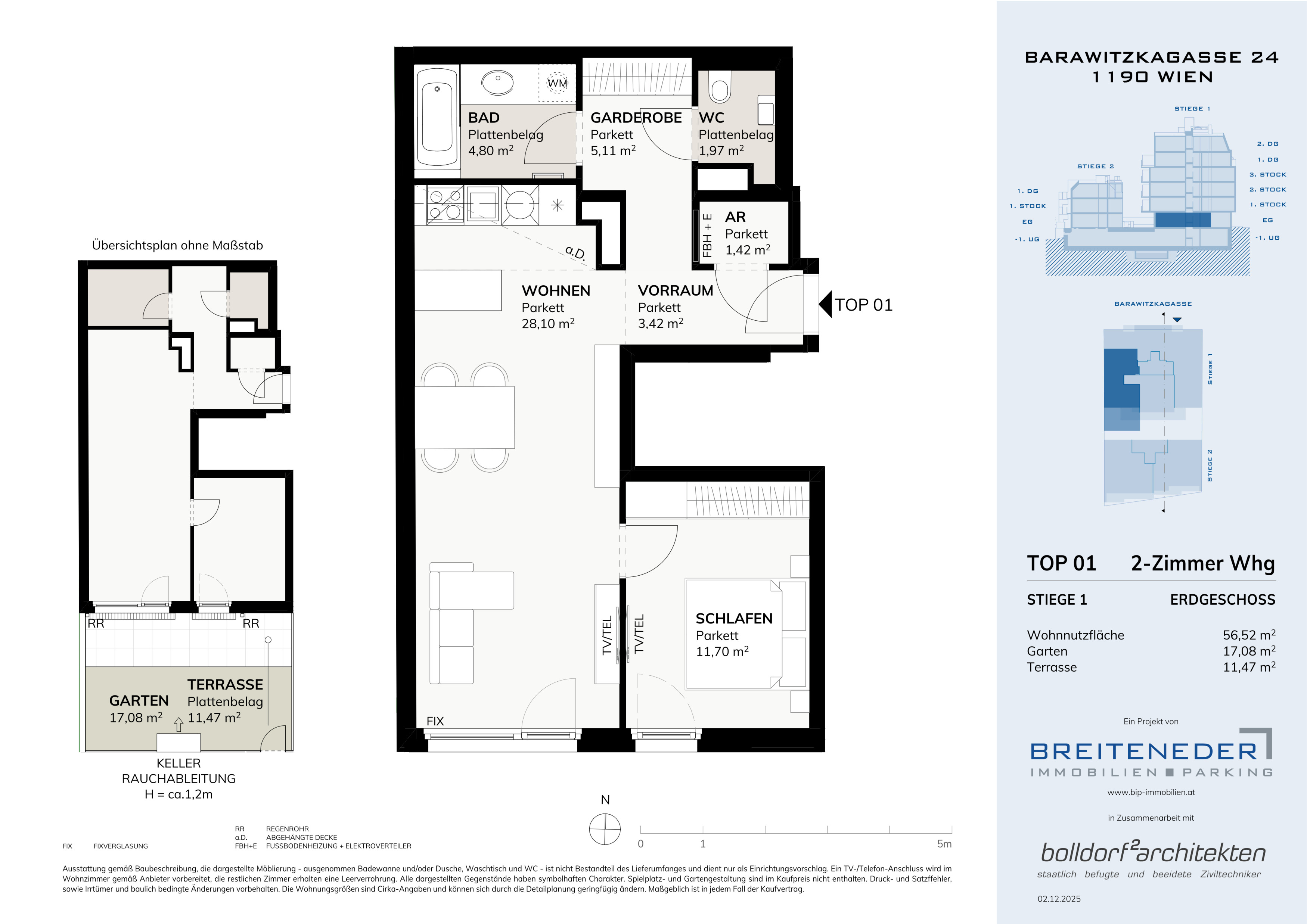 In zwei modernen Wohnhäusern entstehen insgesamt 26 hochwertig ausgestattete Wohnungen – jede mit privater Freifläche – sowie 13 PKW-Stellplätze. Die durchdachten Grundrisse und Größen sind genau auf die Bedürfnisse des Wiener Markt abgestimmt: von kompakten Einheiten für Singles und Paare bis zu großzügigen Wohnungen für Familien oder anspruchsvolle Mieter.