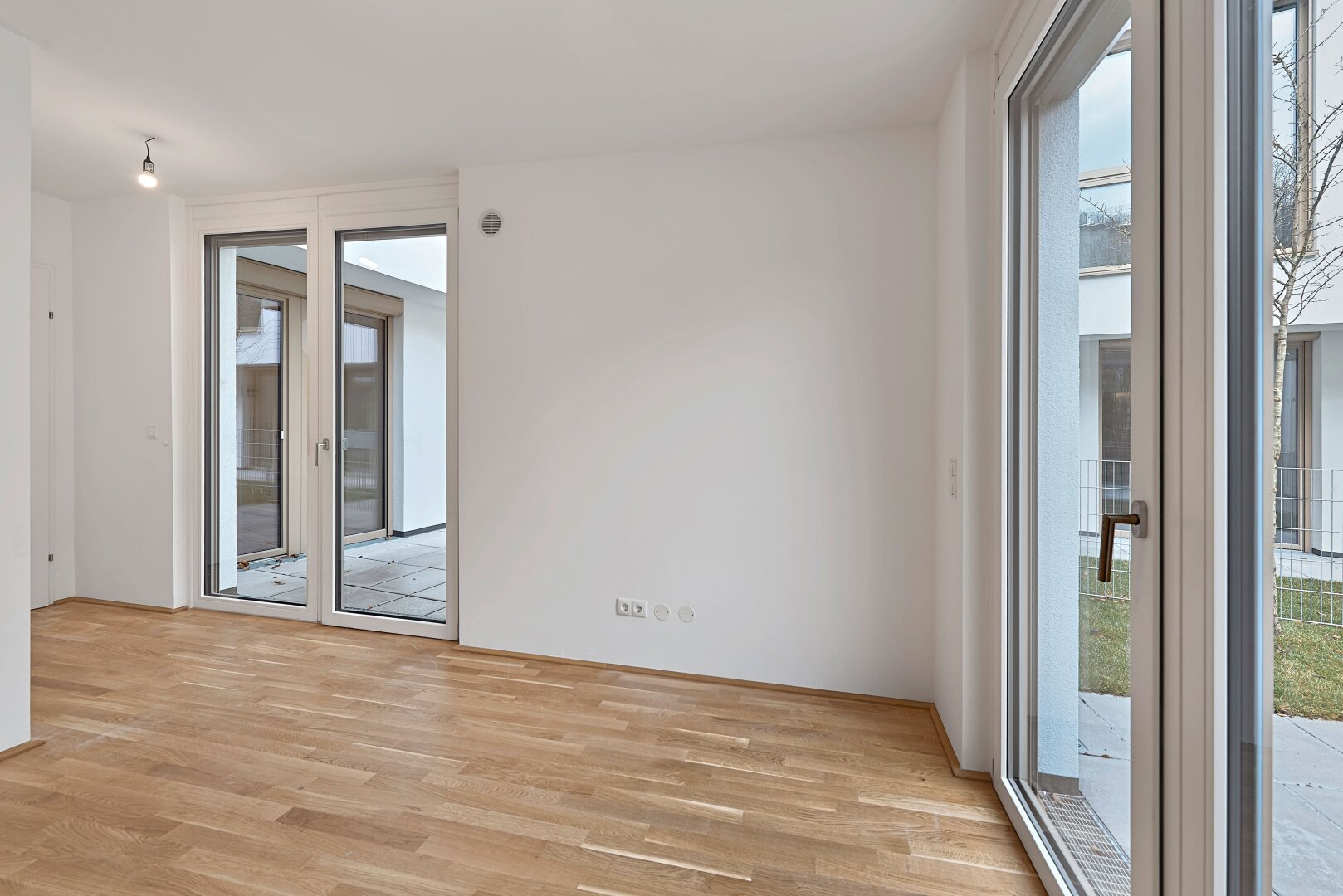 Die 4-Zimmer-Wohnung mit ca. 90 m² Wohnnutzfläche, zwei Gartenterrassen und einem Garten befindet sich im Erdgeschoss.