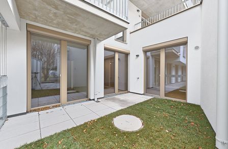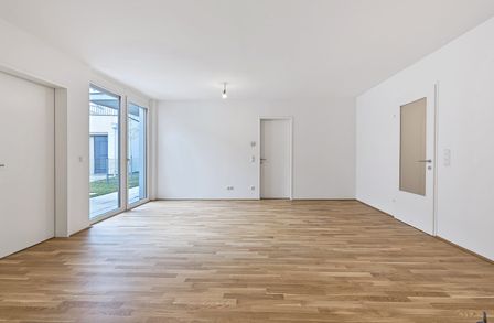 Die 3-Zimmer-Wohnung mit ca. 91 m² Wohnnutzfläche, einer Terrasse sowie einem Garten, befindet sich im Erdgeschoss.