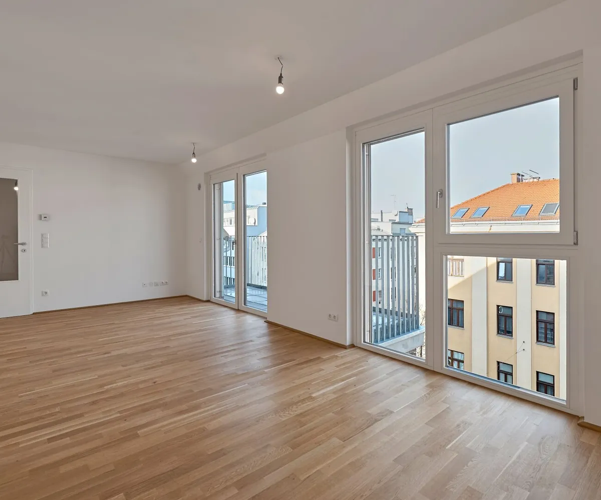 Trotz der großflächigen Fenster wirkt die Wohnung äußerst gemütlich und dank hochwertigsten Materialien, moderner Ausstattung und dem gut durchdachtem Grundriss wird Ihnen das Einrichten besonders viel Freude bereiten.