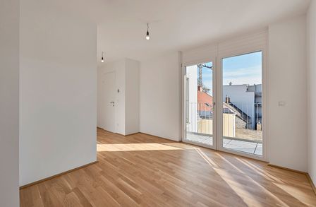 Die 3-Zimmer-Wohnung mit ca. 81 m² Wohnnutzfläche sowie einer großzügigen Terrasse und einer Loggia befindet sich im 4. Obergeschoss.
