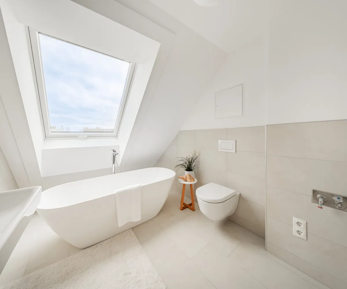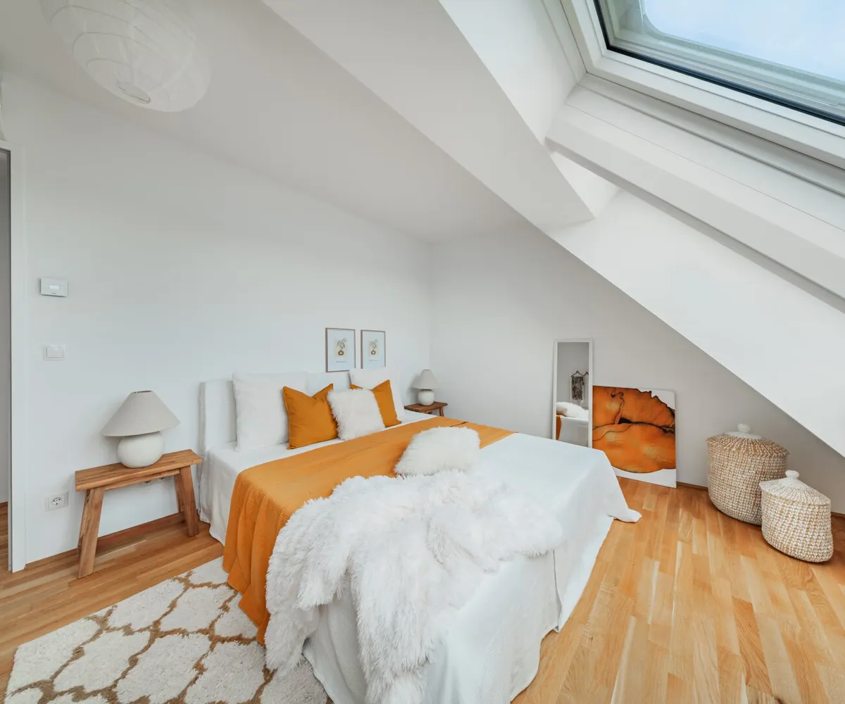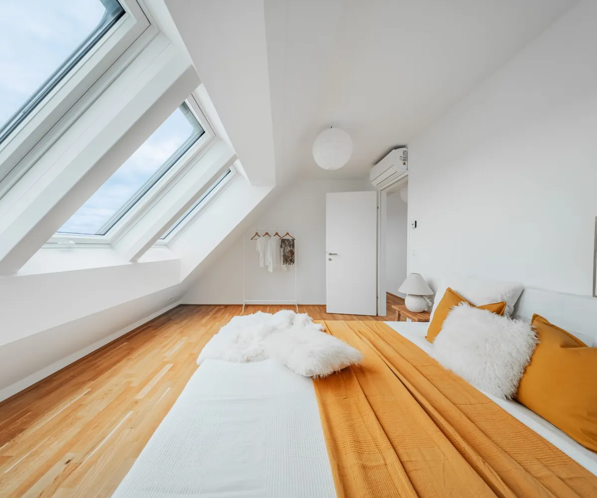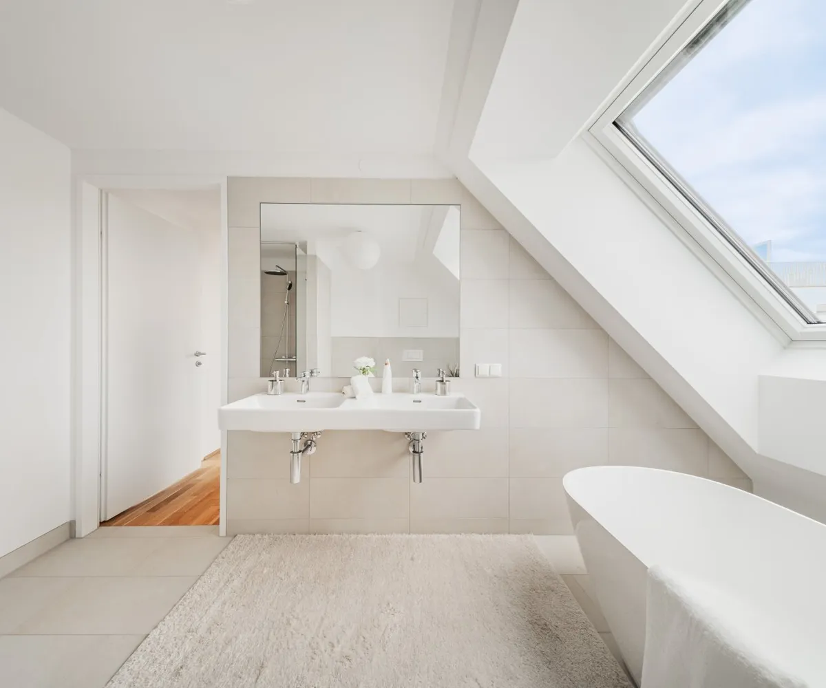 Die 2-Zimmer-Wohnung mit ca. 98 m² Wohnnutzfläche sowie einer Terrasse und einer privaten Dachterrasse befindet sich im 2. Dachgeschoss.