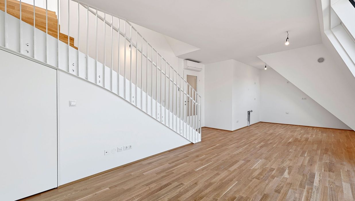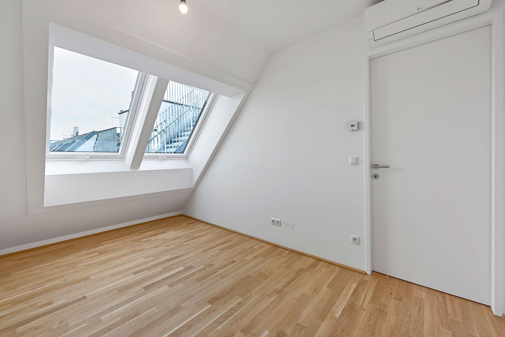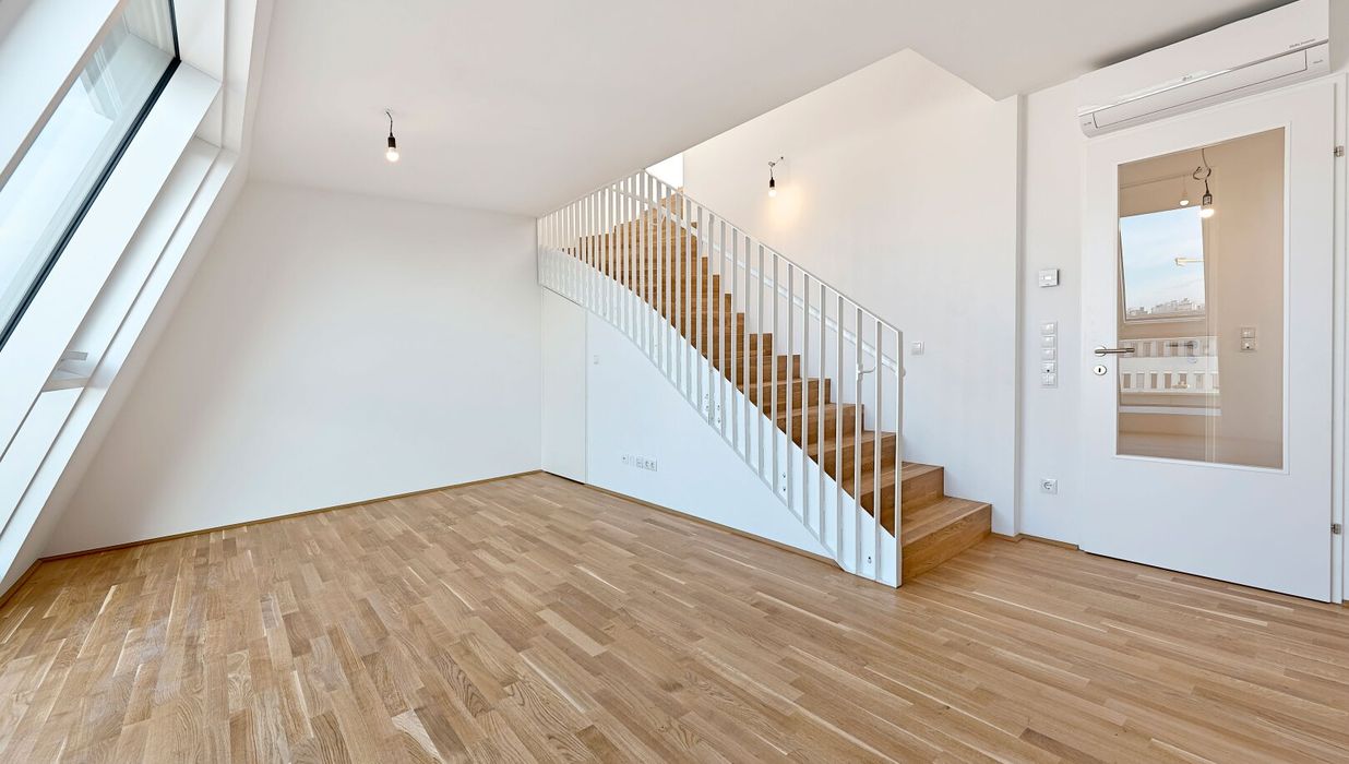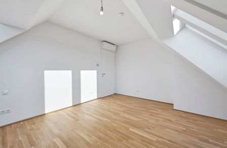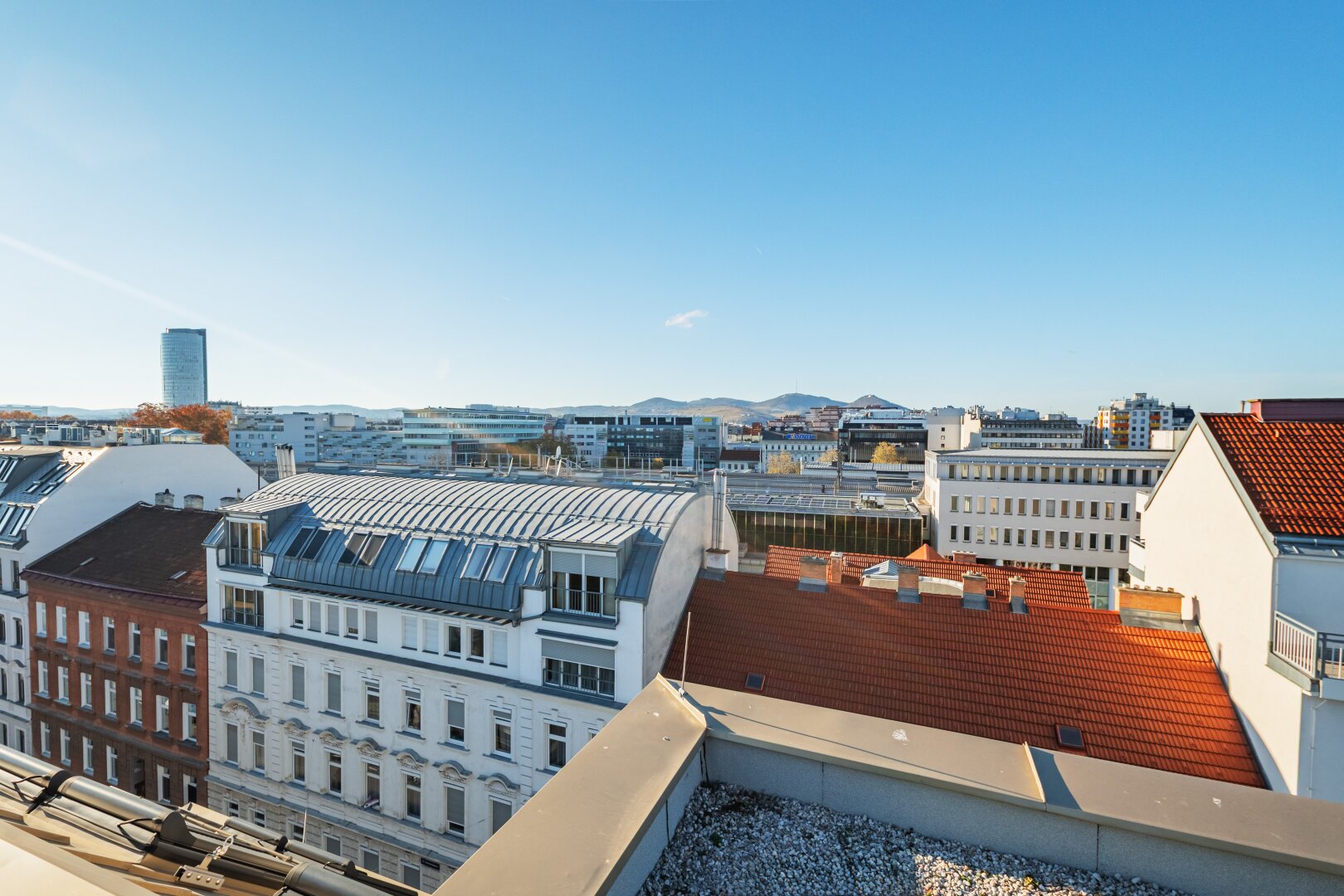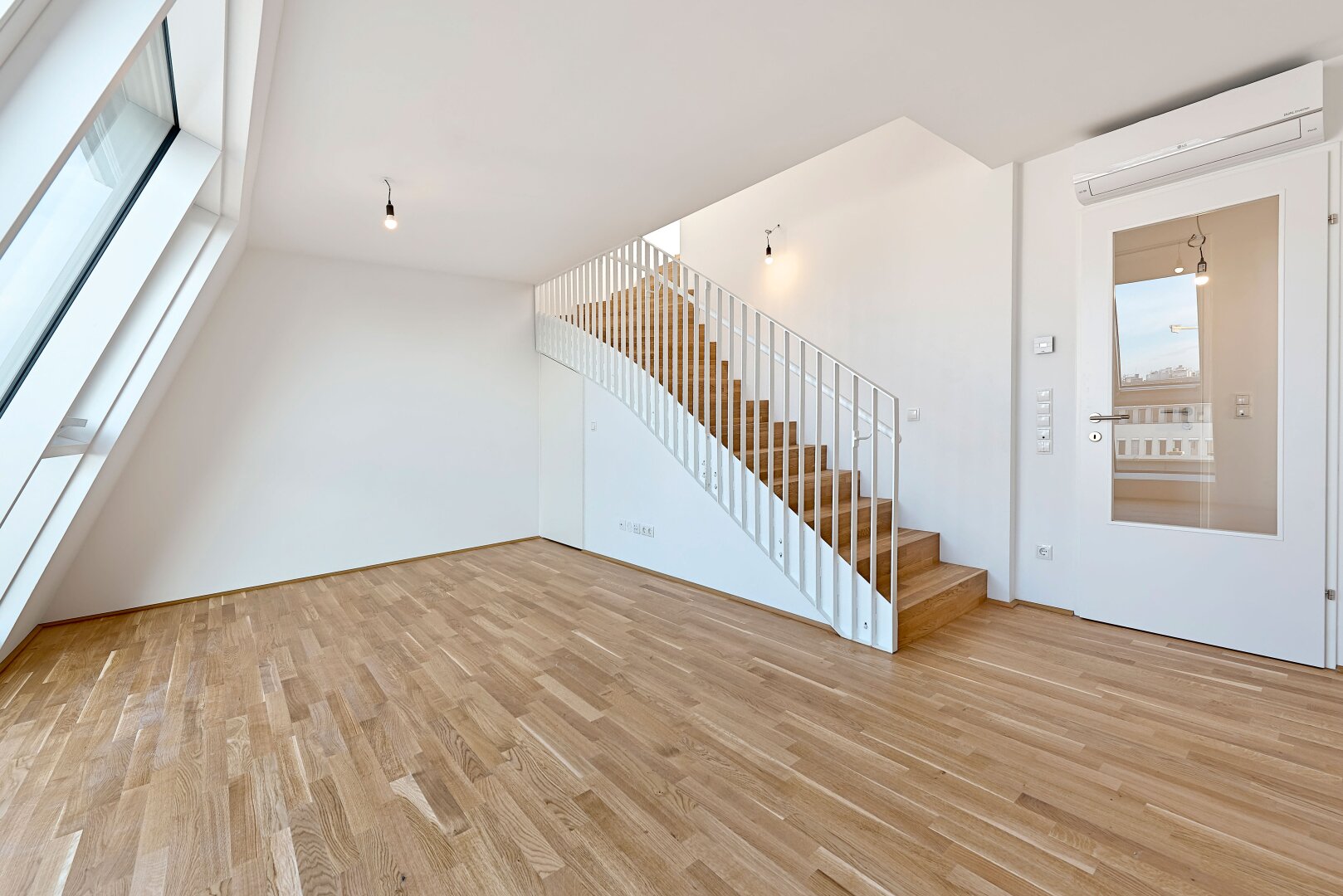 Die geräumige, zentral begehbare und klimatisierte 3-Zimmer-Wohnung mit ca. 86 m² Wohnnutzfläche sowie einer privaten Dachterrasse befindet sich im 2. Dachgeschoss in einer sehr verkehrsberuhigten Lage, unweit vom Spitz entfernt. Großflächige Dachfenster erhellen die Räume mit viel natürlichem Licht.