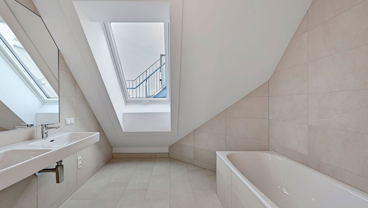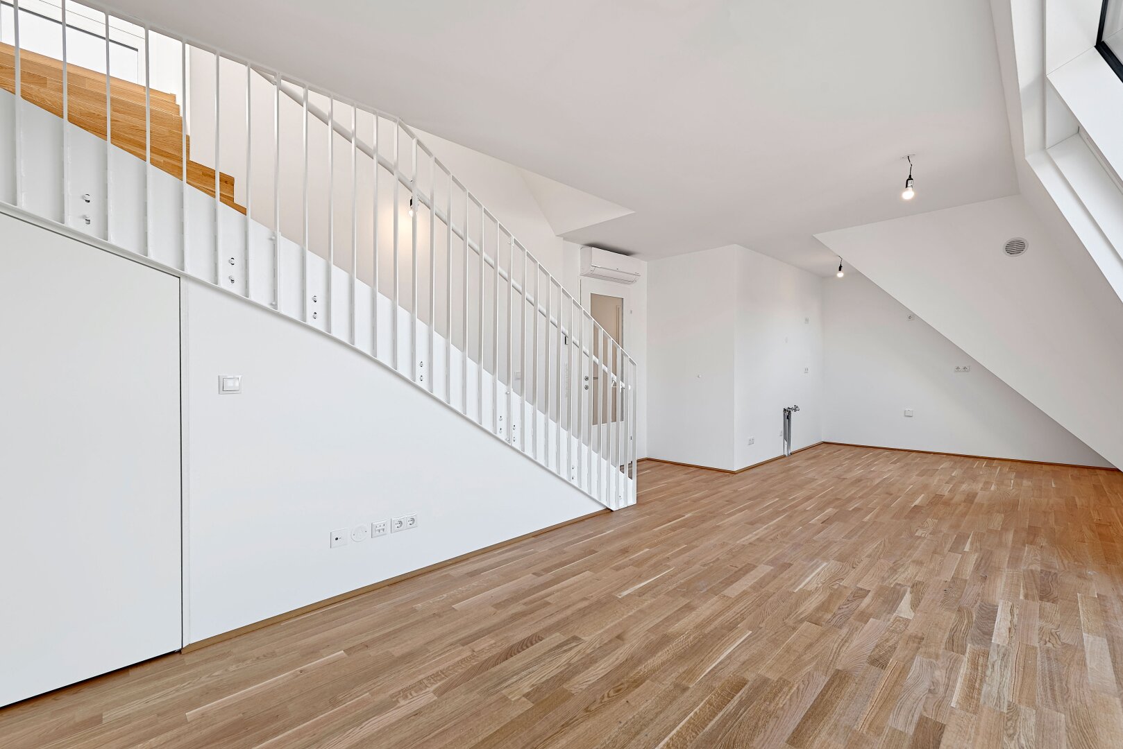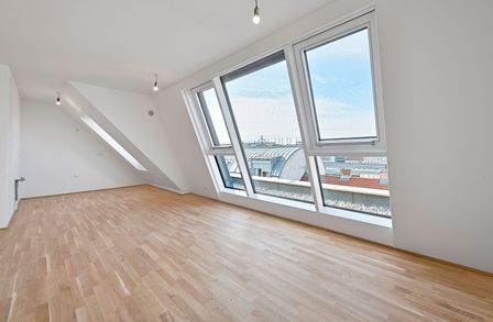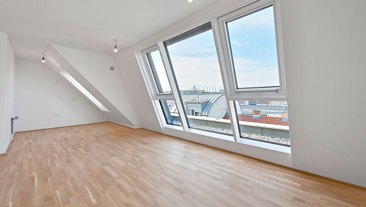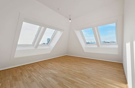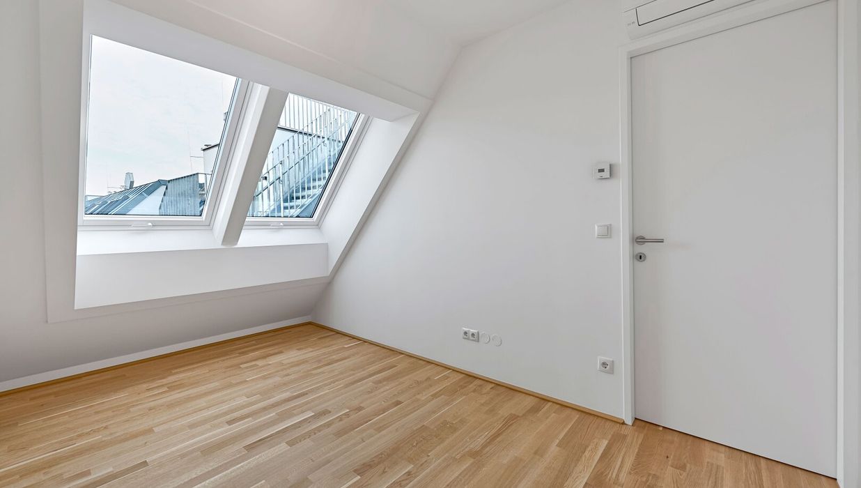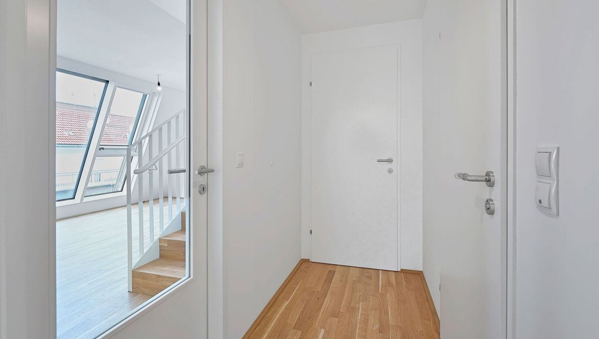 Die geräumige, zentral begehbare und klimatisierte 3-Zimmer-Wohnung mit ca. 86 m² Wohnnutzfläche sowie einer privaten Dachterrasse befindet sich im 2. Dachgeschoss in einer sehr verkehrsberuhigten Lage, unweit vom Spitz entfernt. Großflächige Dachfenster erhellen die Räume mit viel natürlichem Licht.