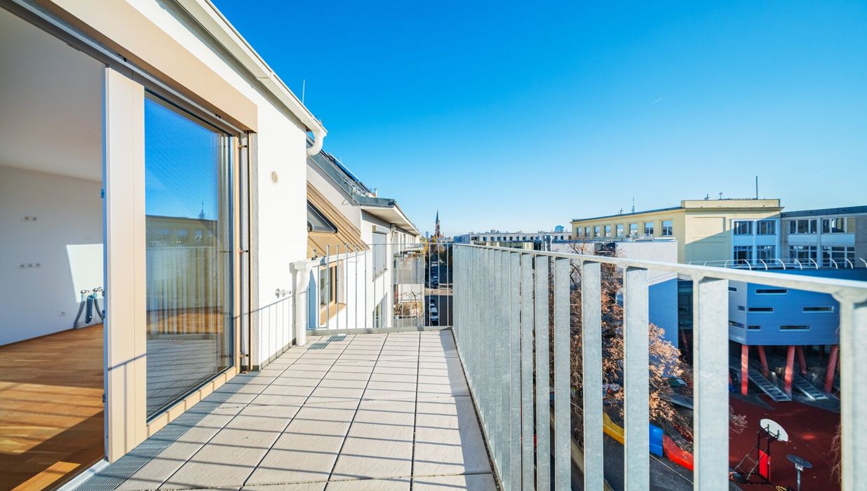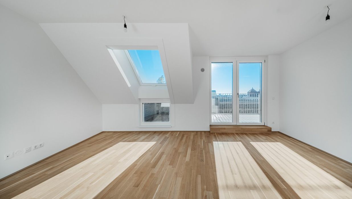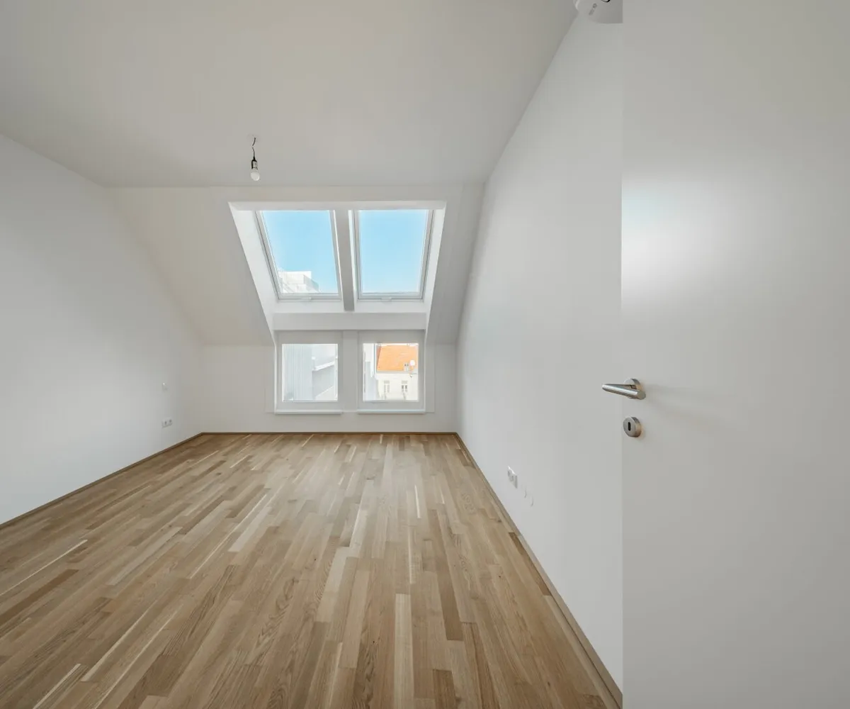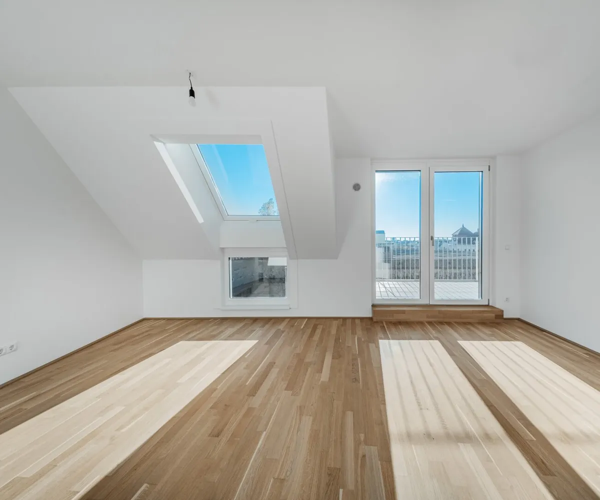 Die geräumige, zentral begehbare 3-Zimmer-Wohnung mit ca. 65 m² Wohnnutzfläche sowie einem Balkon mit Weitblick befindet sich im 1. Dachgeschoss in einer sehr verkehrsberuhigten Lage, unweit vom Spitz entfernt. Großflächige Dachfenster erhellen die Räume mit viel natürlichem Licht.
