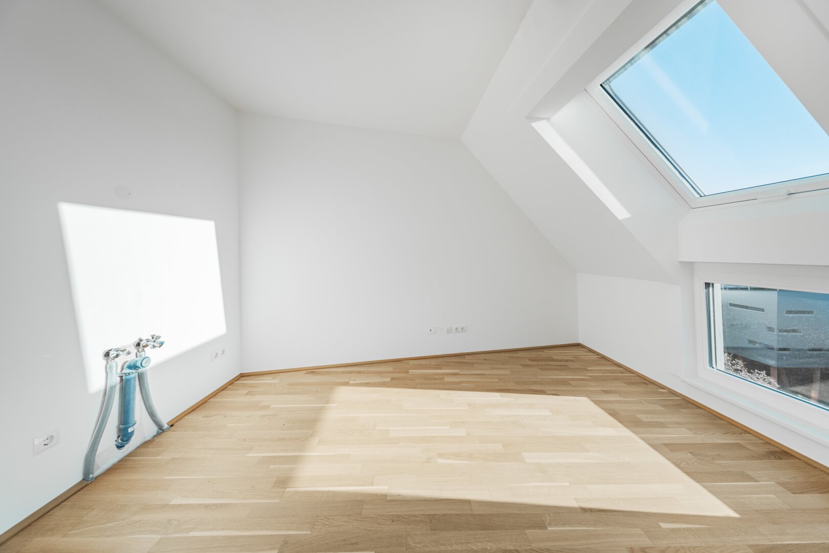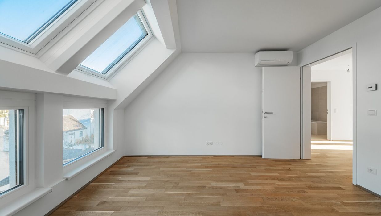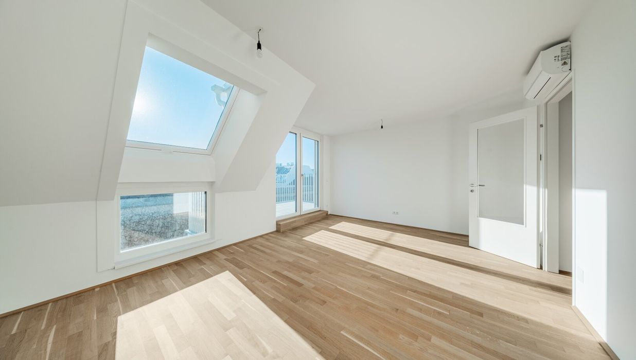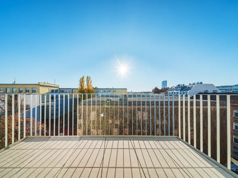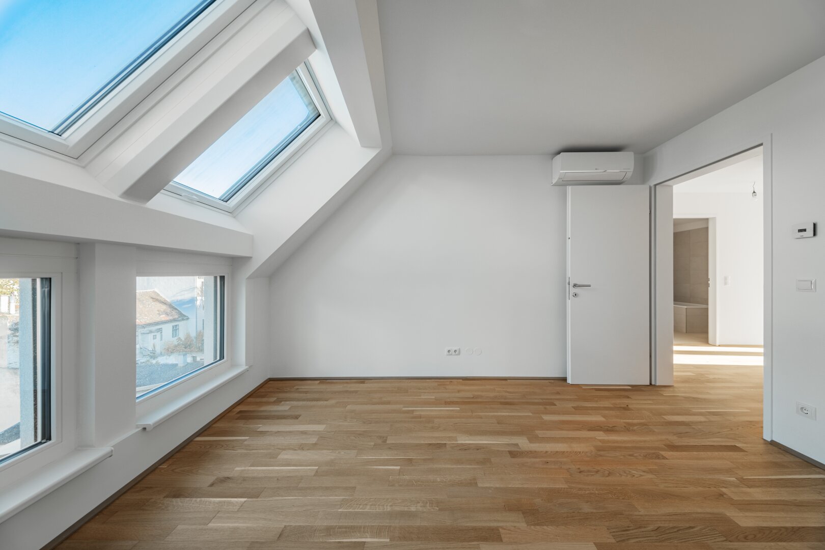 Die geräumige, zentral begehbare 3-Zimmer-Wohnung mit ca. 65 m² Wohnnutzfläche sowie einem Balkon mit Weitblick befindet sich im 1. Dachgeschoss in einer sehr verkehrsberuhigten Lage, unweit vom Spitz entfernt. Großflächige Dachfenster erhellen die Räume mit viel natürlichem Licht.