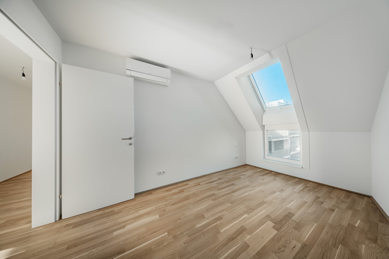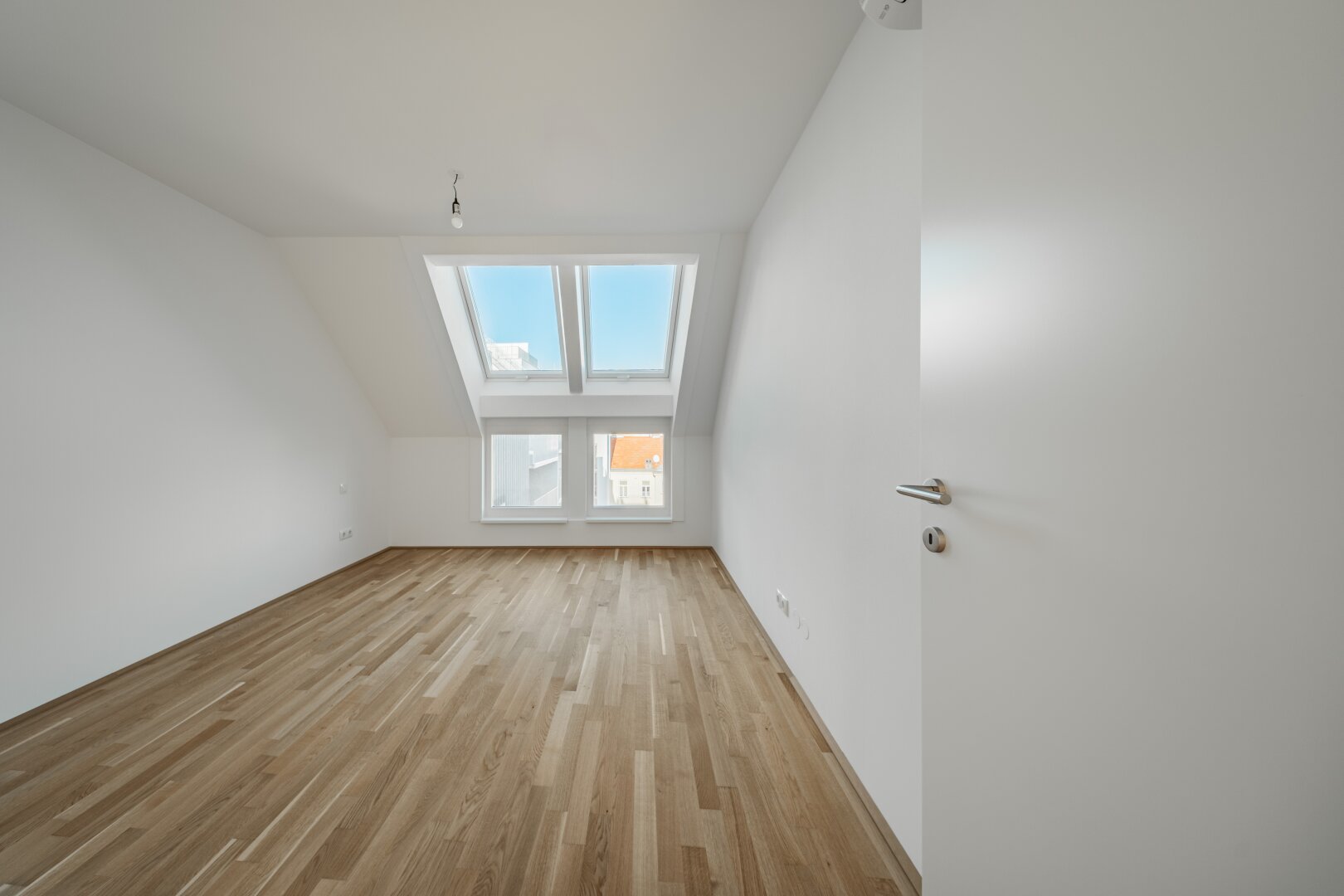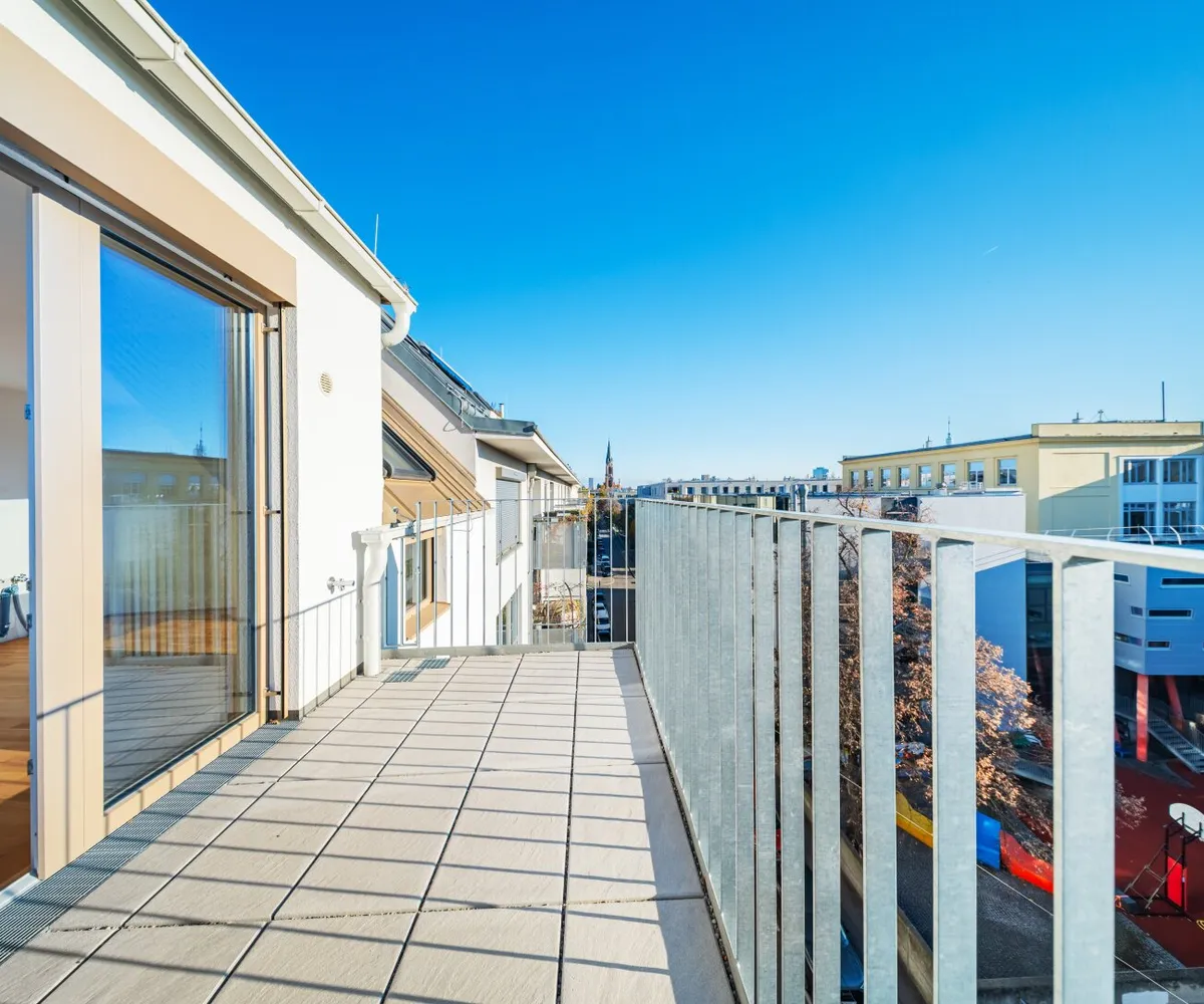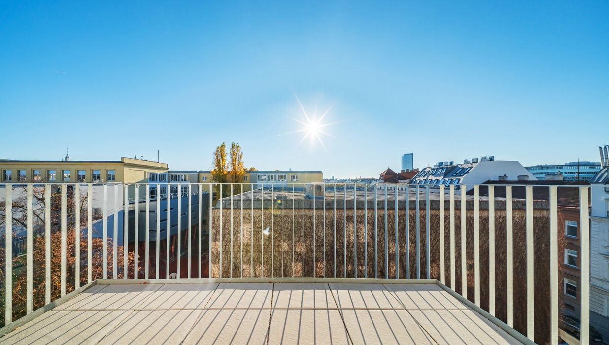 Die geräumige, zentral begehbare 3-Zimmer-Wohnung mit ca. 65 m² Wohnnutzfläche sowie einem Balkon mit Weitblick befindet sich im 1. Dachgeschoss in einer sehr verkehrsberuhigten Lage, unweit vom Spitz entfernt. Großflächige Dachfenster erhellen die Räume mit viel natürlichem Licht.