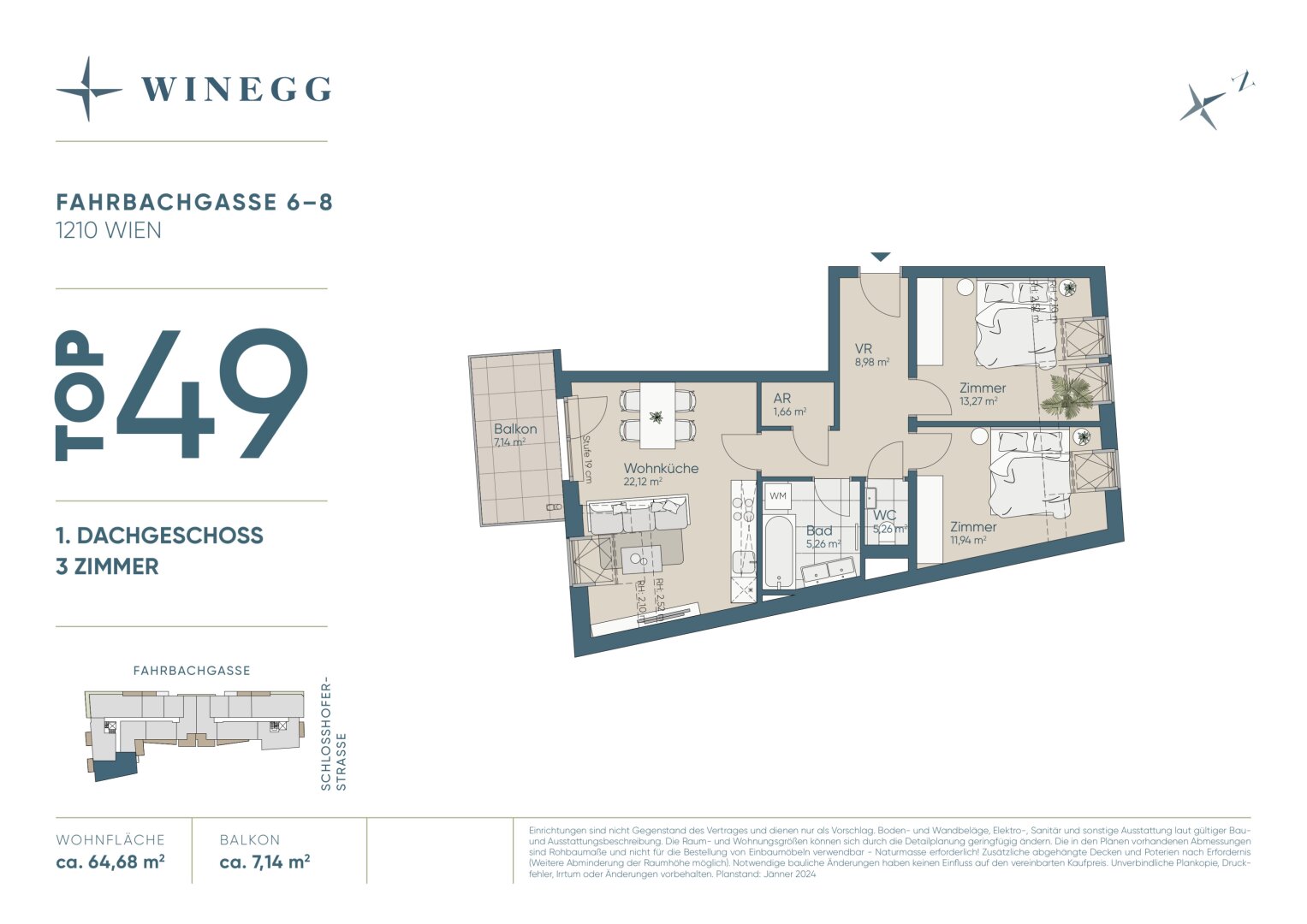 Dieses Objekt wird Ihnen unverbindlich und freibleibend zum Kauf angeboten. Oben angeführte Angaben basieren auf Informationen und Unterlagen des Eigentümers und sind unsererseits ohne Gewähr. Als Vermittlungshonorar gelten die allgemeinen Geschäftsbedingungen und die Verordnung für Immobilienmakler des BM für Handel, Gewerbe und Industrie, BGBL. 297/1996. Für den Fall, dass es diesbezüglich zu einem entsprechenden Rechtsgeschäft kommt, verrechnen wir Ihnen eine Vermittlungsprovision von 3 Prozent der Kaufsumme zuzüglich der gesetzlichen Mehrwertsteuer. Wir möchten noch darauf hinweisen, dass wir in einem wirtschaftlichen Naheverhältnis zur Verkäuferin stehen.