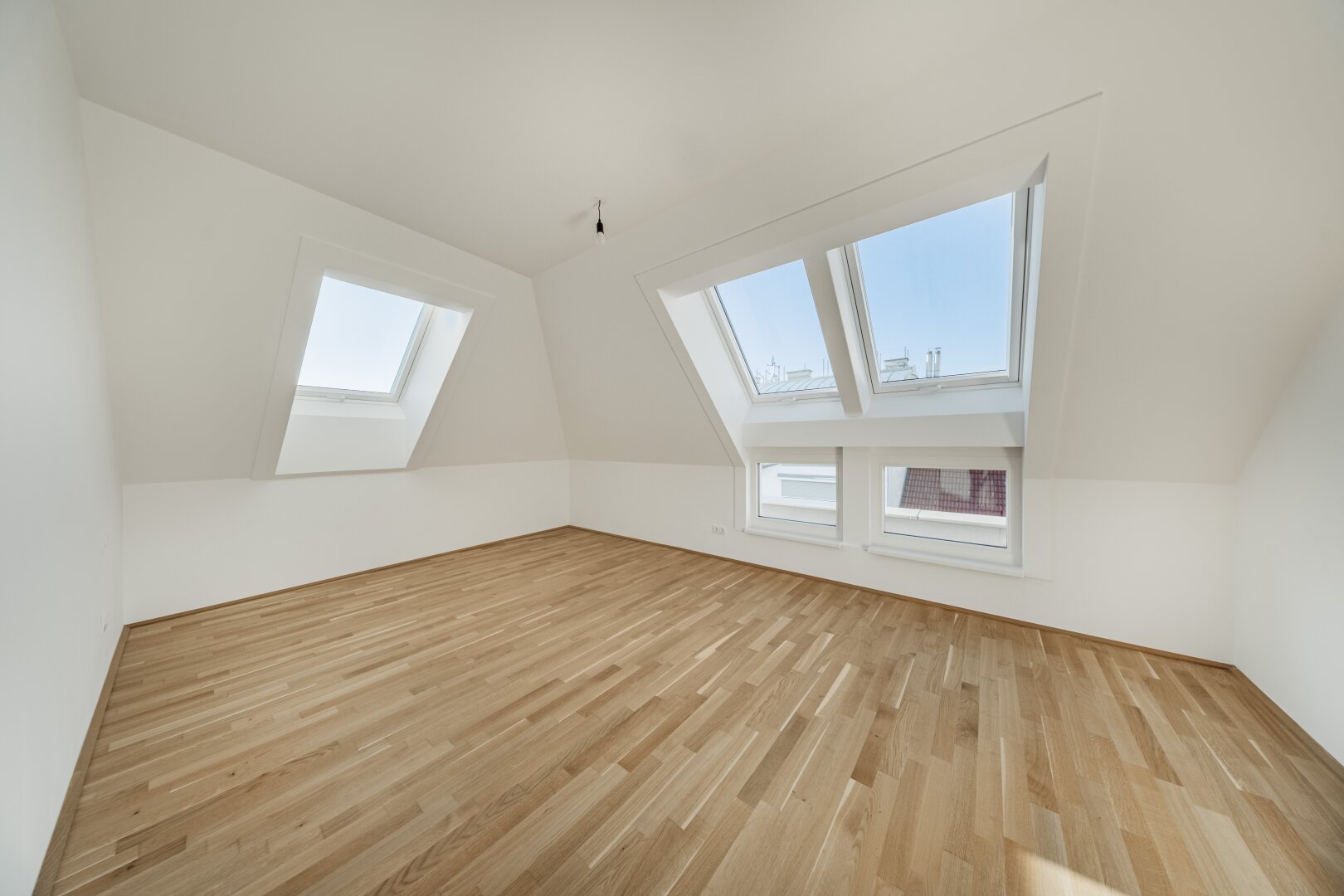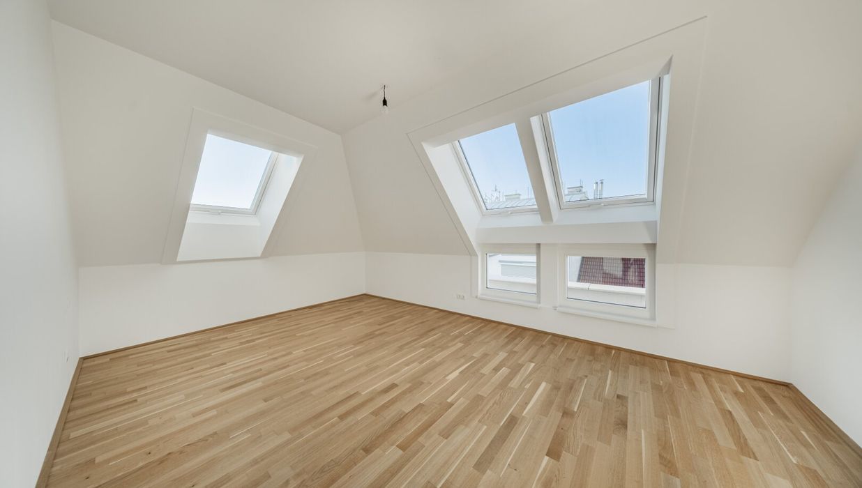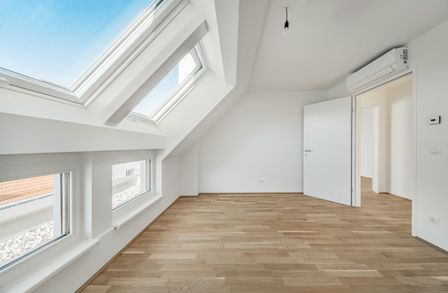 Die geräumige, zentral begehbare 3-Zimmer-Wohnung mit ca. 85 m² Wohnnutzfläche sowie einem Balkon mit Weitblick befindet sich im 1. Dachgeschoss in einer sehr verkehrsberuhigten Lage, unweit vom Spitz entfernt. Großflächige Dachfenster erhellen die Räume mit viel natürlichem Licht.