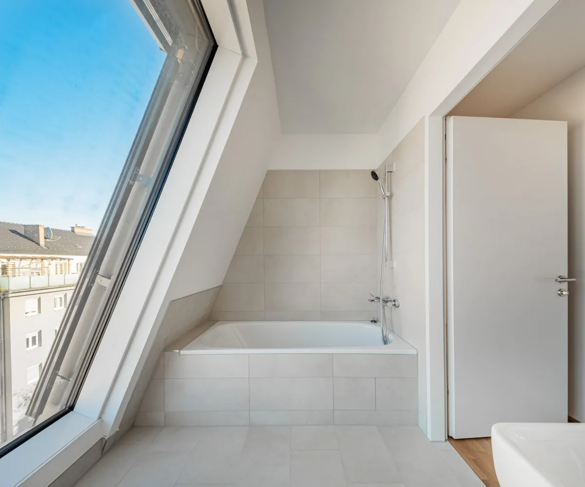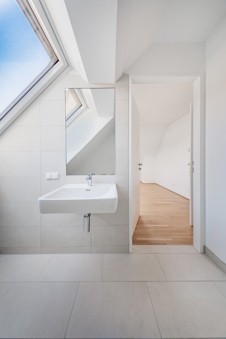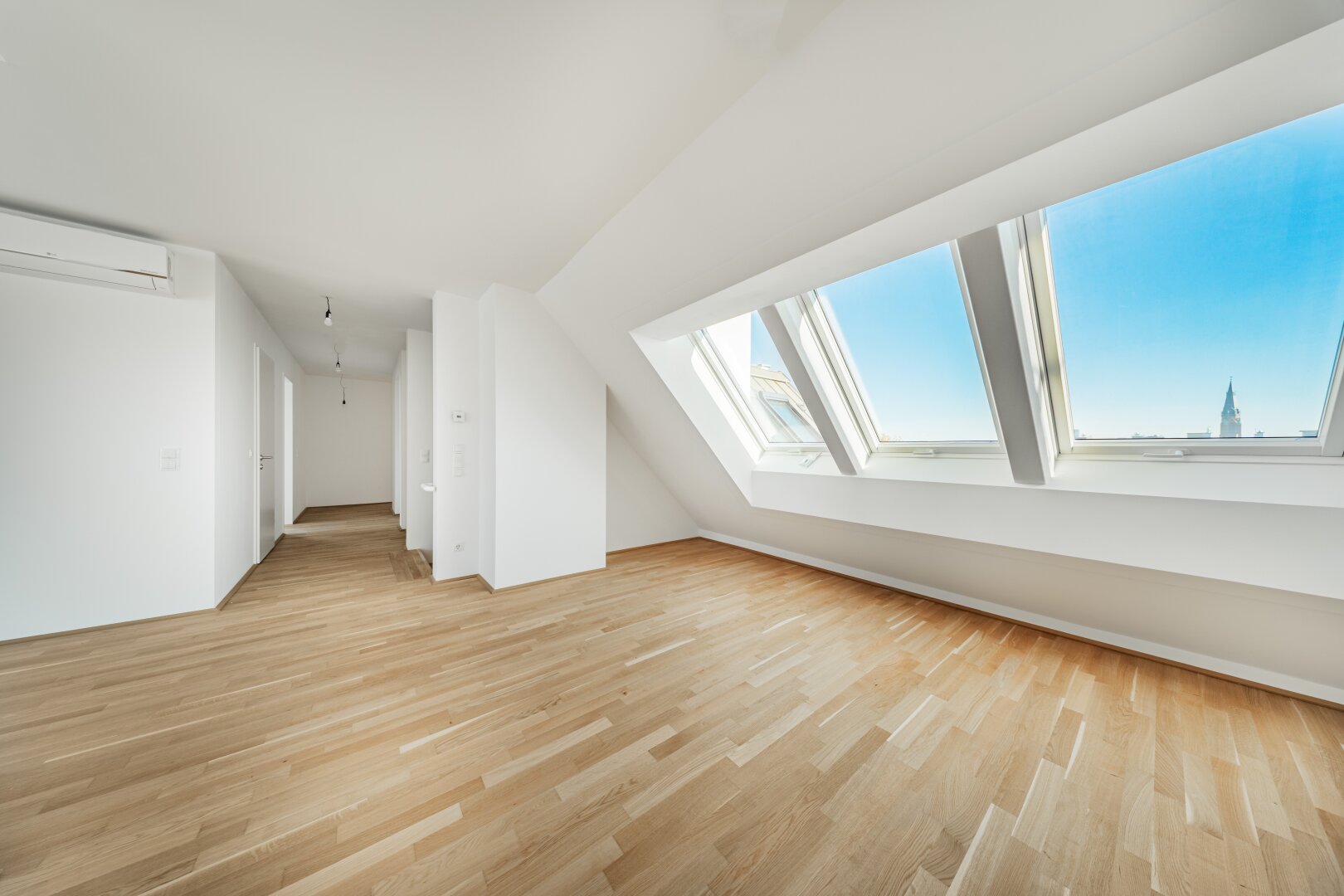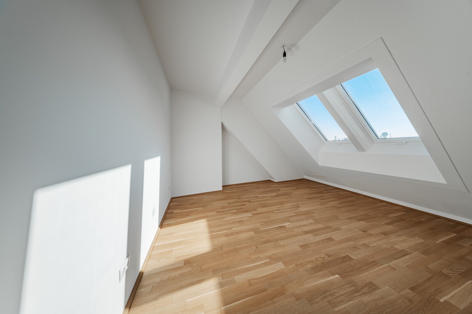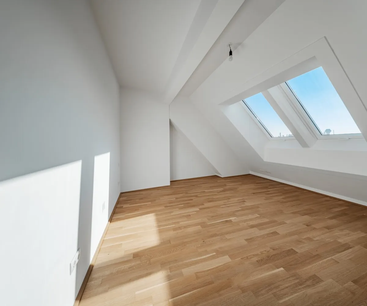 Großflächige Dachfenster erhellen die Räume mit viel natürlichem Licht.