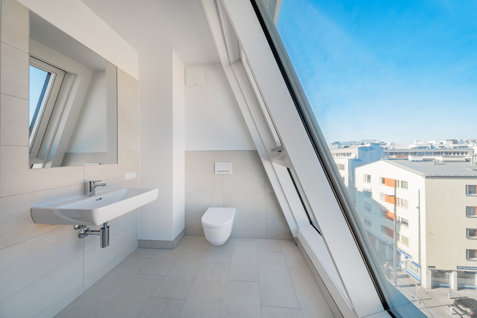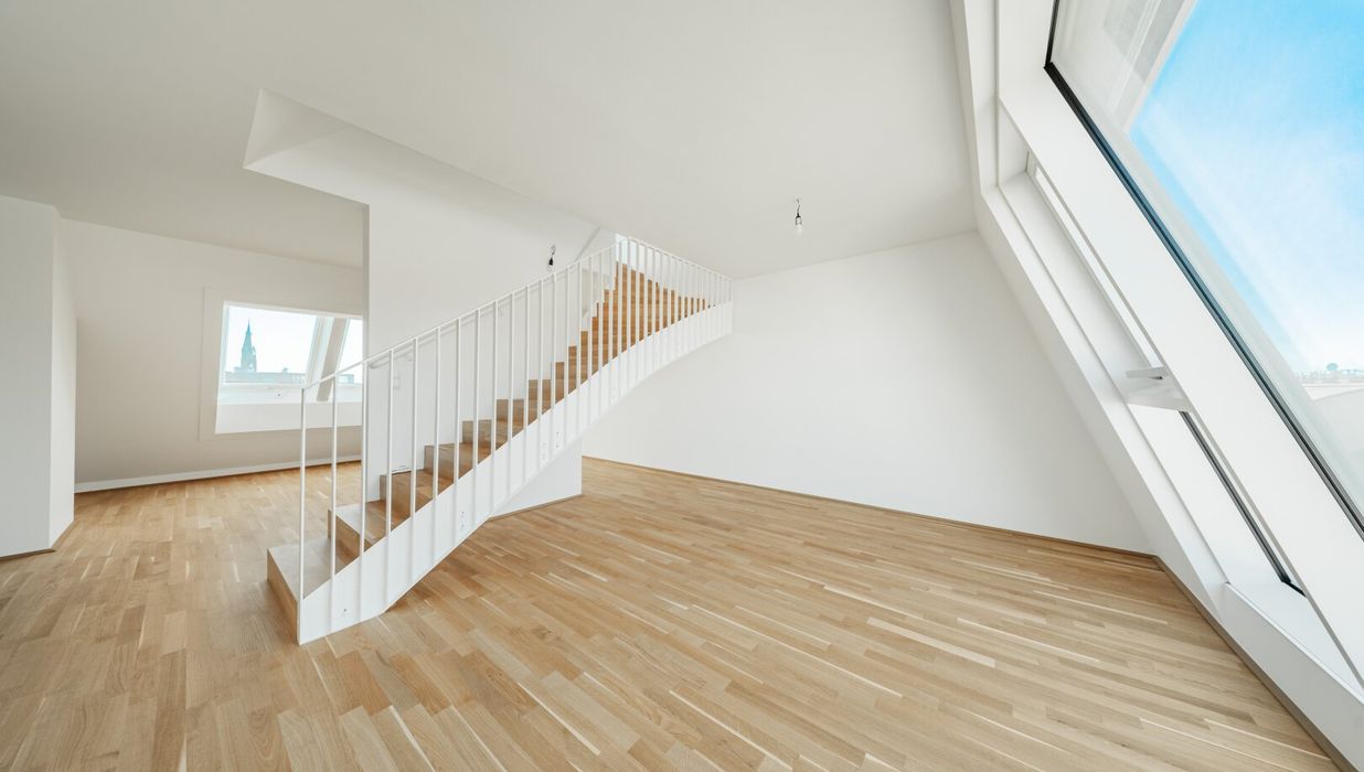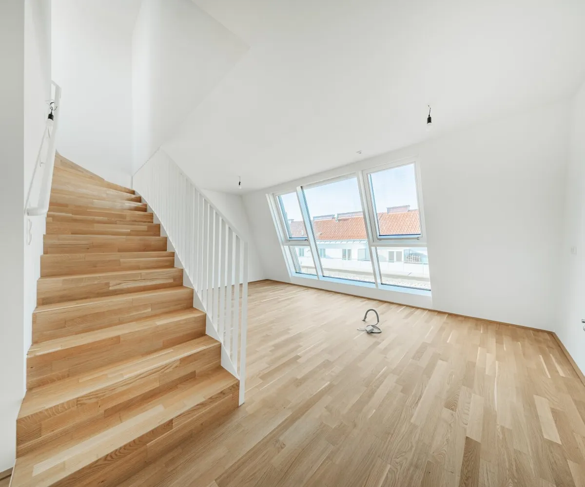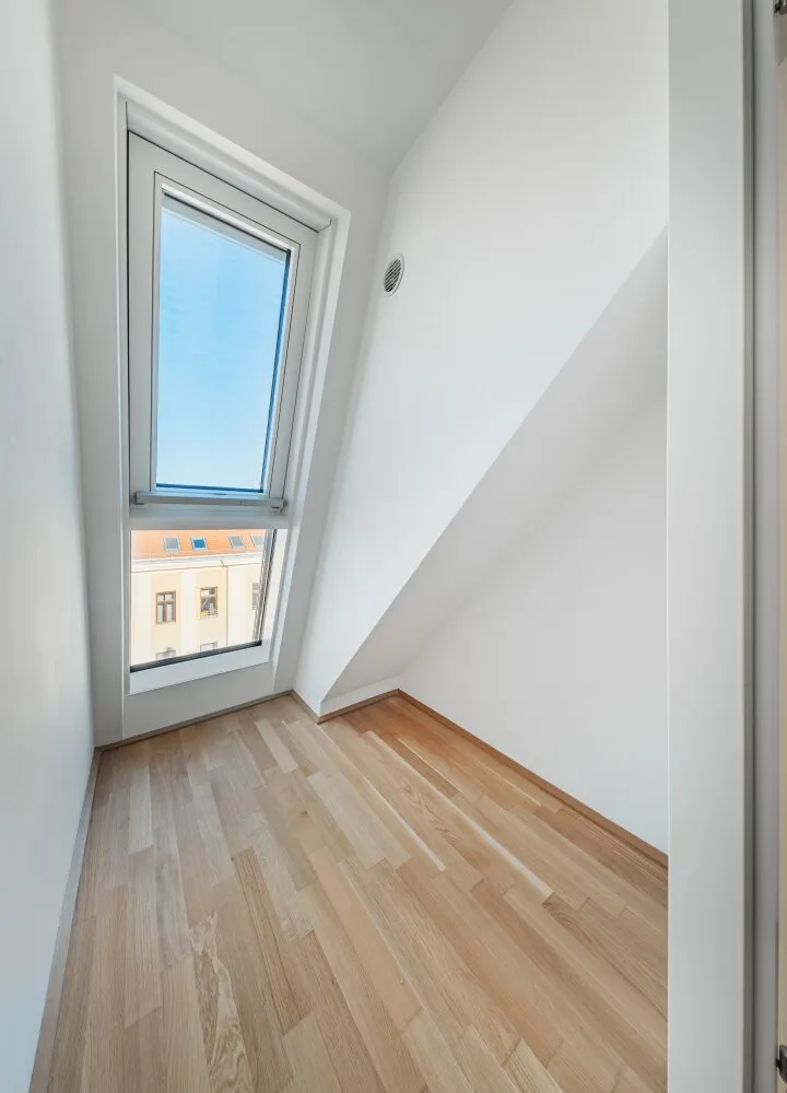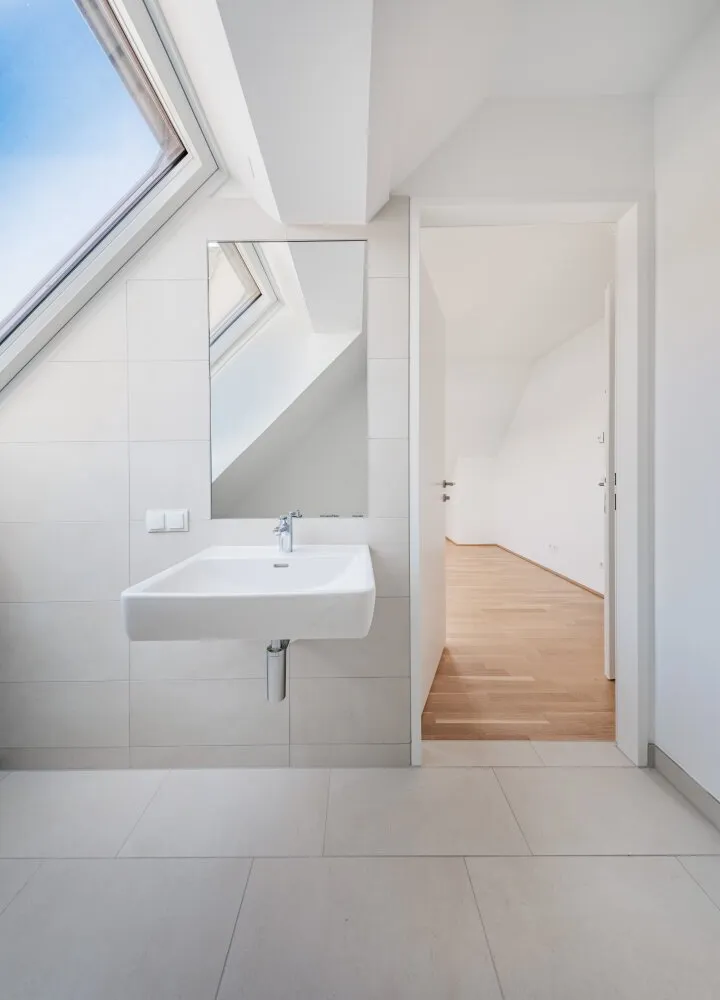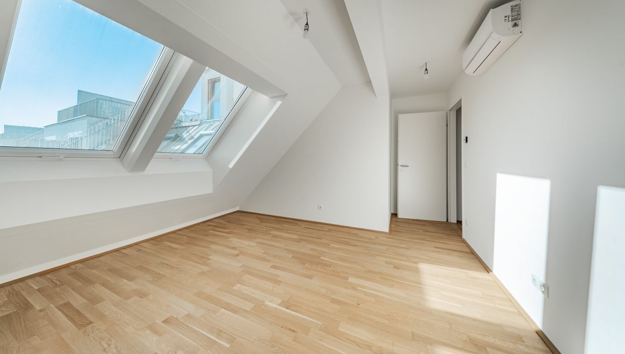 Großflächige Dachfenster erhellen die Räume mit viel natürlichem Licht.