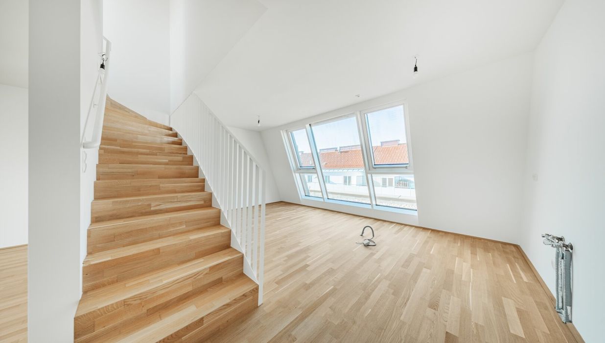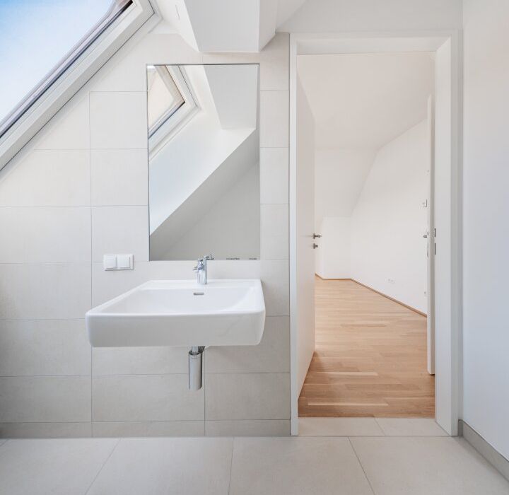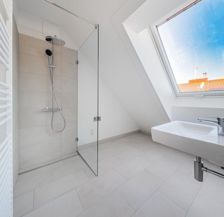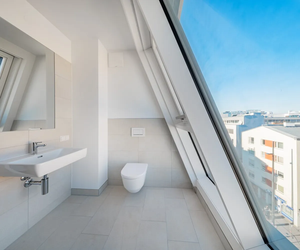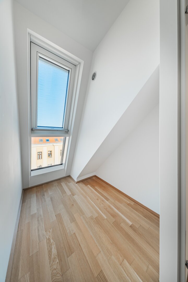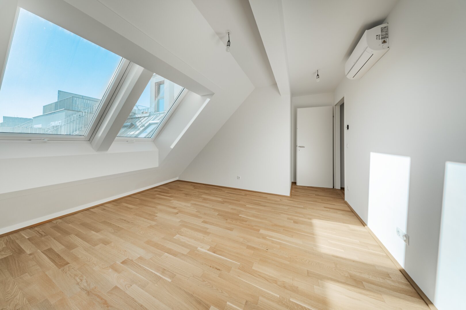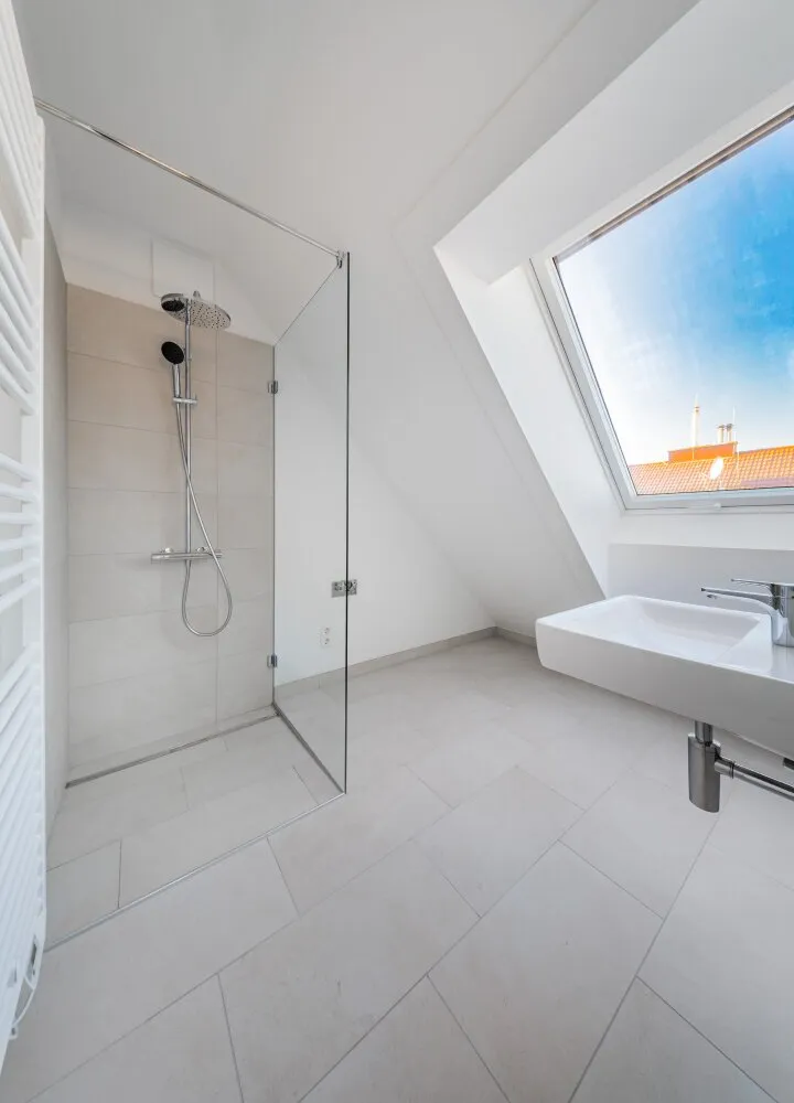 Großflächige Dachfenster erhellen die Räume mit viel natürlichem Licht.