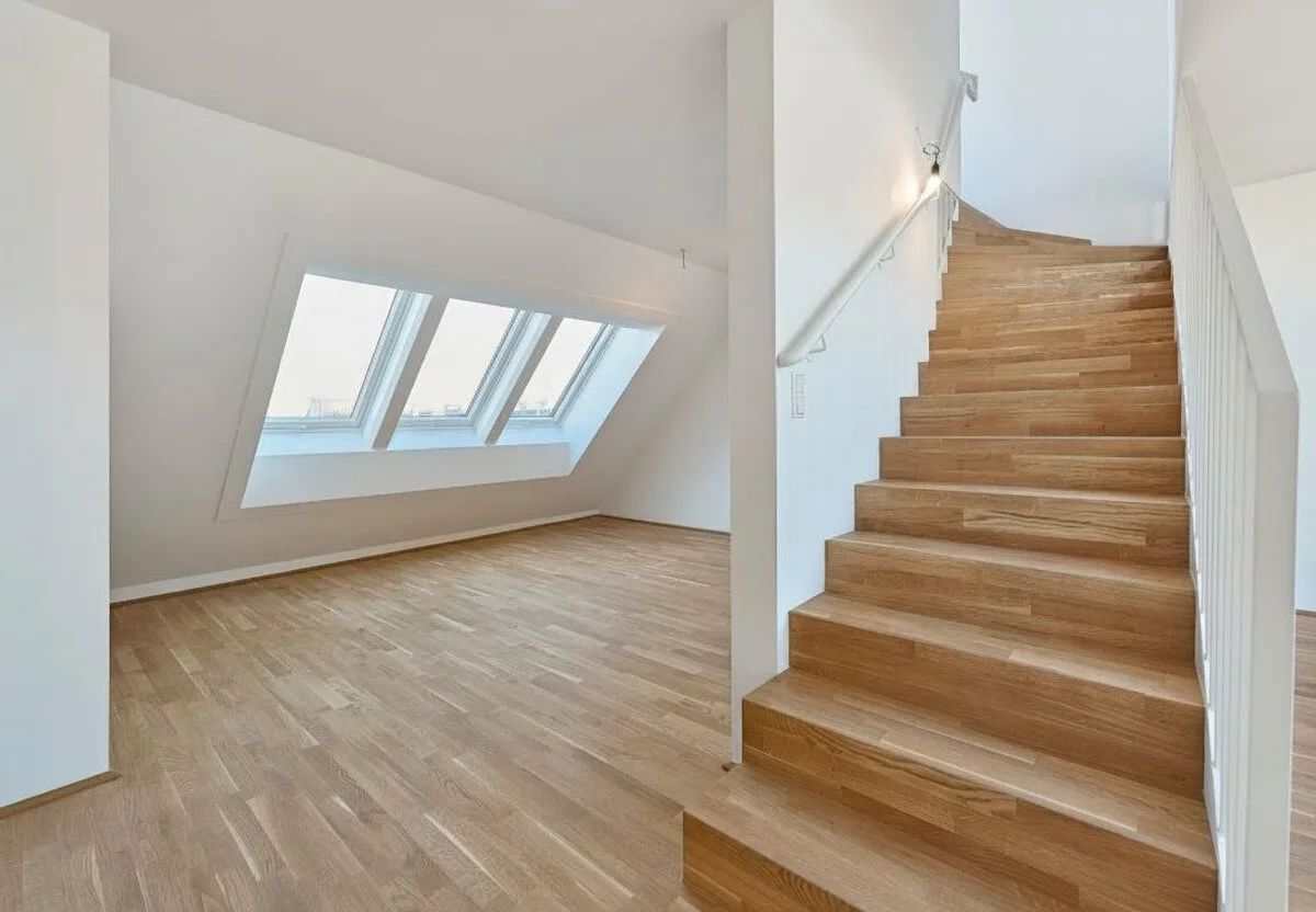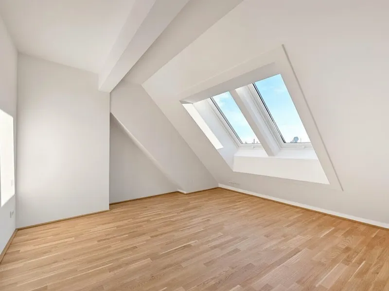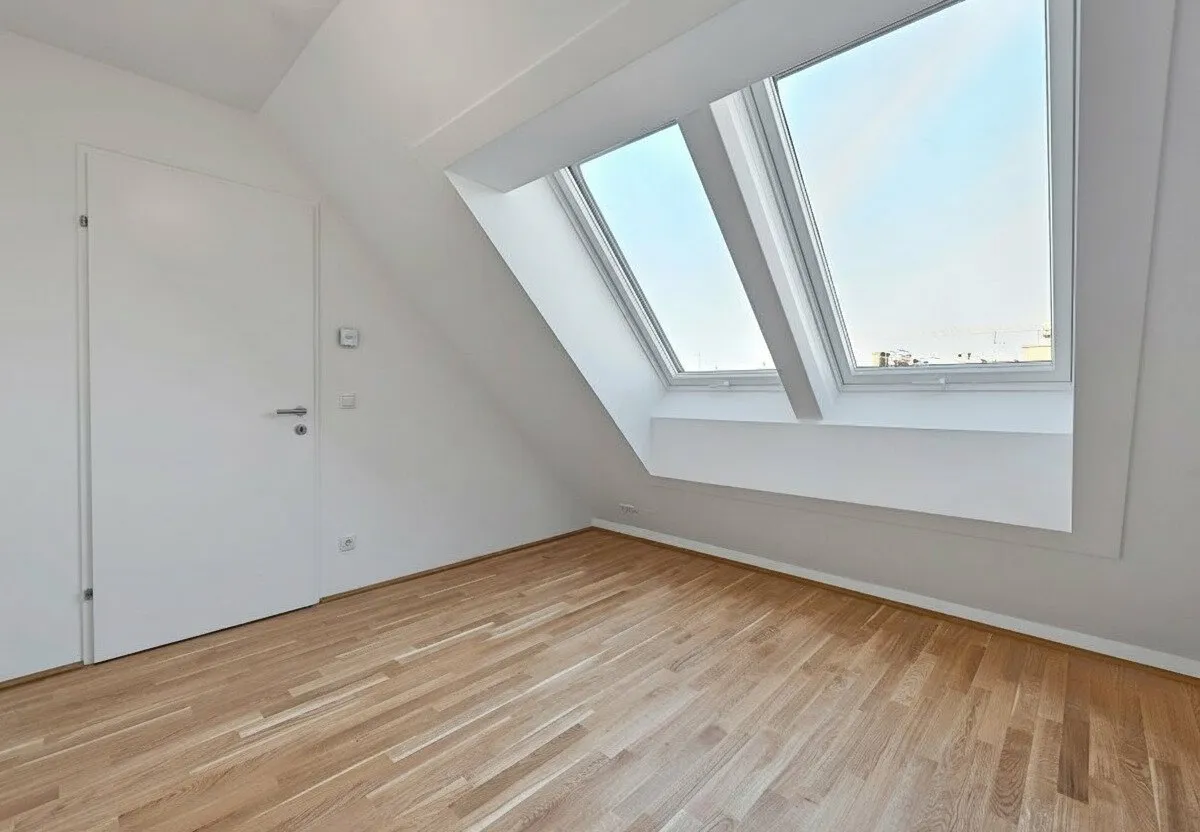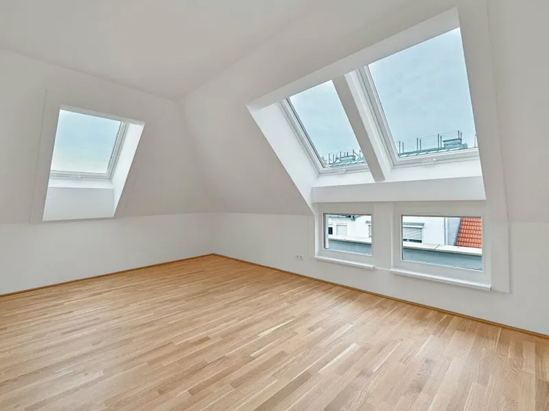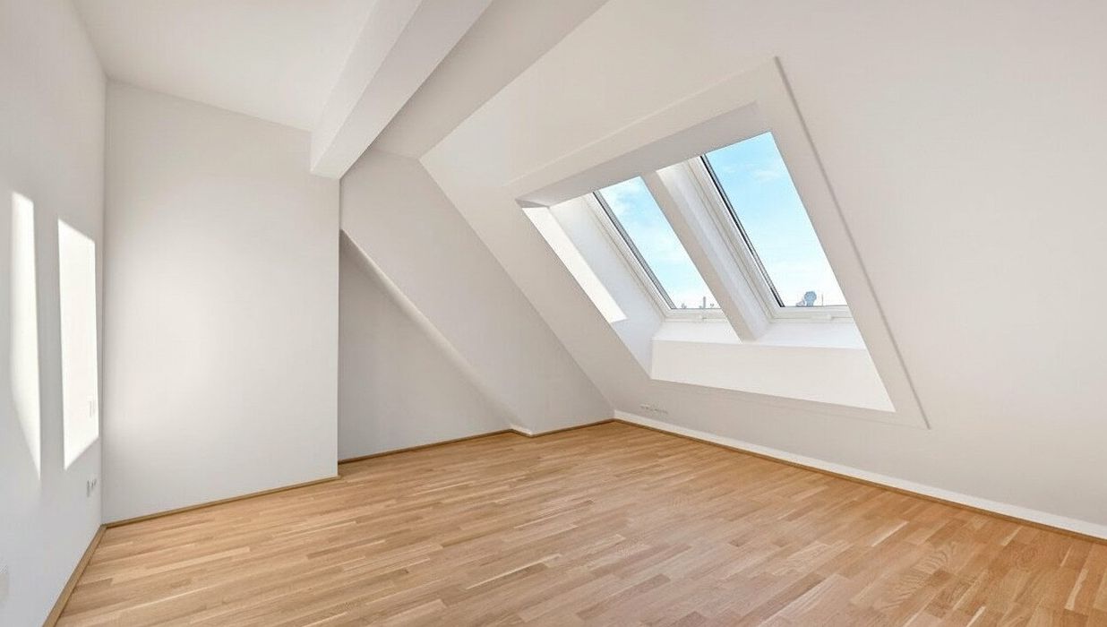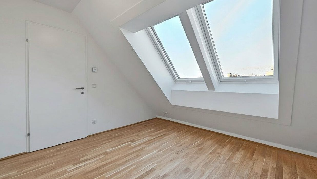 Großflächige Dachfenster erhellen die Räume mit viel natürlichem Licht.