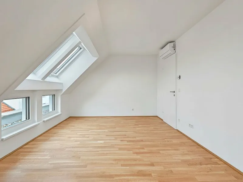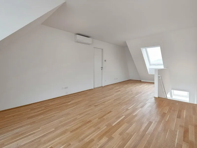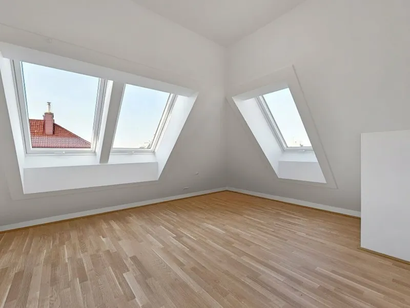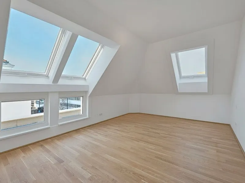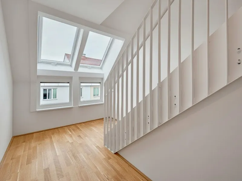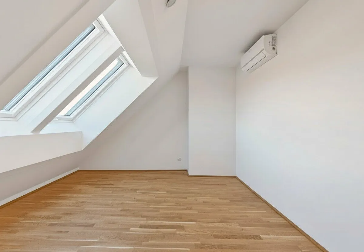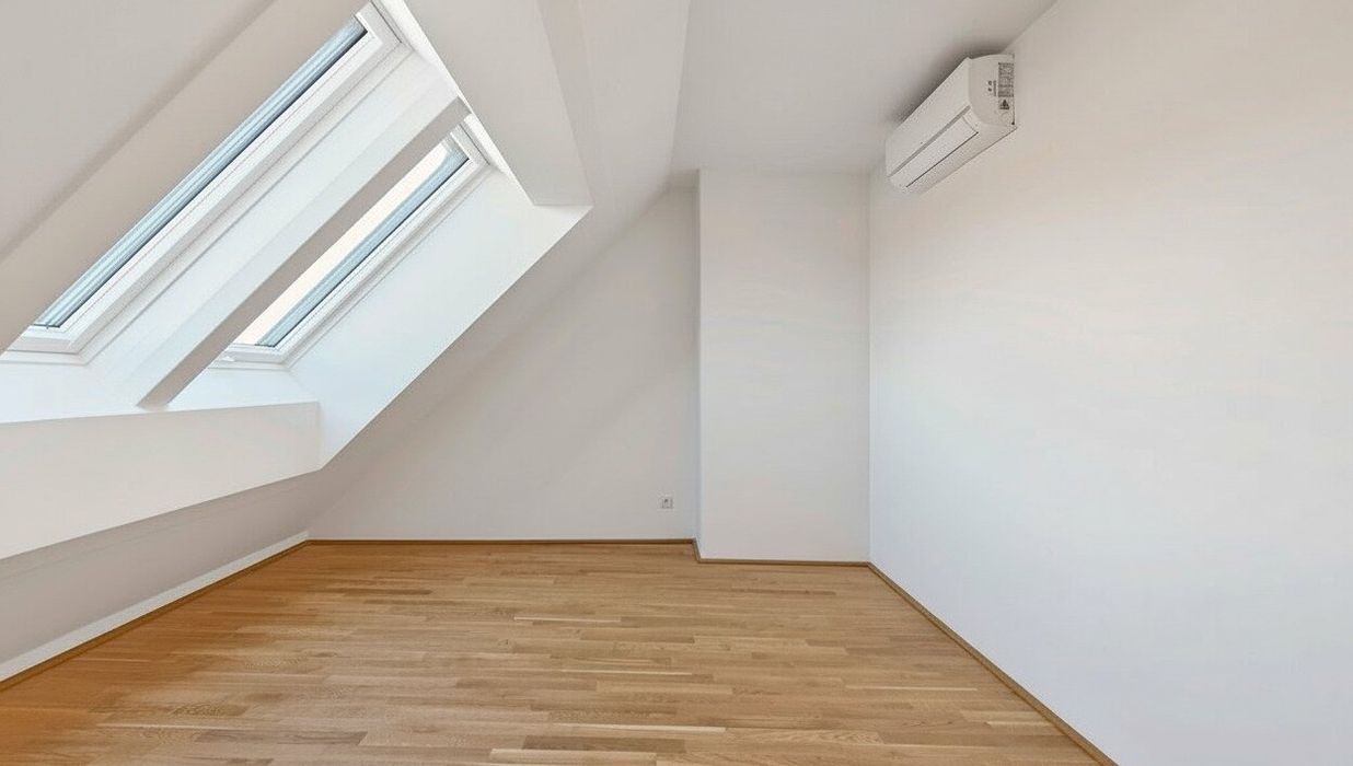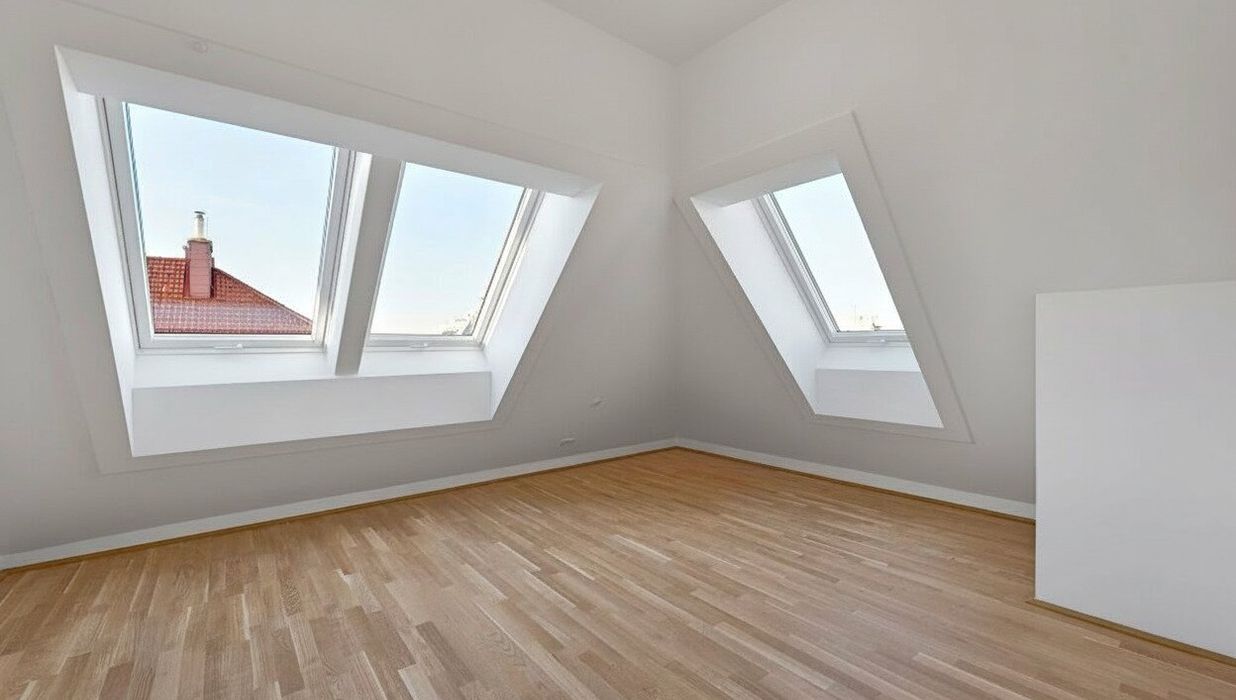 Großflächige Dachfenster erhellen die Räume mit viel natürlichem Licht.