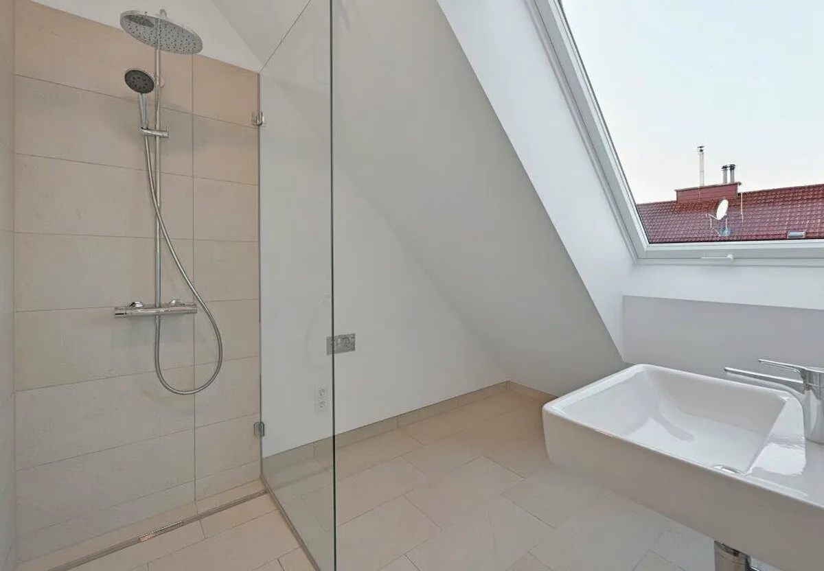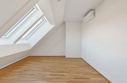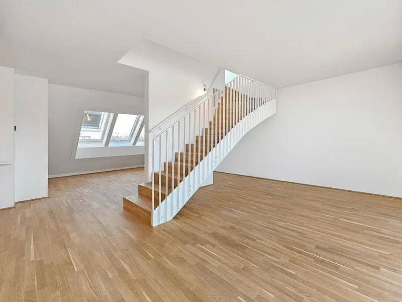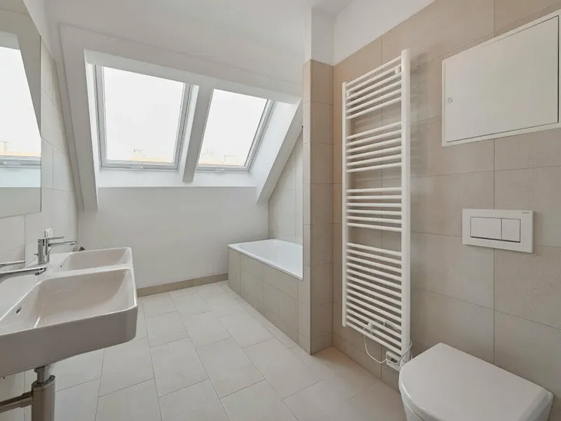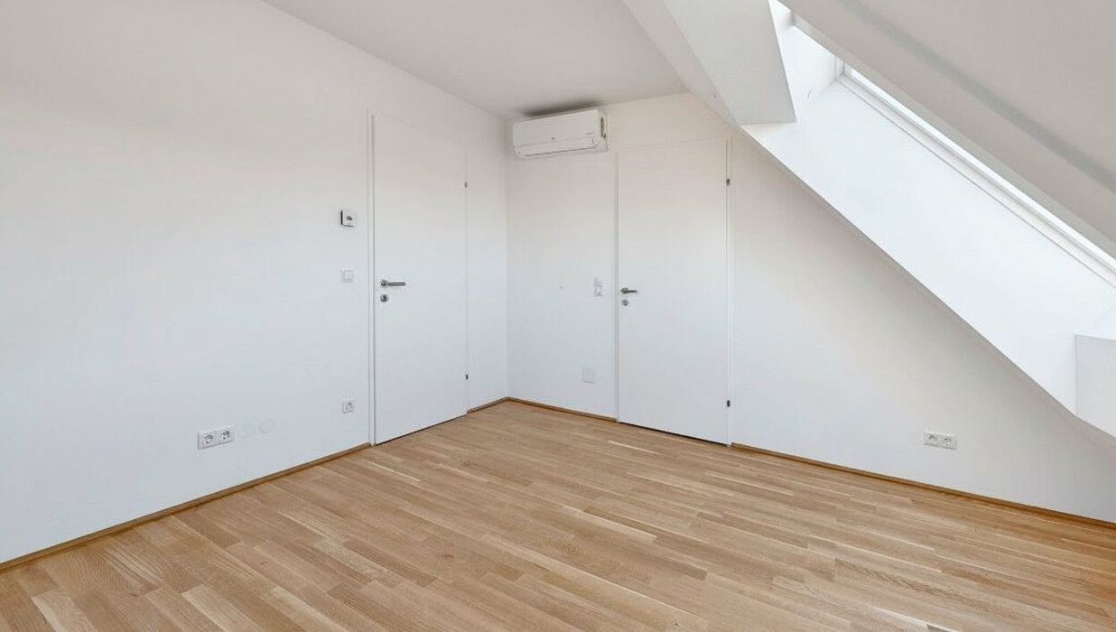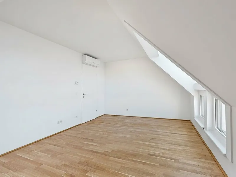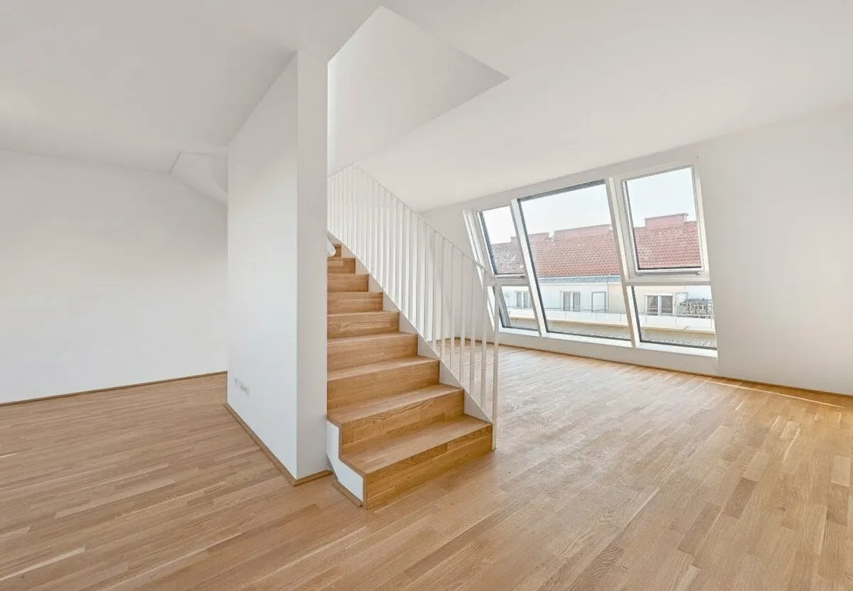 Großflächige Dachfenster erhellen die Räume mit viel natürlichem Licht.