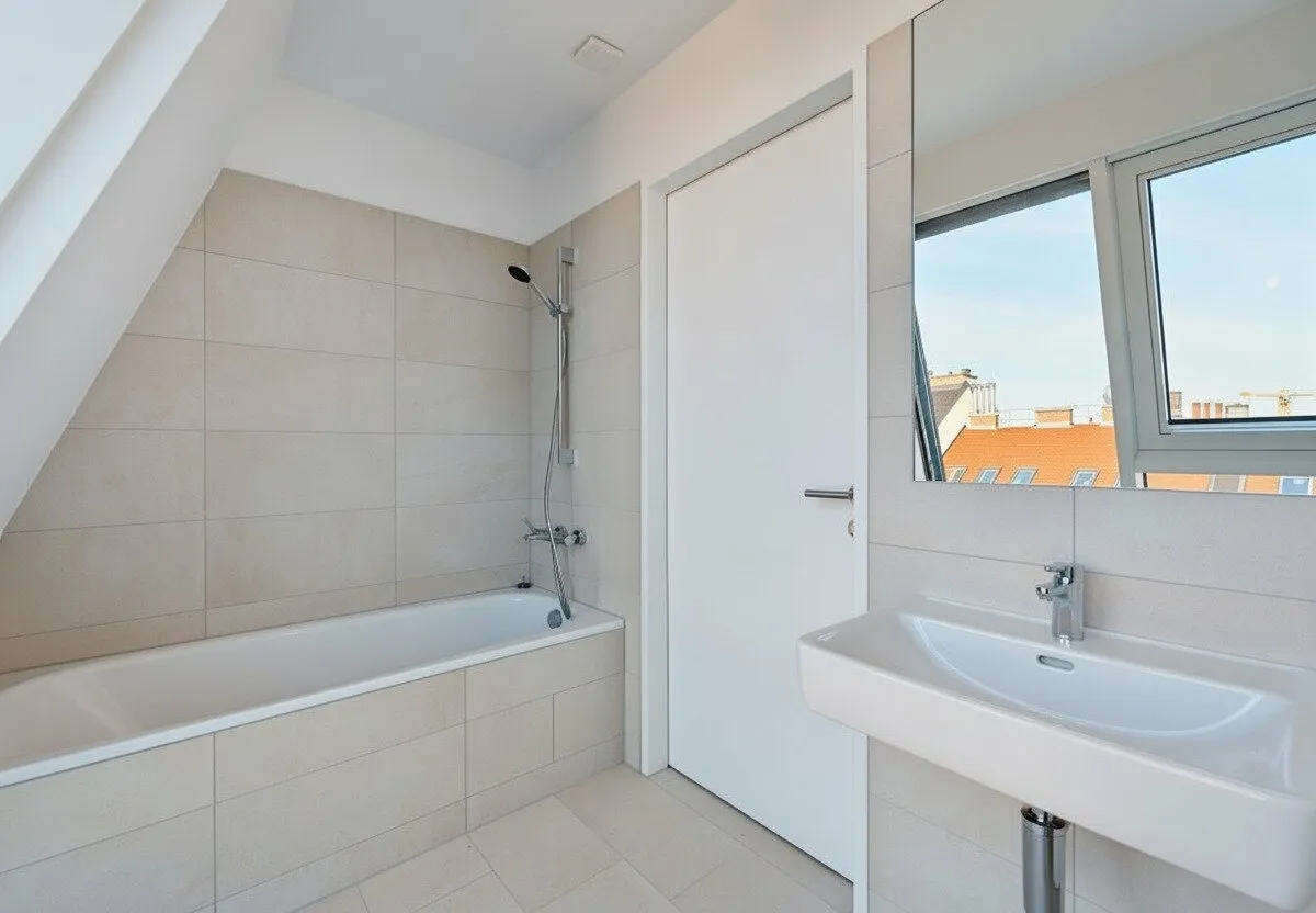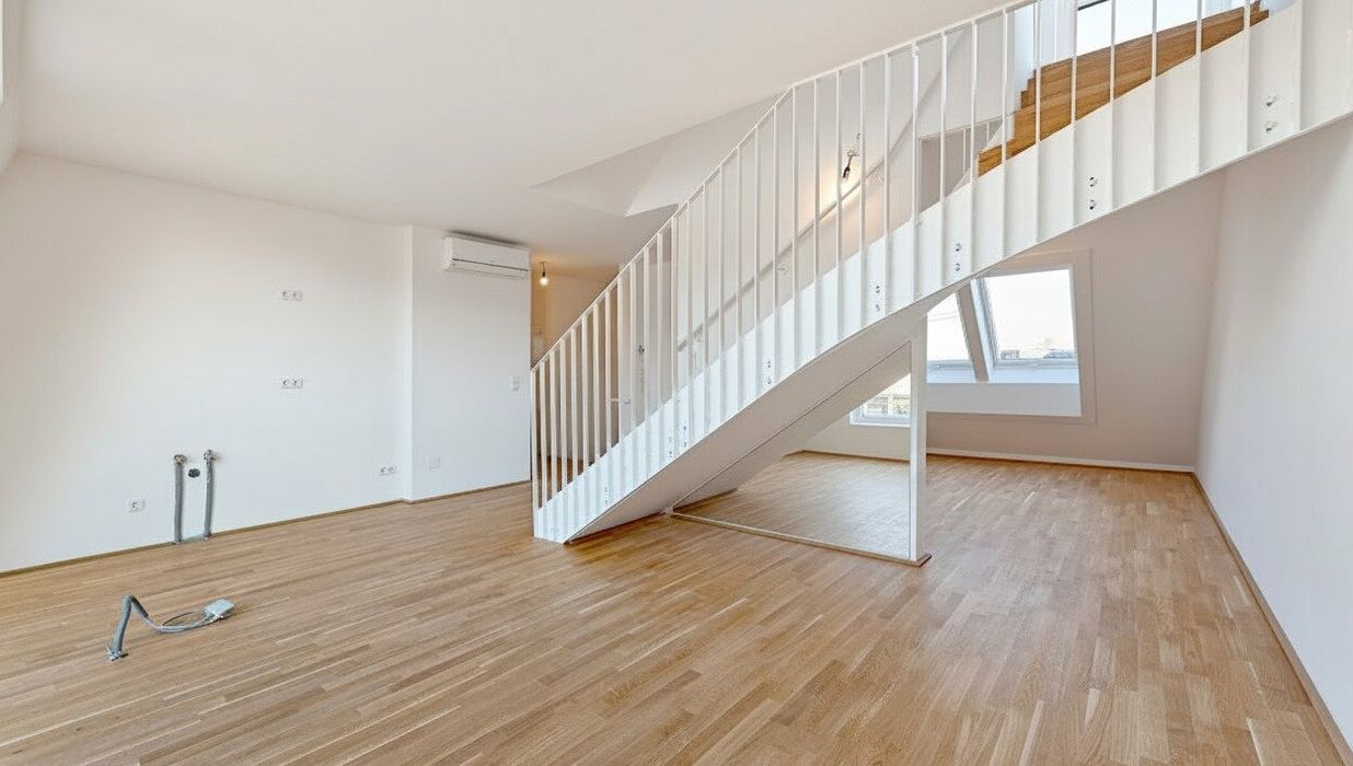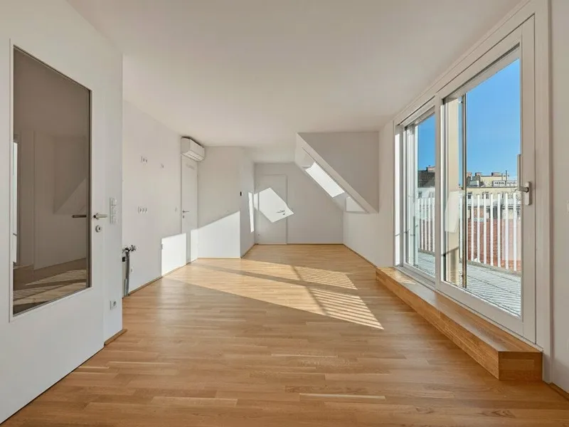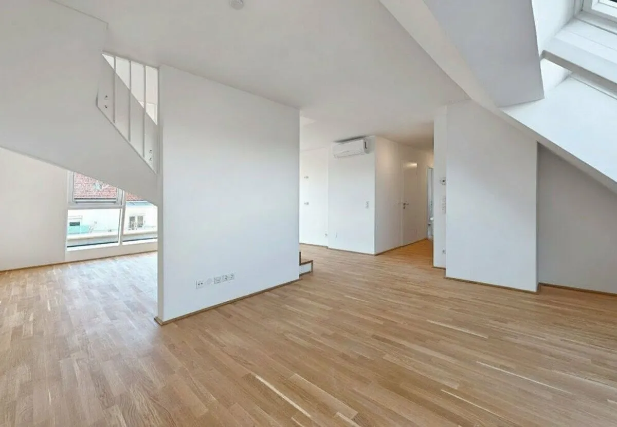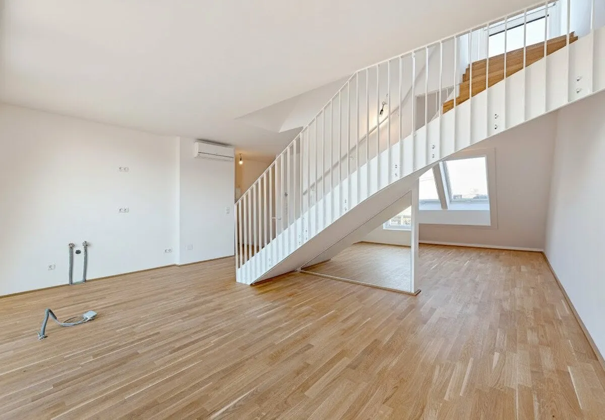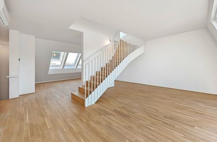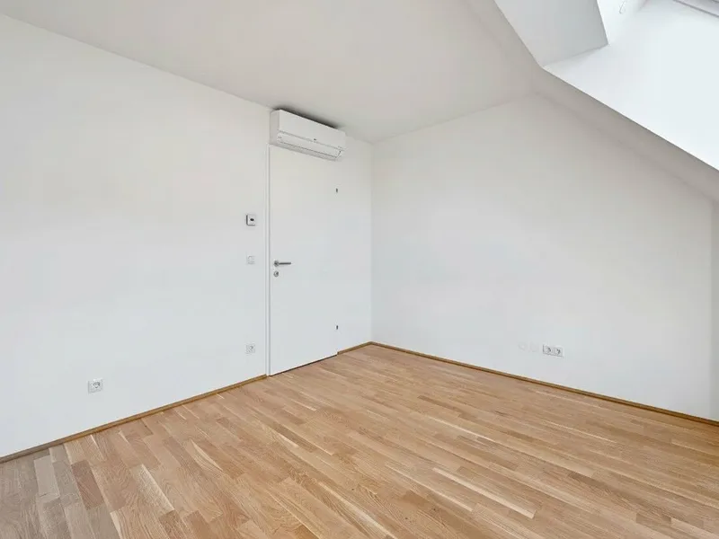 Großflächige Dachfenster erhellen die Räume mit viel natürlichem Licht.