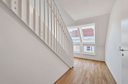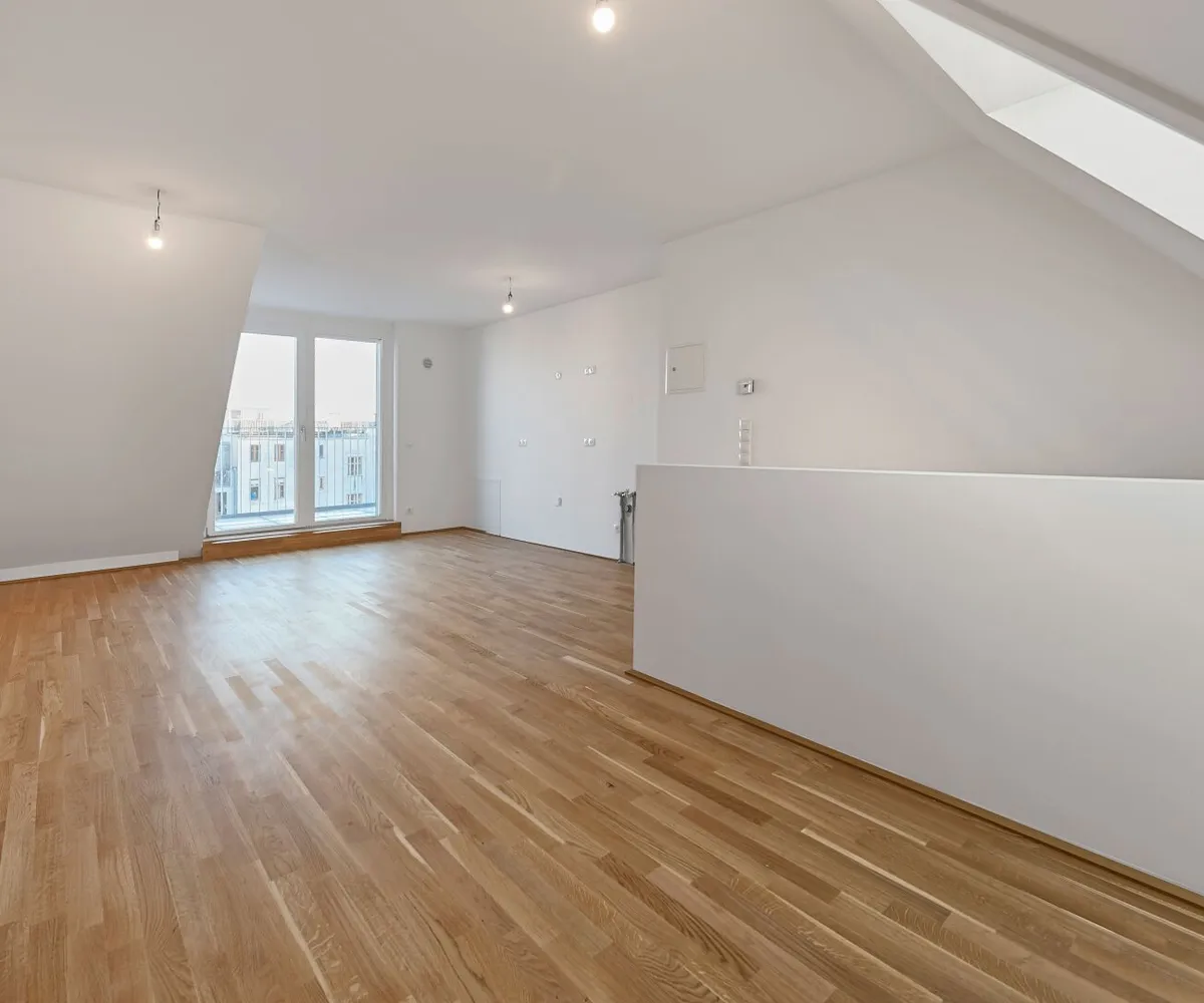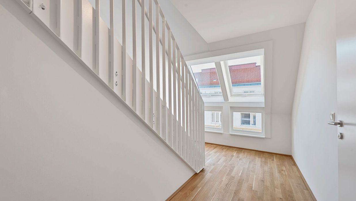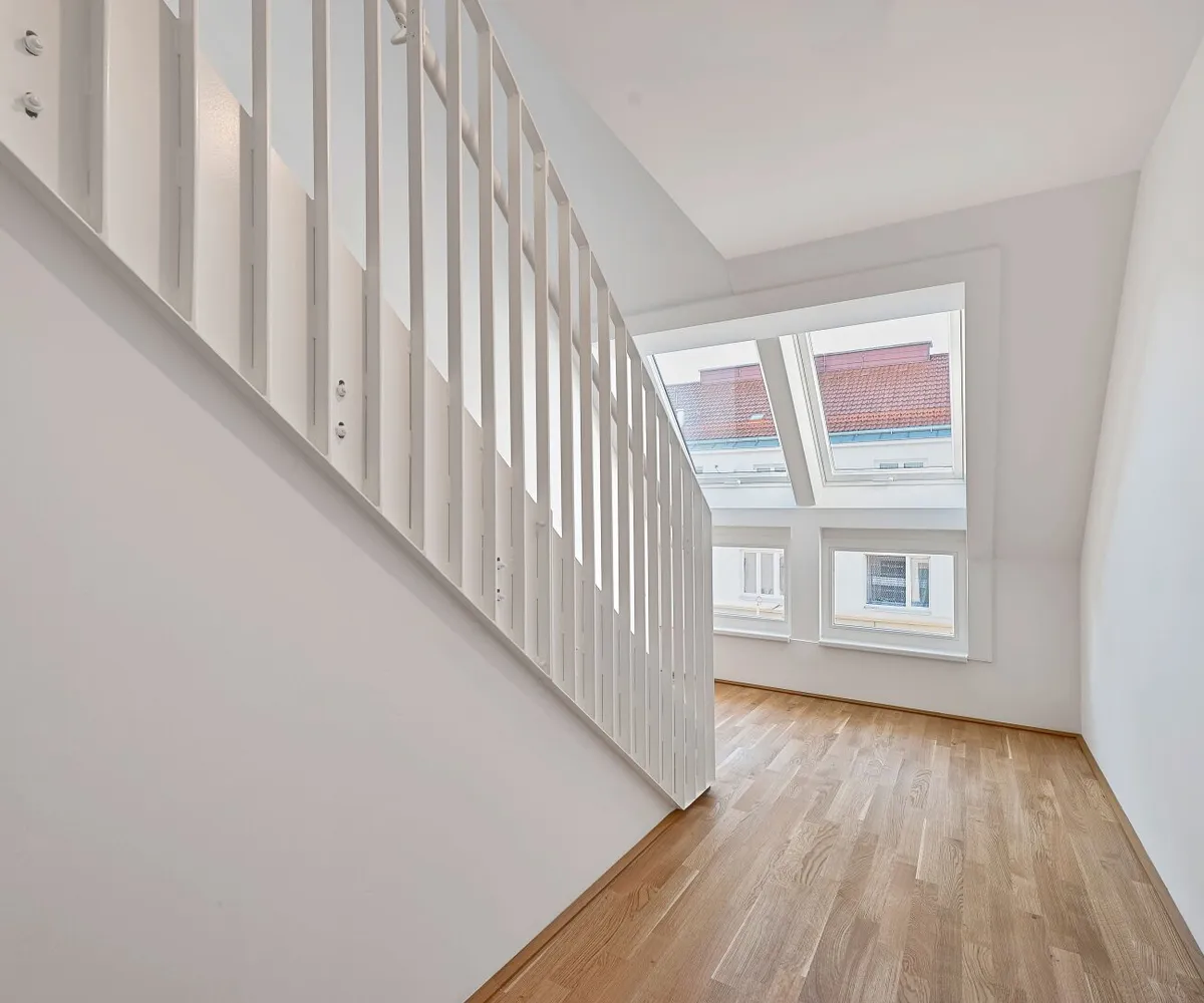 Die elegante 3-Zimmer-Maisonette-Wohnung mit ca. 88 m² Wohnnutzfläche befindet sich im Dachgeschoss und teilt sich auf 2 Wohnebenen sowie einer privaten Dachterrasse auf.