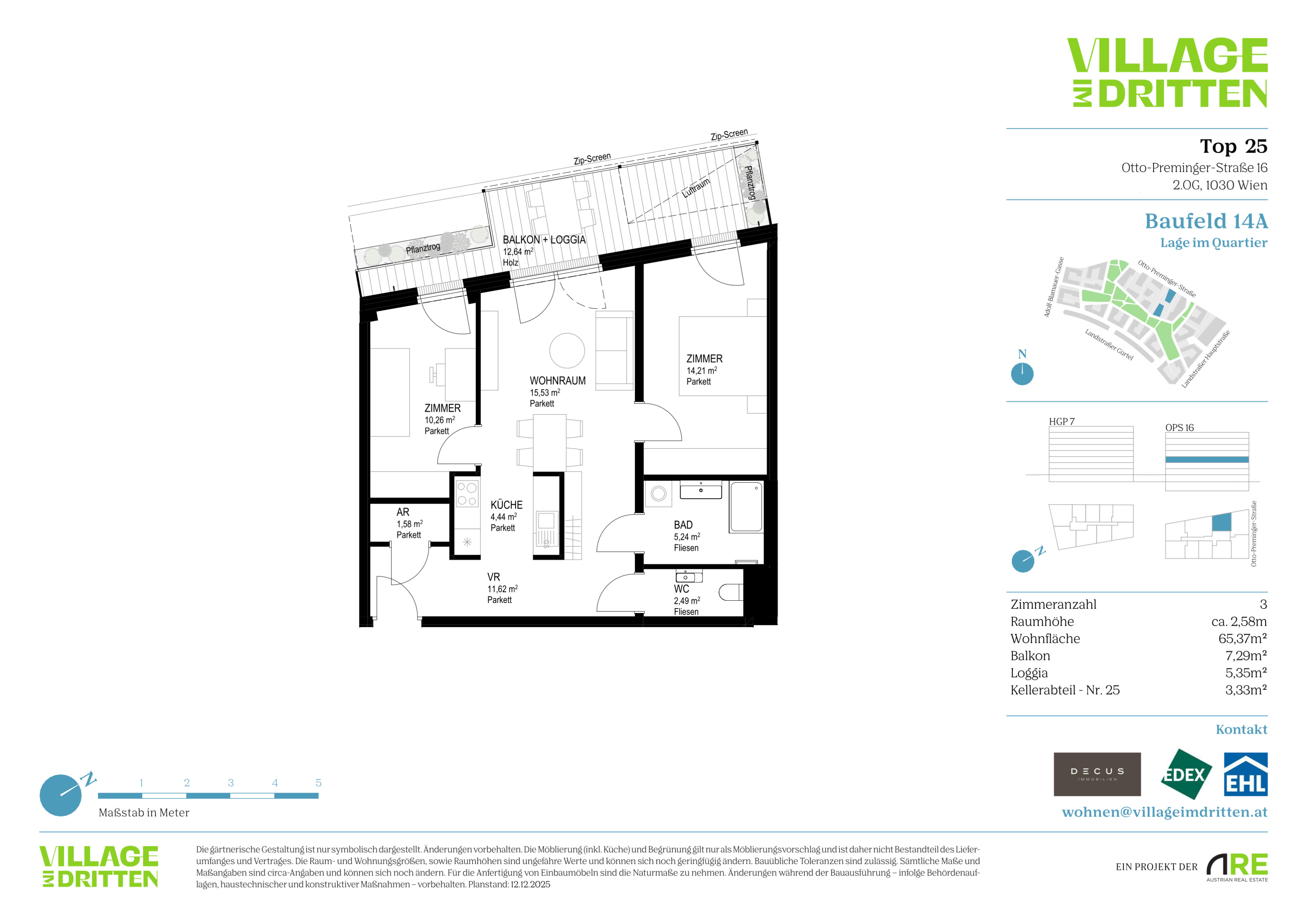 Im dritten Wiener Gemeindebezirk entsteht mit dem VILLAGE IM DRITTEN ein neues Stück Stadt – eines der größten Stadtentwicklungsgebiete Wiens. Auf über elf Hektar entwickelt die ARE Austrian Real Estate gemeinsam mit der Stadt Wien und dem wohnfonds_wien ein lebendiges, nahezu autofreies Quartier mit rund 2.000 W ohnungen, Büro- und Gewerbeflächen, Kinderbetreuung, Bildungseinrichtungen und Nahversorgung. Das grüne Herz bildet der über 2 Hektar große Bert-Brecht-Park –eine Oase für Erholung, Begegnung und Spiel. Alle Däche r , die nicht begehbar sind, werden begrünt. Sharing- Angebote, Einkaufsmöglichkeiten und Gastronomie liegen direkt vor der Haustüre. Nachhaltigkeit, kurze W ege und hohe Lebensqualität sind die Leitlinien dieses neuen Stadtviertels.
