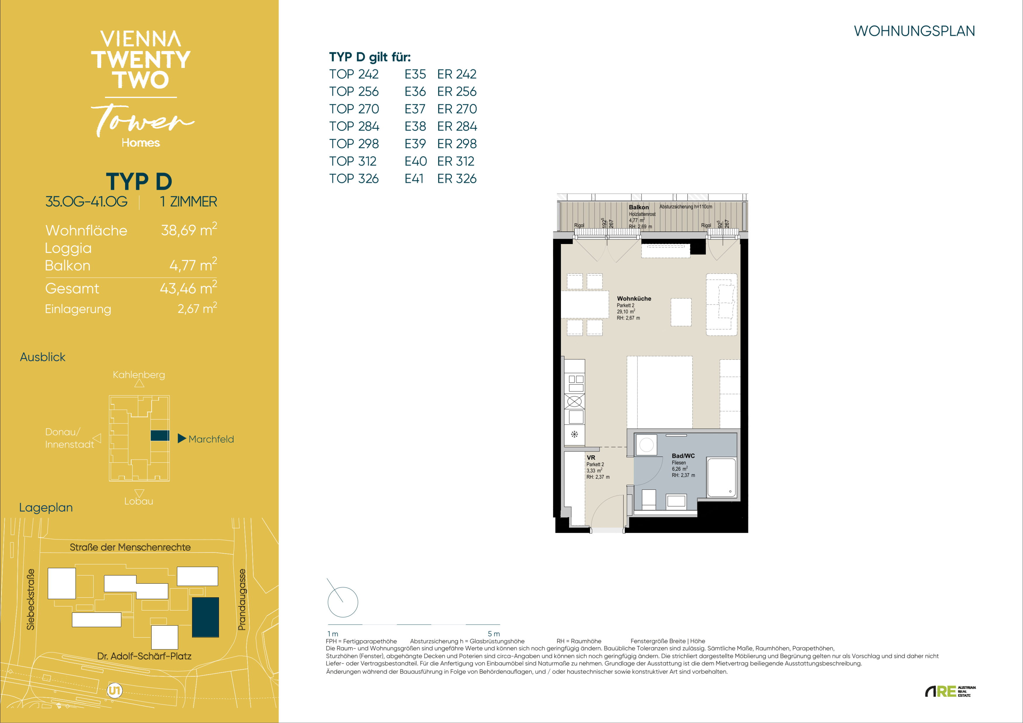 In einzigartiger Lage, direkt bei der U1-Station Kagran und vis-à-vis vom Donau Zentrum, entsteht ein exklusiver, ca. 155m hoher Wohnturm mit 45 Etagen. Die insgesamt 347 Mietwohnungen bieten einen vielfältigen Wohnungsmix: von smart geschnittenen 1,5-Zimmer-Apartments ab ca. 38 m² über komfortable 2-Zimmer-Wohnungen bis hin zu großzügigen 3- und 4-Zimmerwohnungen mit bis zu ca. 80 m².